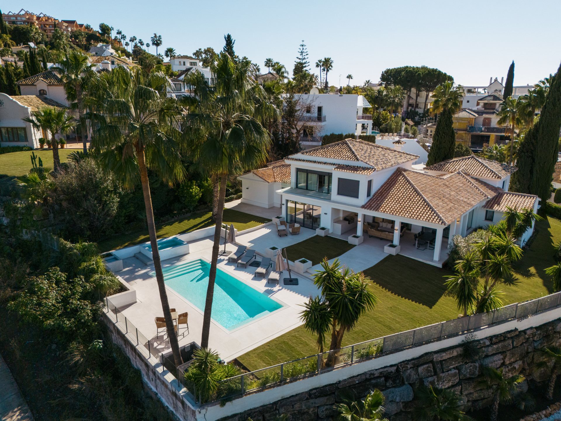 This stunning, recently refurbished 5 bedroom villa for sale in Los Naranjos Golf, Nueva Andalucia, is situated in a quiet cul-de-sac,