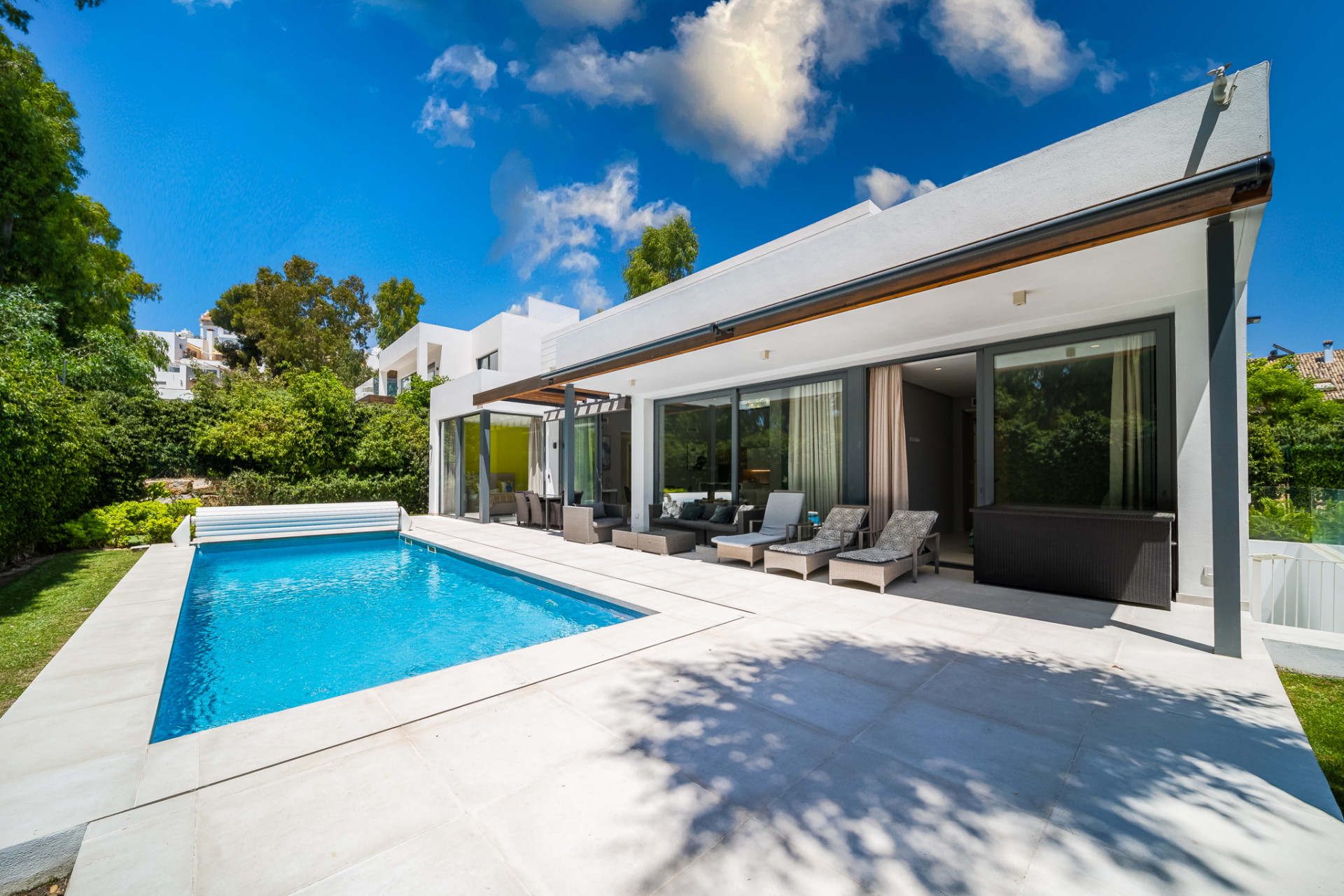 Discover this beautiful modern villa located in the gated community of Arboleda, Estepona.