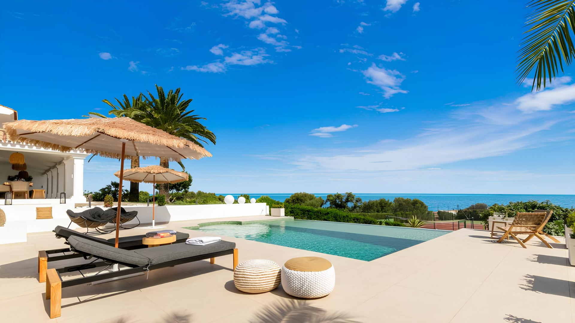 The property is situated on the second line of the beach, in a quiet exclusive residential area, with beautiful south-facing views, guaranteeing the best weather enjoyment all year round.