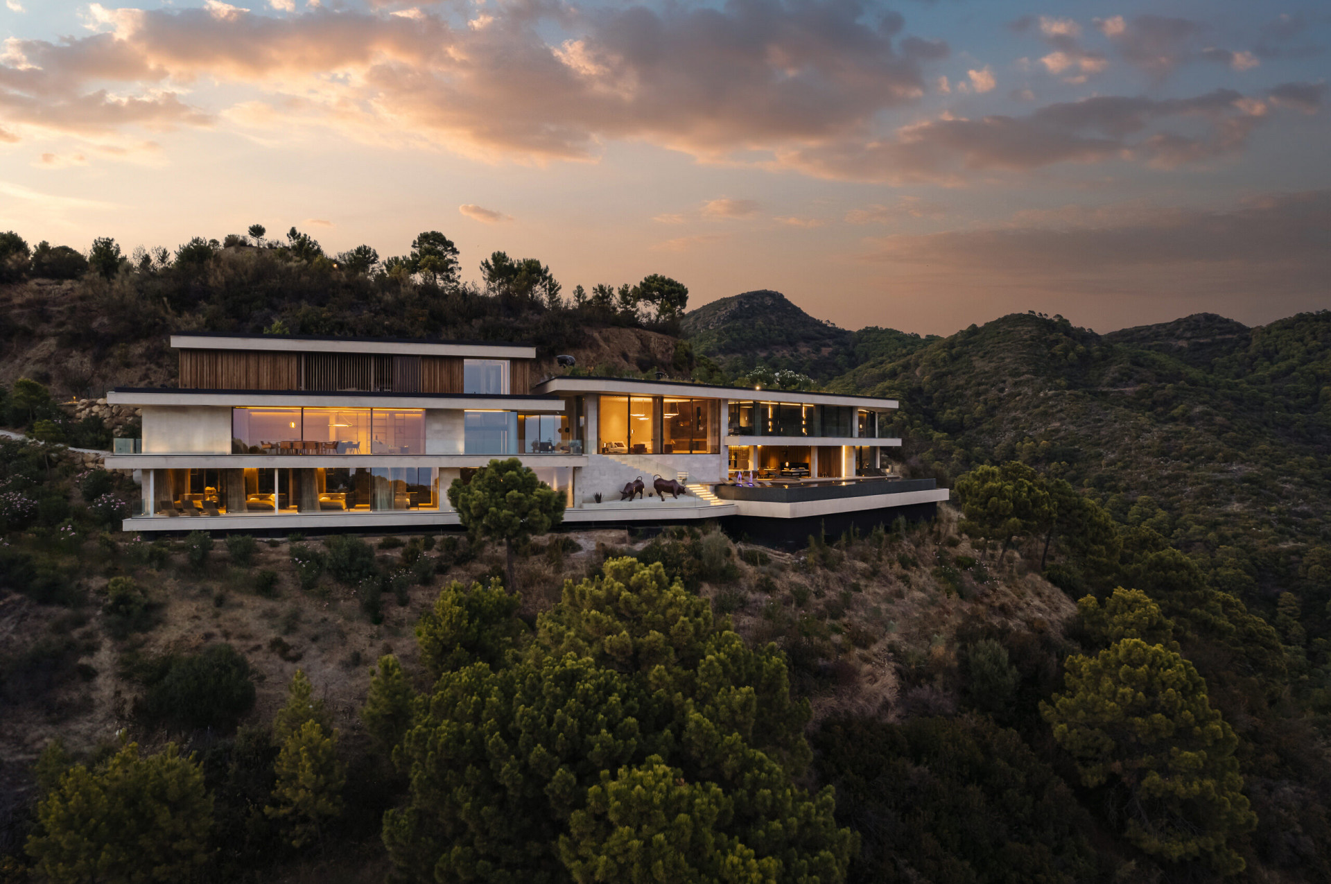 Ausgedehnte Terrassen für Mahlzeiten im Freien und ein privater Infinity-Pool bilden die Kulisse für som ...