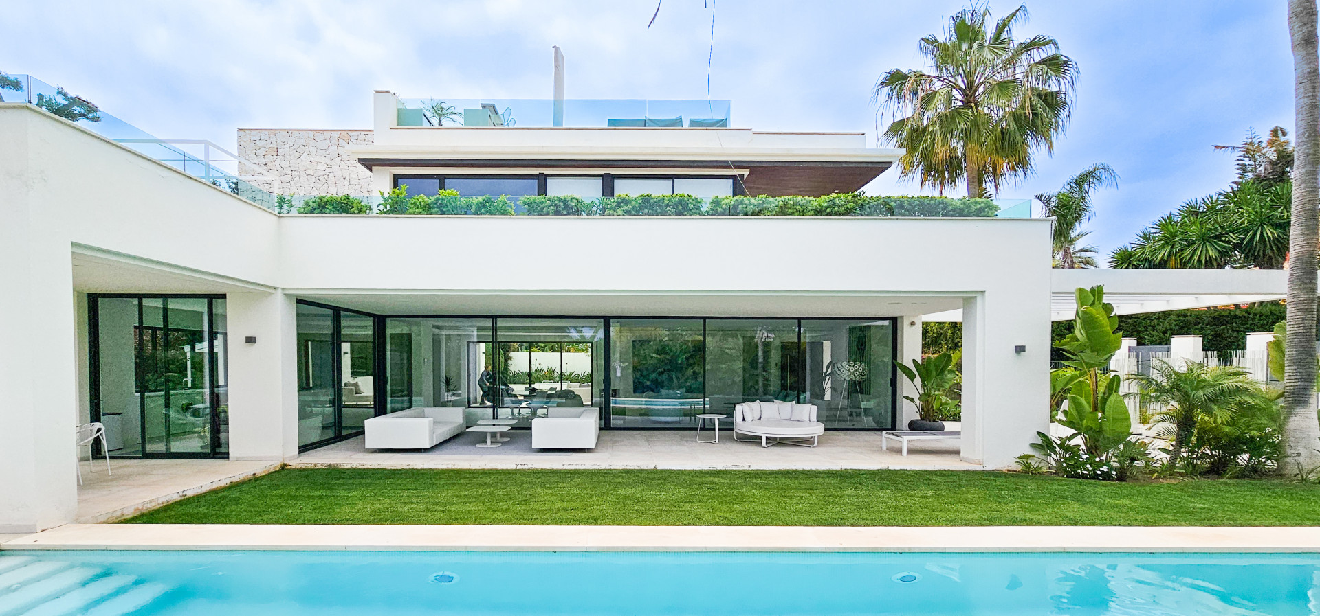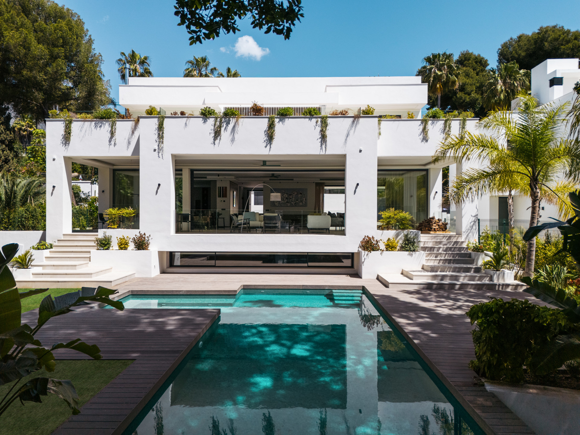Entdecken Sie diese prächtige Villa mit ultramodernem Design in idealer Lage, nur 100 Meter vom Meer entfernt, im prestigeträchtigen Stadtteil Casasola. Diese zeitgenössische Residenz, die von einem der renommiertesten A ...