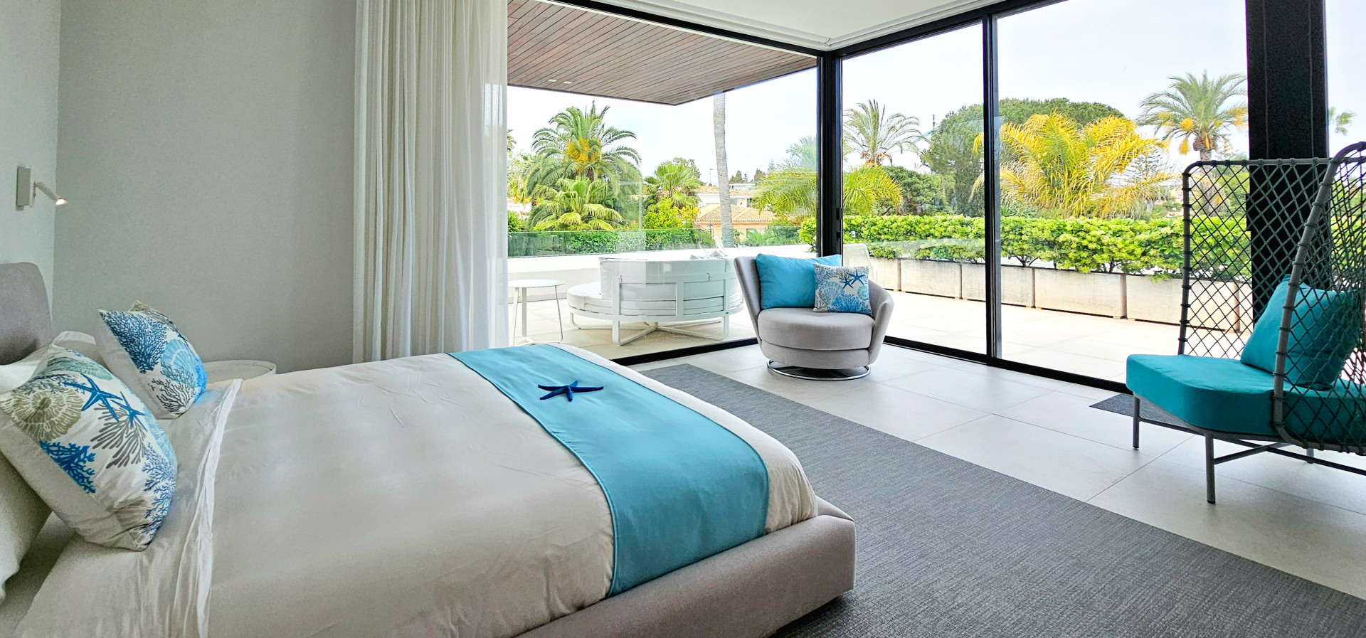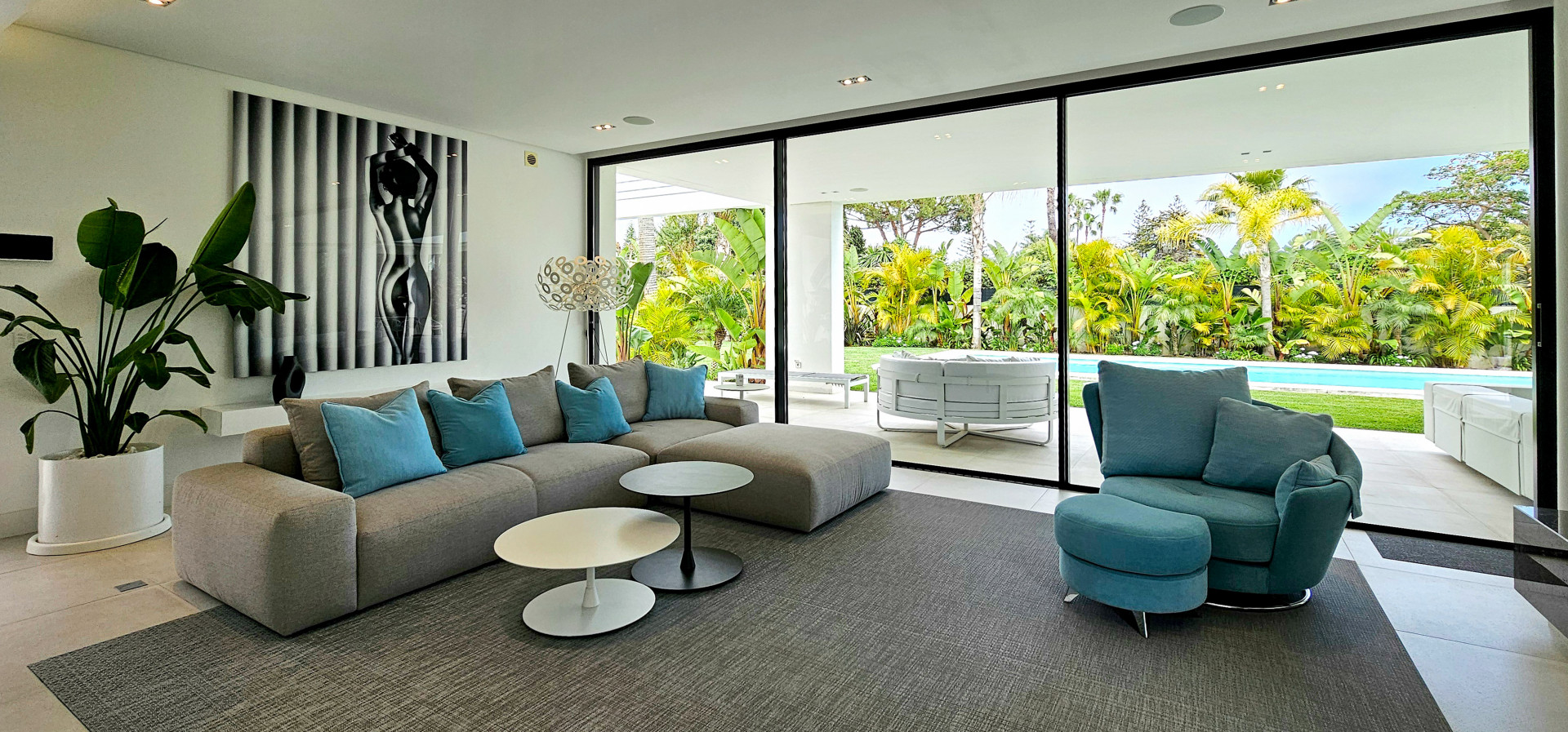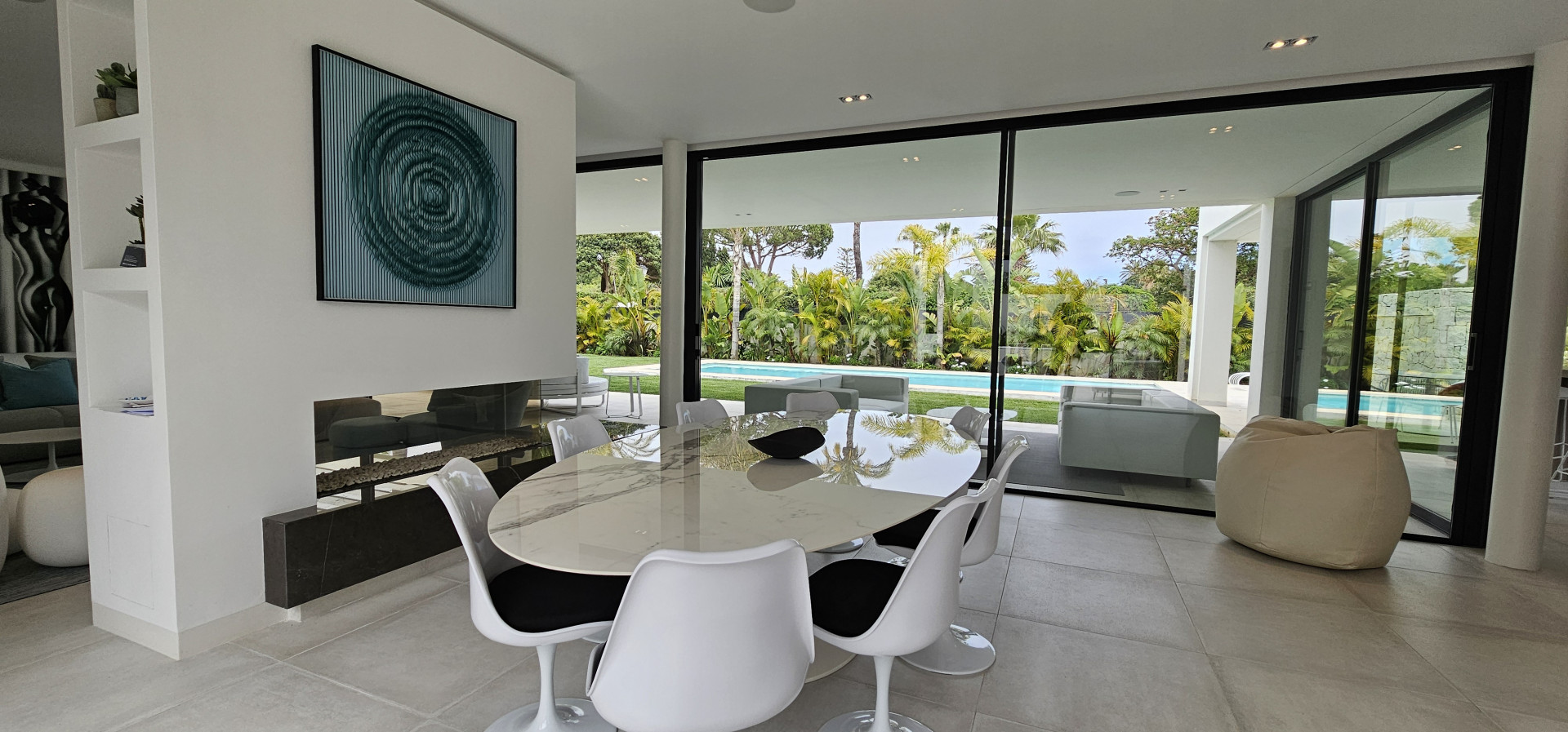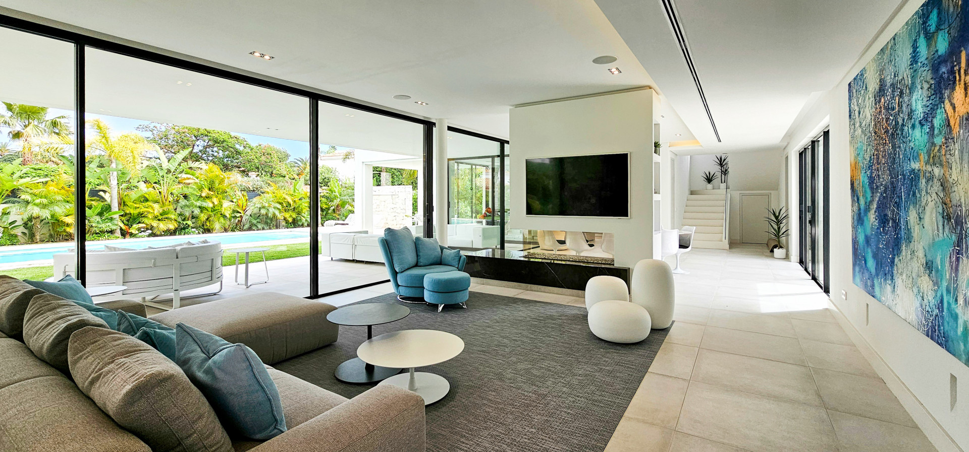Das Haus ist mit modernster Technik ausgestattet: Es verfügt über eine ausgeklügelte Haustechnik, iPad-gesteuerte TV-Bildschirme in jedem Schlafzimmer und 25 Bang & Olufsen-Lautsprecher im gesamten Haus, sogar in den Badezimmern. Die Ausstattung ist von außergewöhnlicher Qualität, mit hochmodernen Möbeln und Annehmlichkeiten der Spitzenklasse.