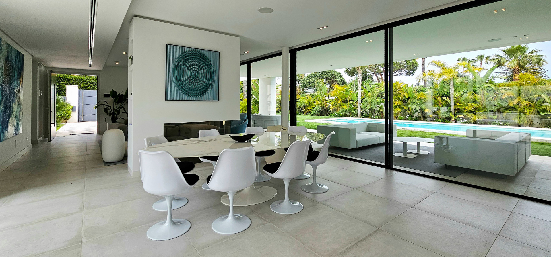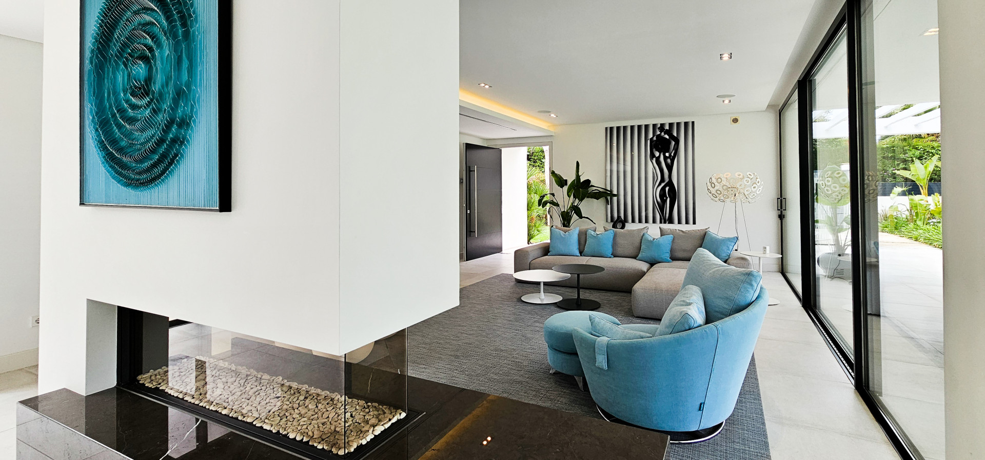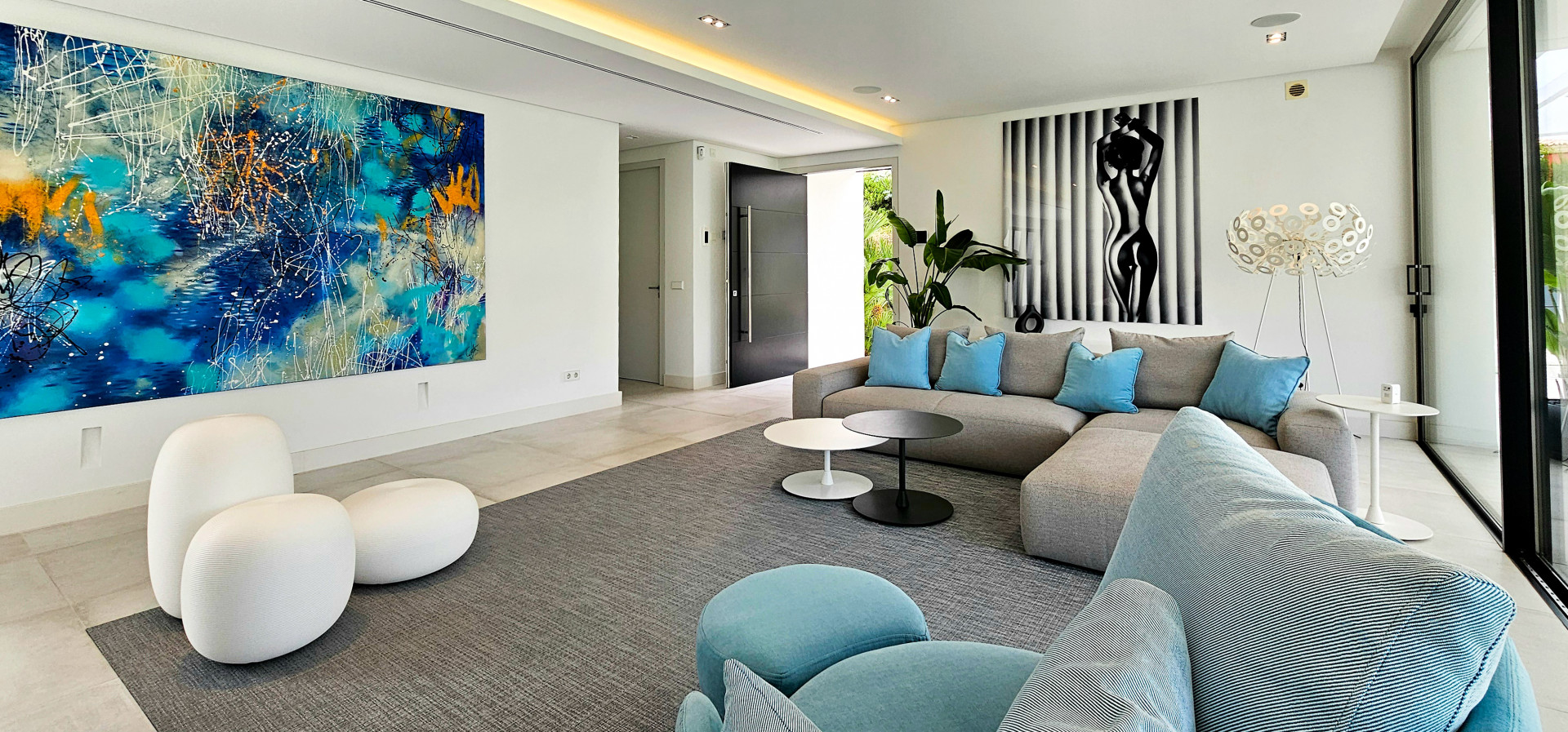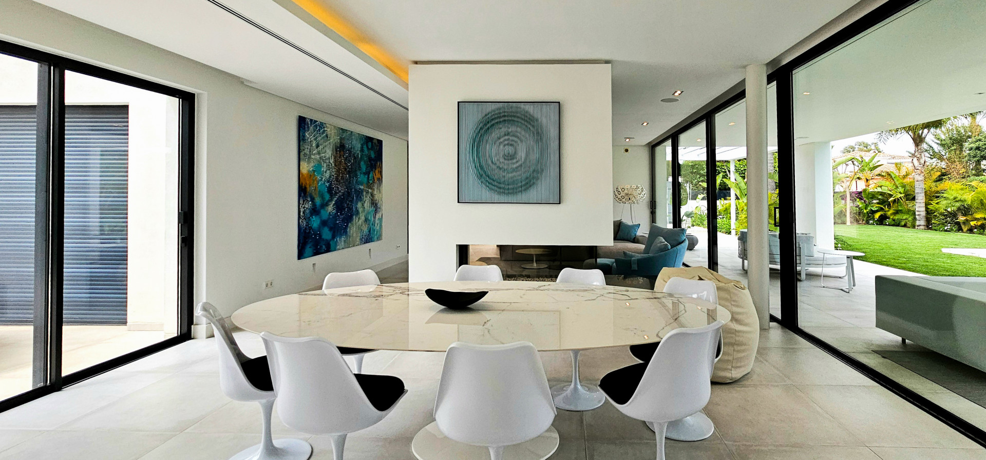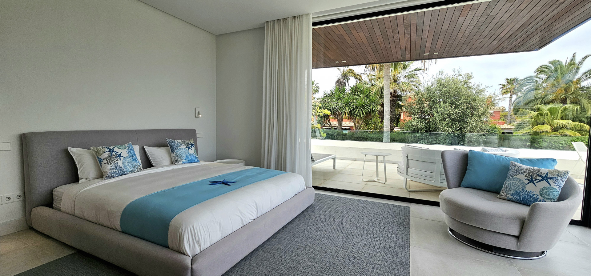 Das Haus ist mit modernster Technik ausgestattet: Es verfügt über eine ausgeklügelte Haustechnik, iPad-gesteuerte TV-Bildschirme in jedem Schlafzimmer und 25 Bang & Olufsen-Lautsprecher im gesamten Haus, sogar in den Badezimmern. Die Ausstattung ist von außergewöhnlicher Qualität, mit hochmodernen Möbeln und Annehmlichkeiten der Spitzenklasse.