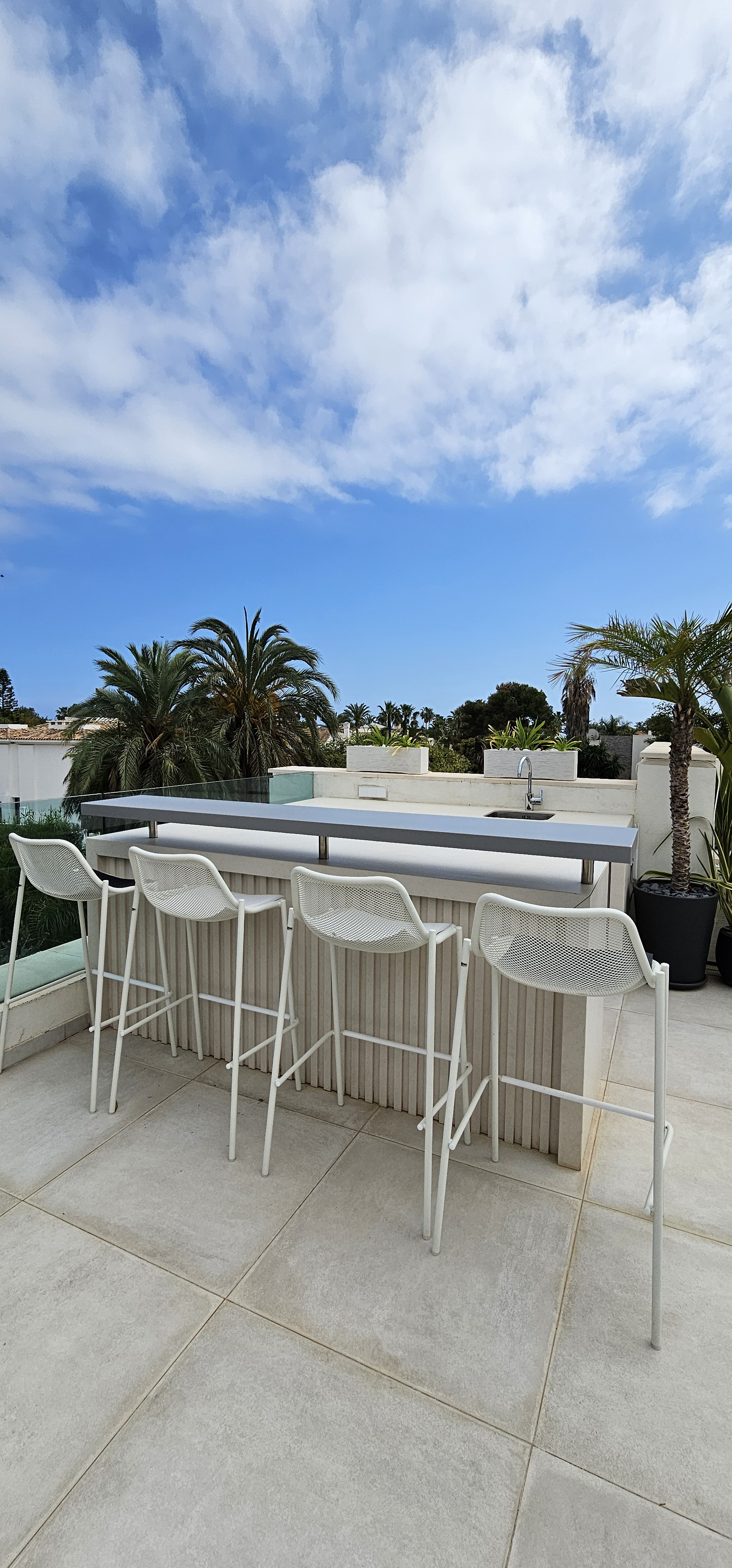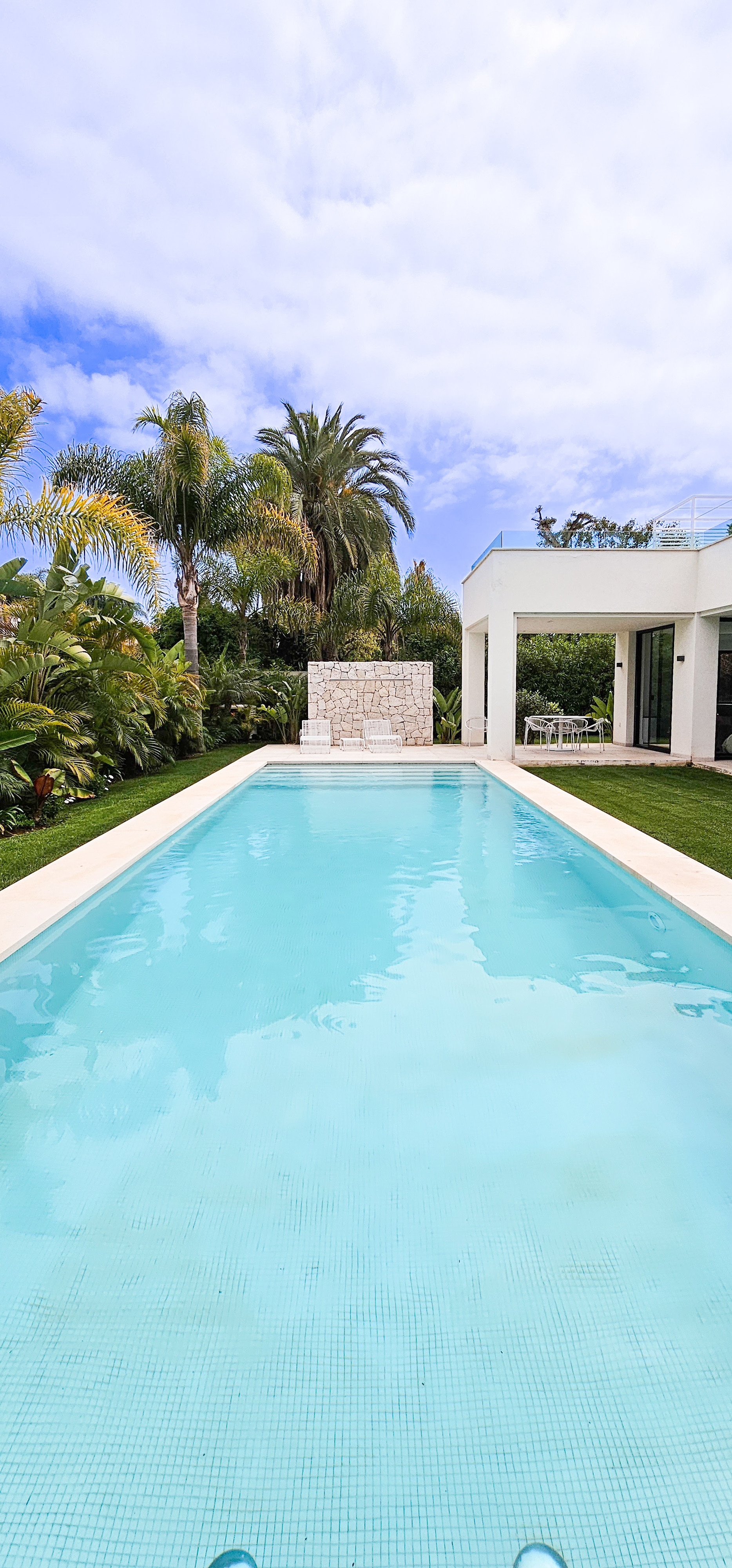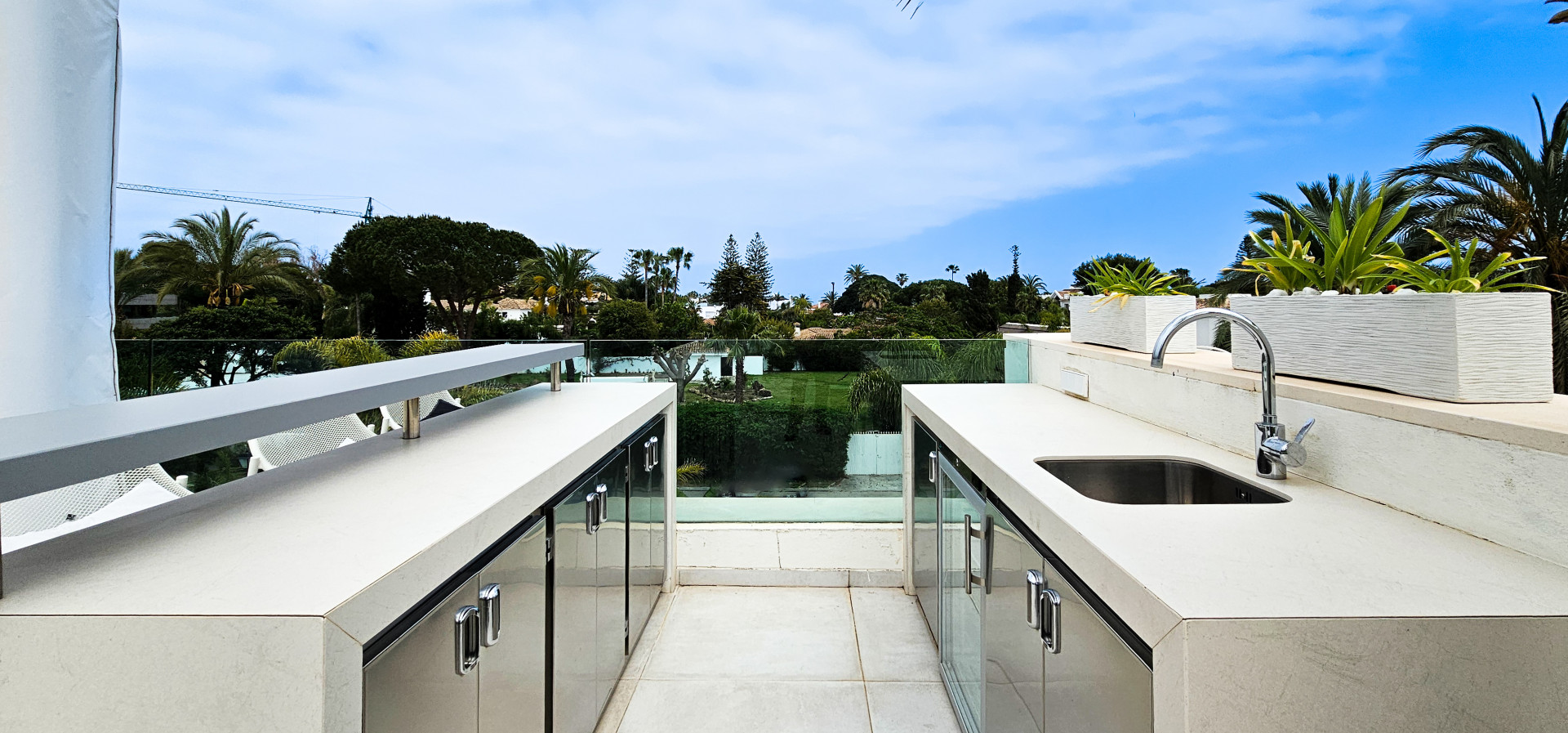 Ein beheizter Swimmingpool sorgt für absolute Entspannung. Und für die privilegierten Momente im Freien gibt es eine Sonnenterrasse mit Sommerküche und Jacuzzi, von der aus man einen atemberaubenden Blick auf das Meer hat.