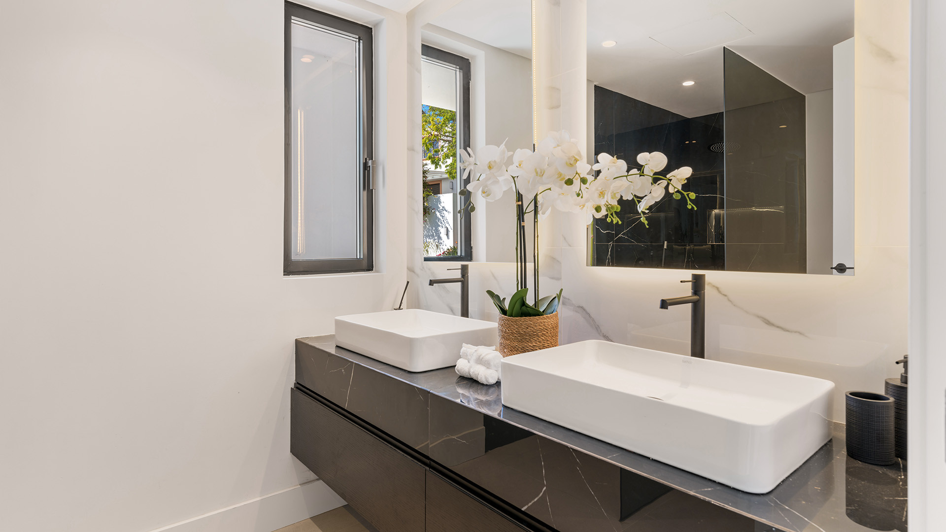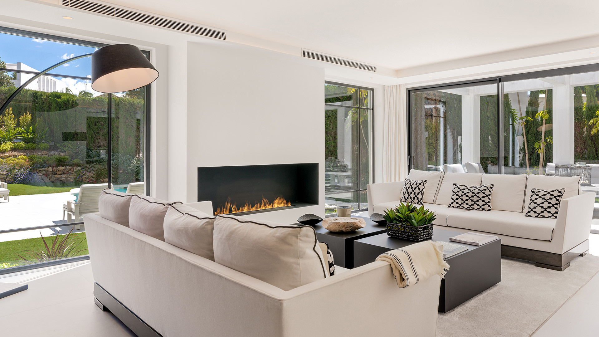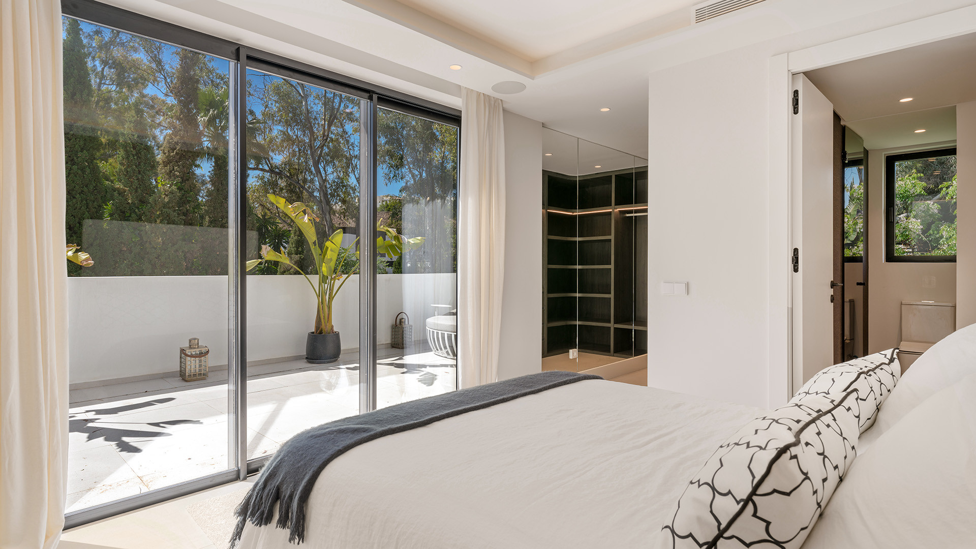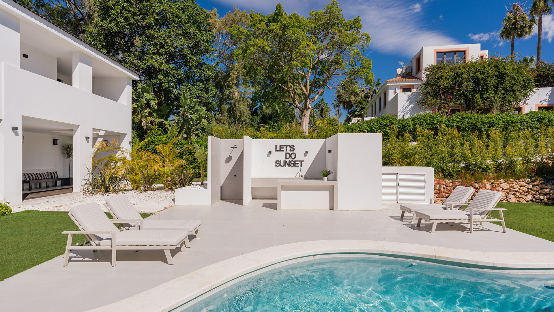 Villa Bianca ist eine nach Osten ausgerichtete Immobilie im Herzen des Golf Valley in Nueva Andalucia. Perfekt für eine Familie mit Kindern, ist es etwa 2 km von Aloha College und ideal für Golfer, die in der Nähe von Aloha Golf Club und in Gehweite von Las Brisas und Los Naranjos Golfclubs. Diese ruhige Wohnanlage mit hochwertigen Einfamilienhäusern grenzt an eine Grünfläche und einen Teich.