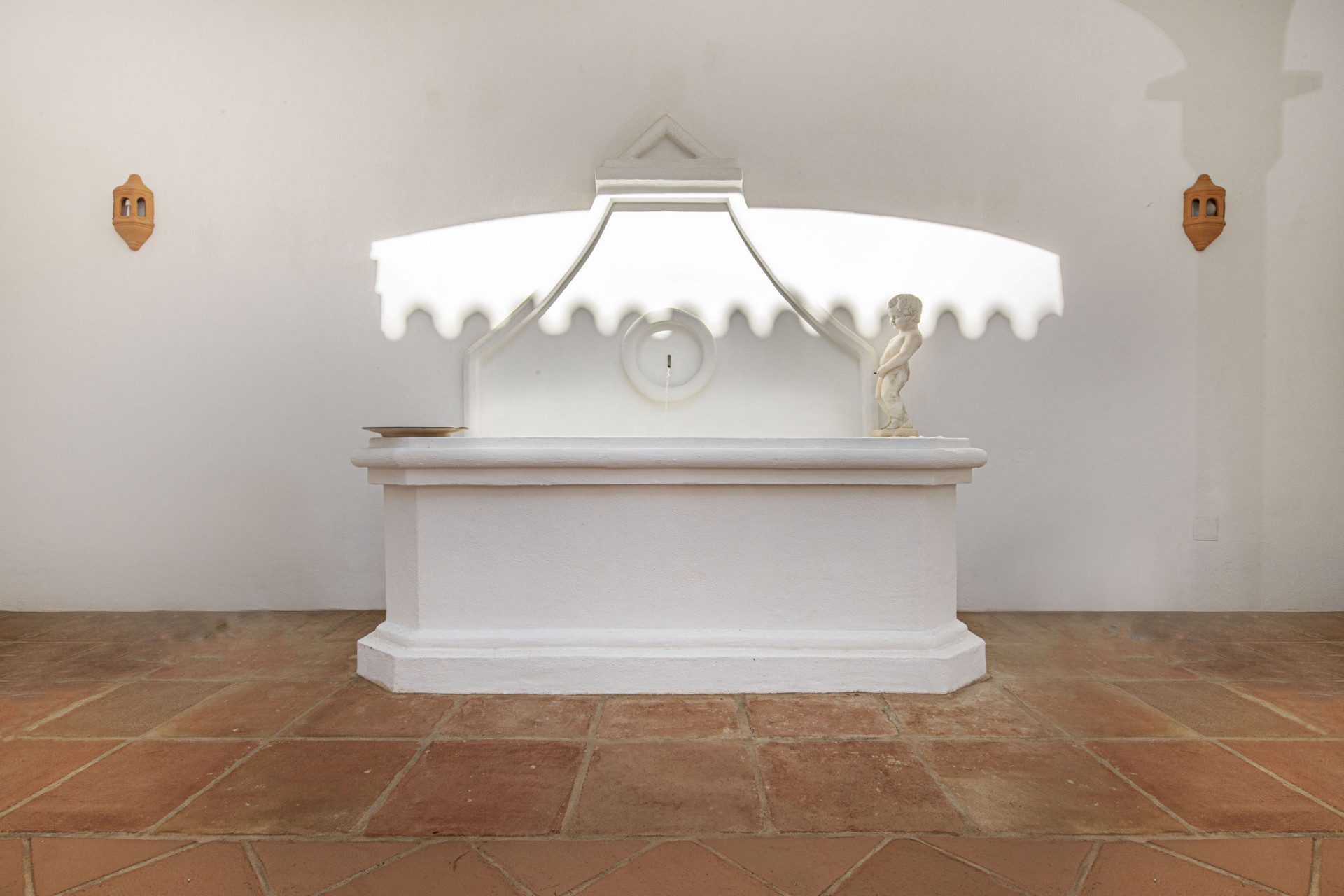 Der Eingang zu diesem Anwesen führt über einen wunderschönen andalusischen Patio mit Brunnen zur Eingangshalle mit eleganten Treppenhaus.