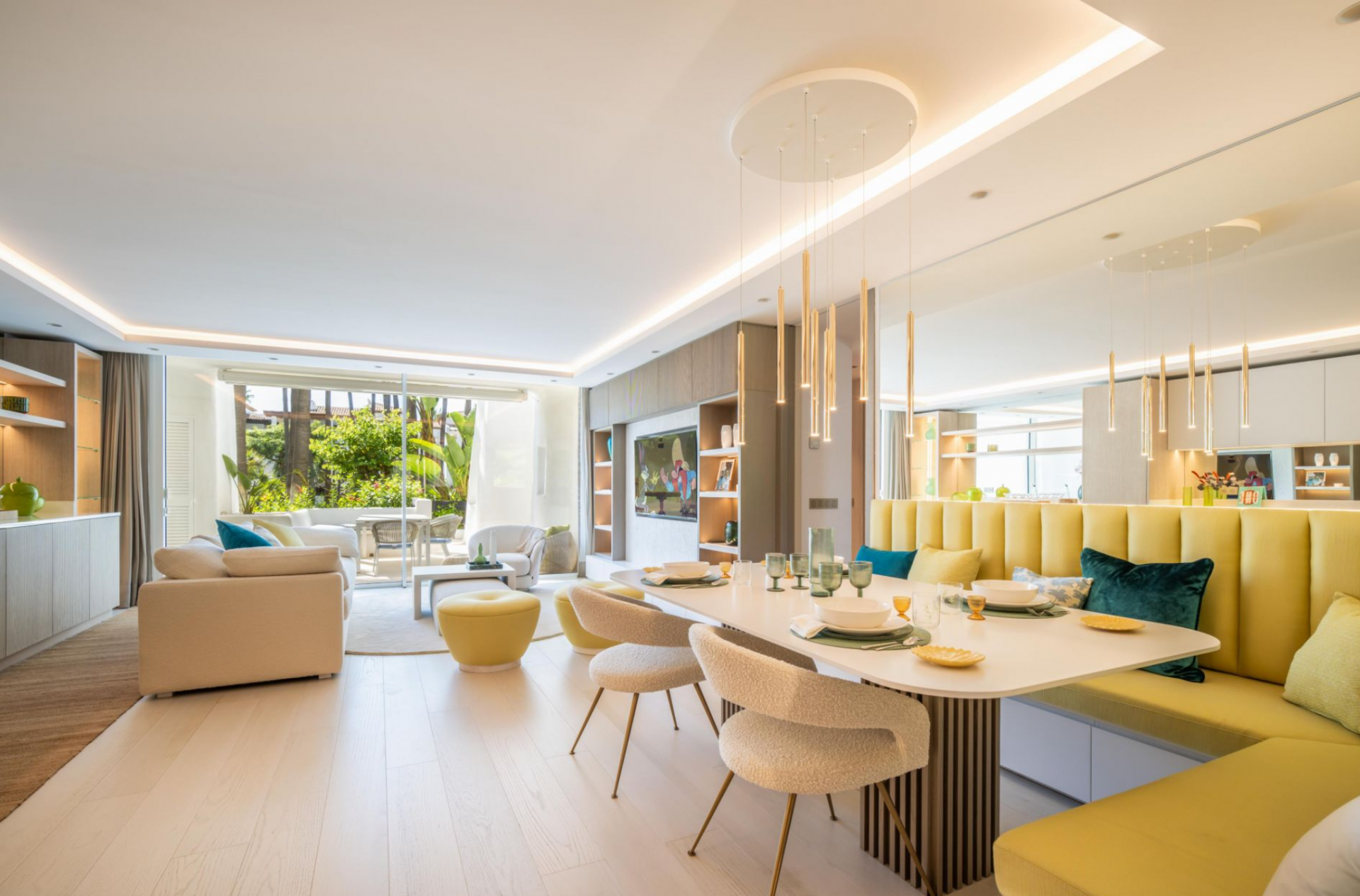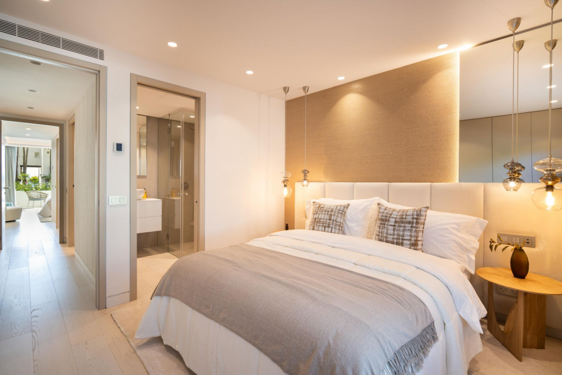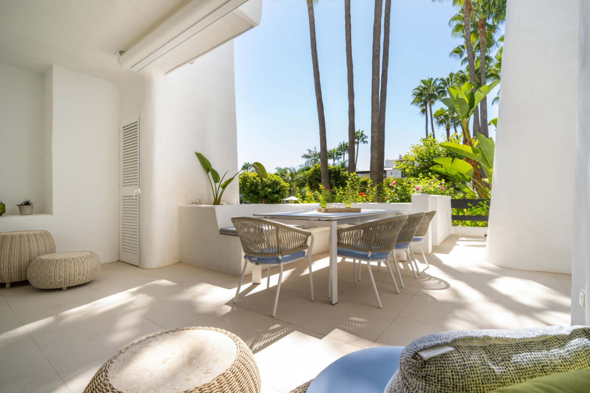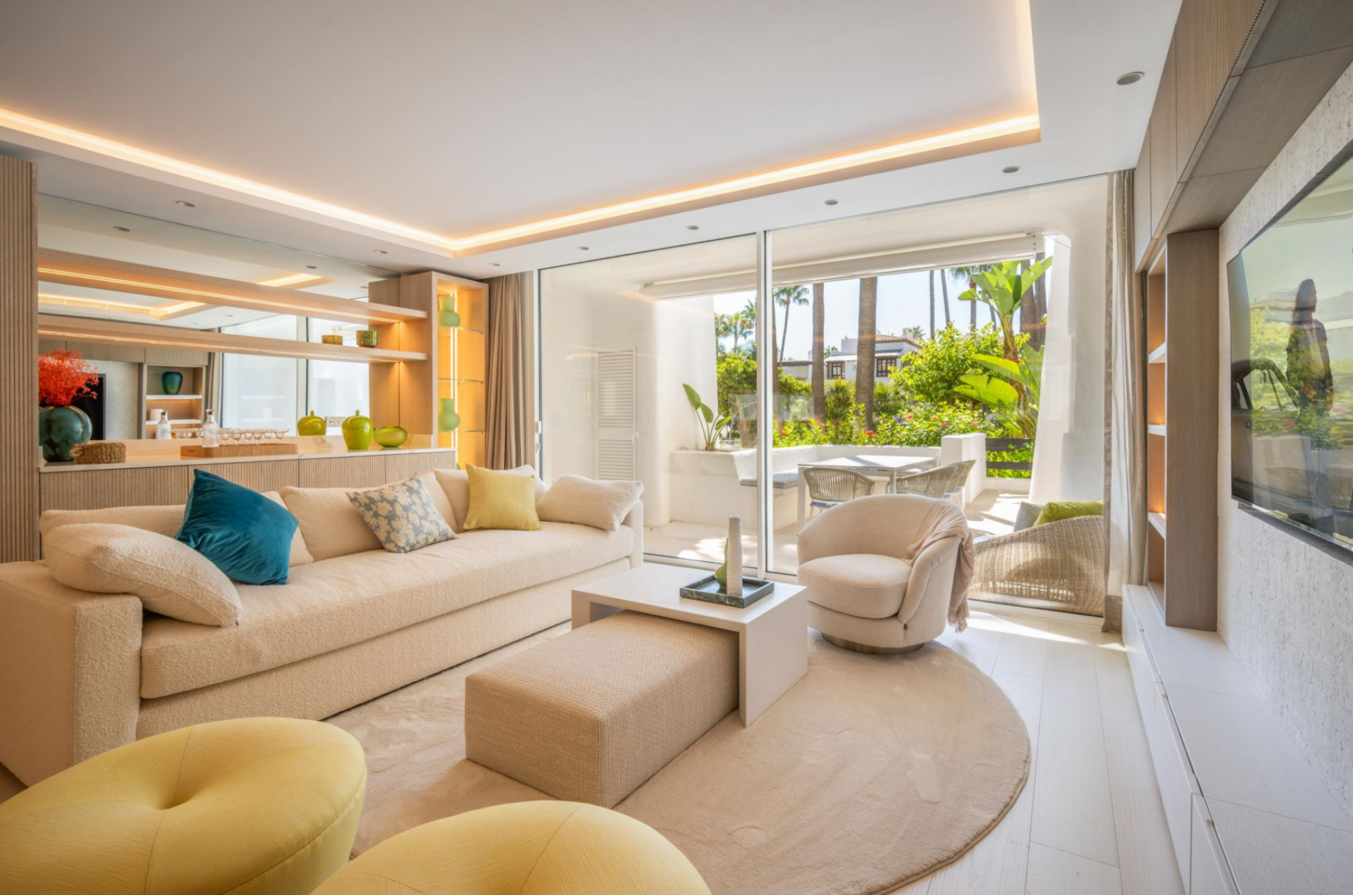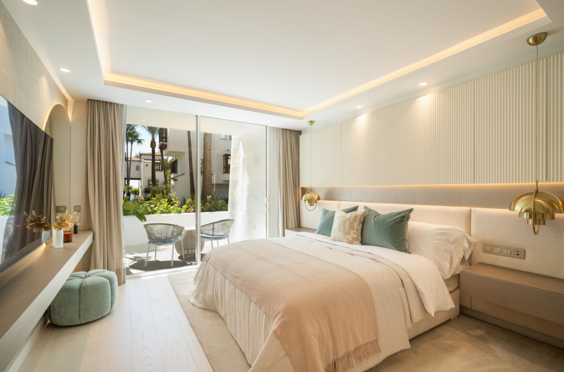 Eingebettet in die exklusive Ferienanlage Puente Romano, ist Granados 1-2 ein atemberaubendes modernes Apartment, das die ultimative Mischung aus Luxus und Komfort bietet. Der offene Wohnbereich mit integrierter LED-Beleuchtung und exquisitem Innendesign geht nahtlos in eine großzügige Außenterrasse über. Die Terrasse eignet sich perfekt für Mahlzeiten im Freien und zum Entspannen und bietet einen atemberaubenden Blick auf das Resort und ist sowohl vom Wohnbereich als auch vom Hauptschlafzimmer aus direkt zugänglich.