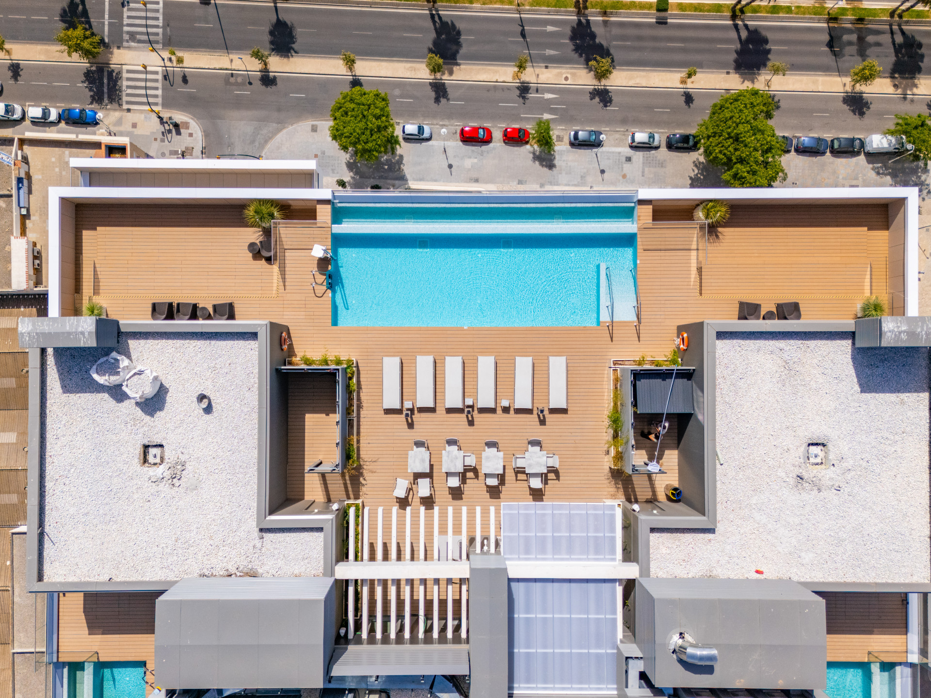 Die Gemeinschaftsbereiche der Malaga Towers sind auf ultimativen Luxus ausgelegt und verfügen über ein Spa, ein Spielzimmer, ein Kinderzimmer, einen Fitnessraum, einen Infinity-Pool, einen beheizten Pool, ein Solarium und einen Raum für gemeinsame Arbeit. Alles, was Sie brauchen, liegt direkt vor Ihrer Haustür.