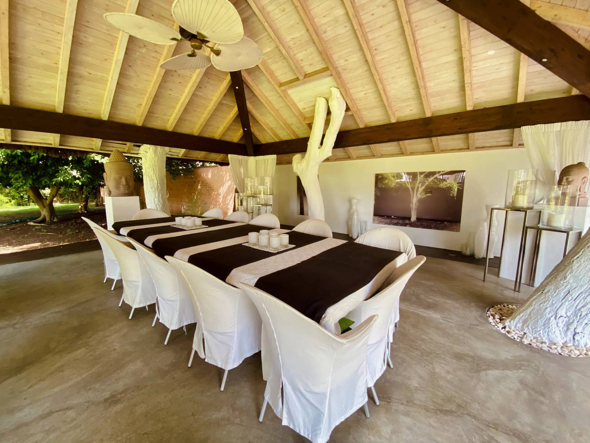Es gibt zwei einzigartige Außenräume: eine afrikanische Kabine mit importierten Materialien und handwerklichen Brauch, ein exquisites Outdoor-Haus von renommierten europäischen zeitgenössischen Designer entworfen, und eine einzigartige BBQ und Outdoor-Bar, so dass diese Immobilie ein ideales Zuhause für Familien zu leben und zu unterhalten.