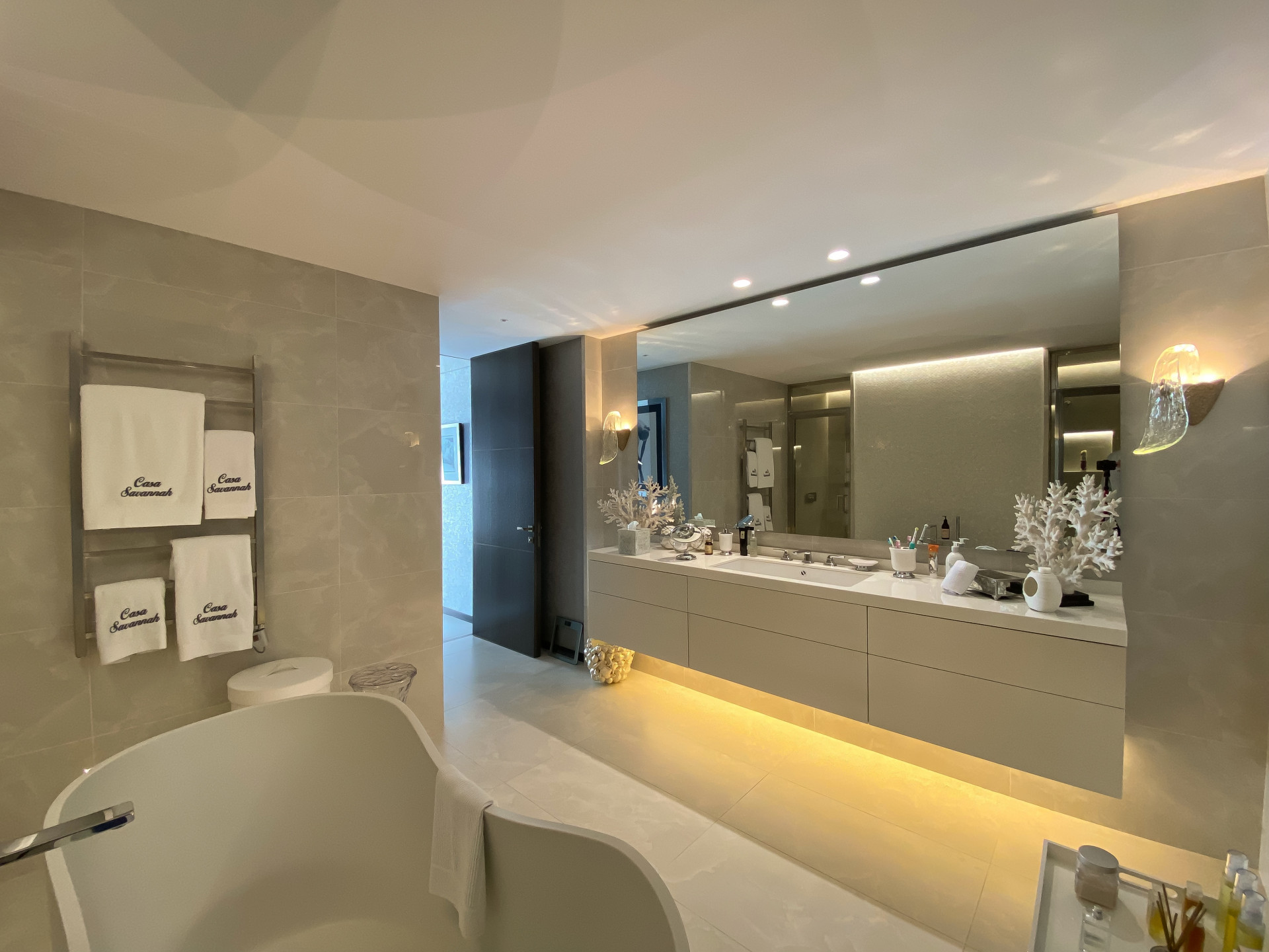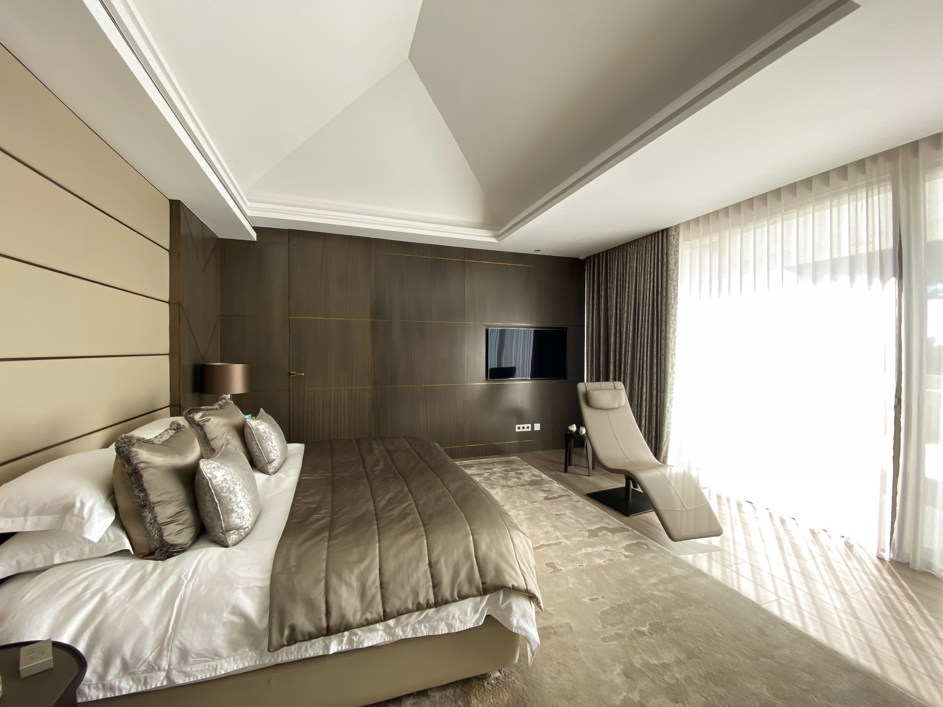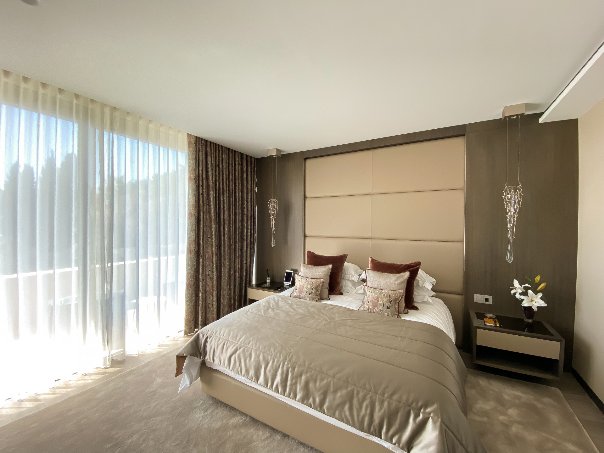 Im ersten Stock befindet sich eine geräumige Master-Suite mit eigenem Bad und Ankleidezimmer und atemberaubendem Meerblick. Auf dieser Etage befinden sich vier weitere Schlafzimmer, alle mit Ankleideraum und eigenem Bad. Alle Zimmer haben Zugang zu einer wunderschönen Terrasse, die sich über die gesamte Etage erstreckt.