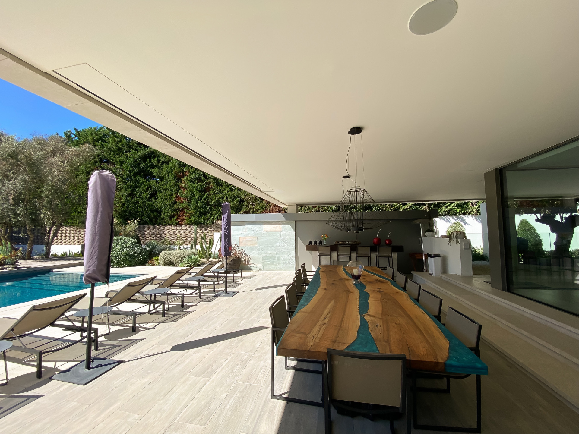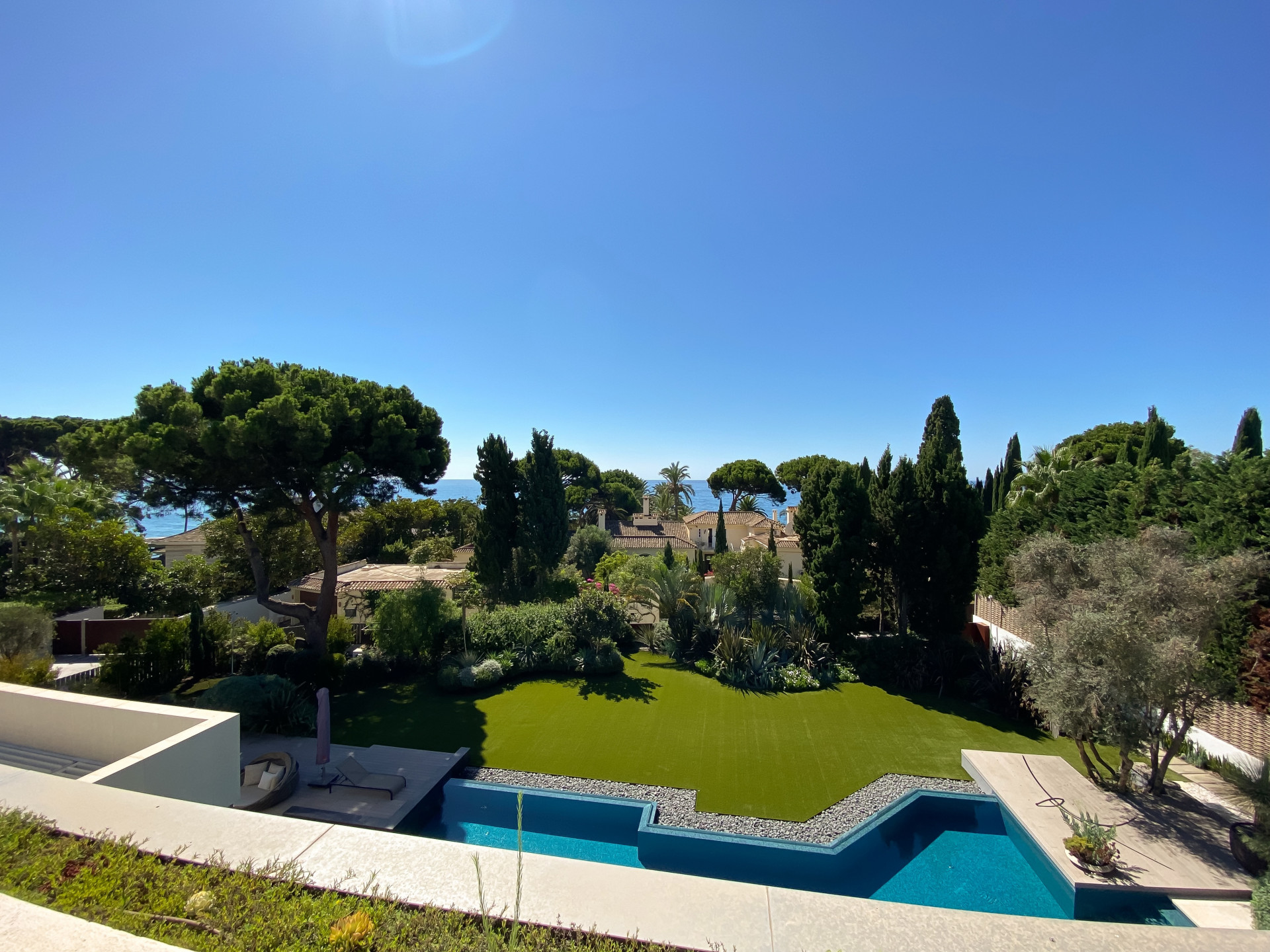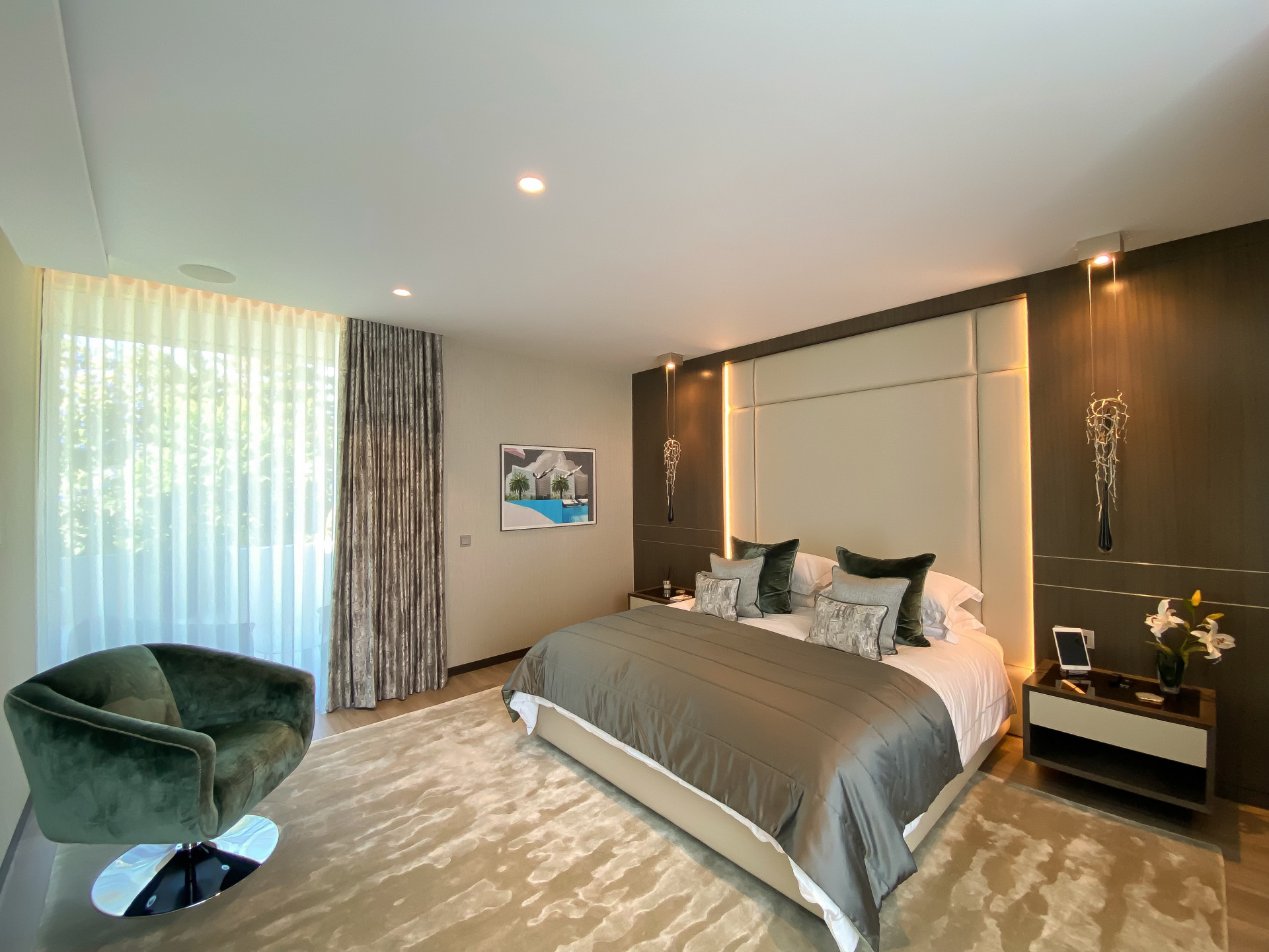 Im ersten Stock befindet sich eine geräumige Master-Suite mit eigenem Bad und Ankleidezimmer und atemberaubendem Meerblick. Auf dieser Etage befinden sich vier weitere Schlafzimmer, alle mit Ankleideraum und eigenem Bad. Alle Zimmer haben Zugang zu einer wunderschönen Terrasse, die sich über die gesamte Etage erstreckt.