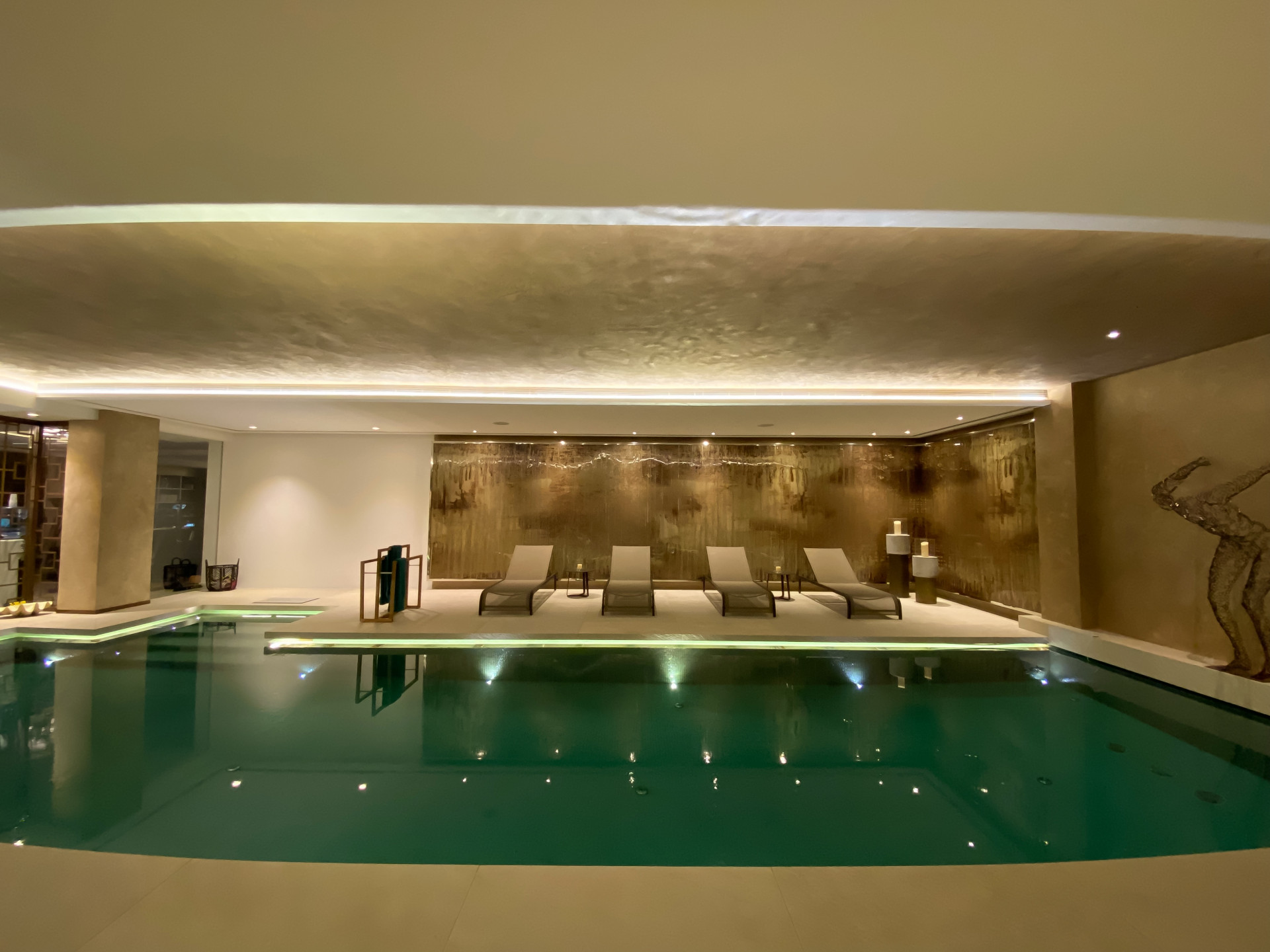 Der Außenpool ist beheizt. Das Spa umfasst einen beheizten Innenpool, einen Massage- und Schönheitsraum, eine Sauna und ein Dampfbad.