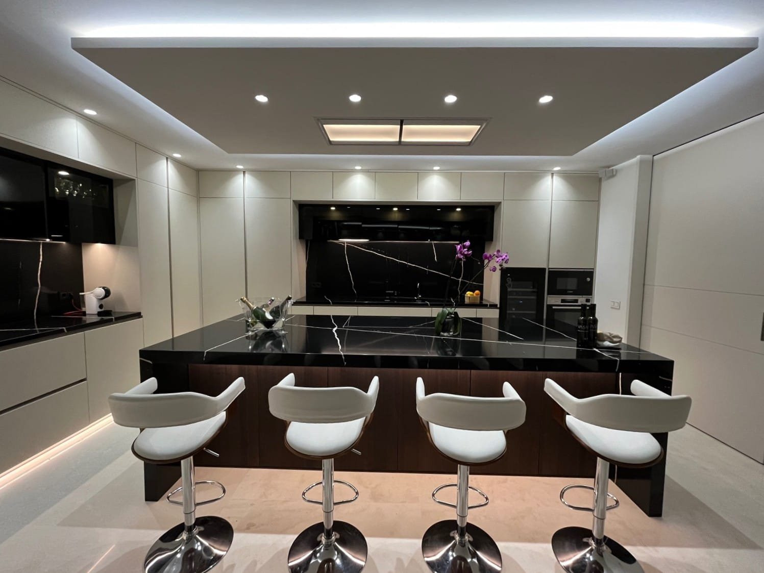 Diese Doppelhaushälfte bietet die höchsten Qualitäten im ganzen Haus innen und außen, mit dem höchsten Niveau der Materialien und Oberflächen, die ein luxuriöses und hochwertiges Gefühl zu Hause. Aufgrund der Lage dieses Hauses genießt man auf jeder Ebene des Hauses einen herrlichen Blick auf das Meer, sowohl vom Wohn- und Küchenbereich als auch von den Schlafzimmern und von der Sonnenterrasse auf dem Dach. Dieses moderne Haus bietet hohe Decken, viel natürliches Tageslicht durch die großen, umlaufenden Terrassentüren und Fenster und einen geräumigen, offenen Wohnbereich mit einer modernen, voll ausgestatteten Küche, Ess- und Unterhaltungsbereich sowie ein Gäste-WC. Vom Hauptwohnbereich aus gelangt man auf eine geschmackvoll angelegte, große Terrasse mit einem überschaubaren, nutzbaren Gartenbereich, Sitzgelegenheiten im Freien und einem Unterhaltungsbereich mit Sonnen- und Schattenplätzen sowie einem Tauchbecken. Der Pool an der Seite des Hauses ist nach Süden ausgerichtet, so genießt die Sonne den ganzen Tag über das ganze Jahr. Auf der Schlafzimmerebene des Hauses befinden sich drei weitere Schlafzimmer, so dass insgesamt vier Schlafzimmer zur Verfügung stehen, die alle einen unglaublichen Meerblick bieten. Das Hauptschlafzimmer hat ein eigenes Bad, während sich die Schlafzimmer zwei und drei das Hauptbad teilen. Von den Schlafzimmern aus kann man die vorderen und hinteren Terrassenbereiche genießen.