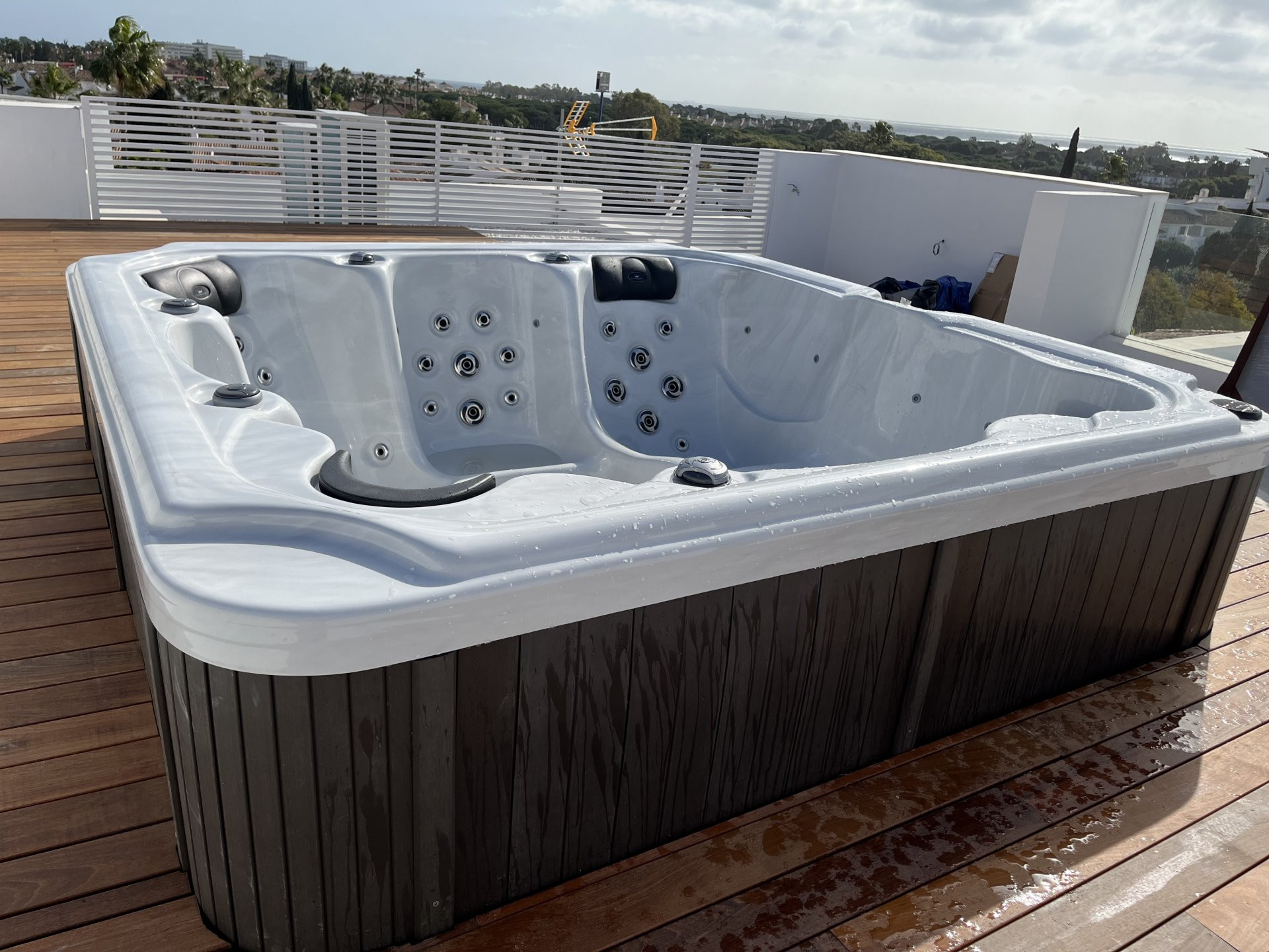 von hier aus haben Sie nicht nur einen fantastischen Blick auf das Meer, sondern auch auf Puerto Banus, Gibraltar und auch die nordafrikanische Küste. Hier finden Sie Ihre Outdoor-Jacuzzi mit Blick auf all die oben genannten, eine Außenküche und eine Außendusche. Dieser Raum ist fantastisch für die Unterhaltung und Sommer- und Wintermonate zu genießen …