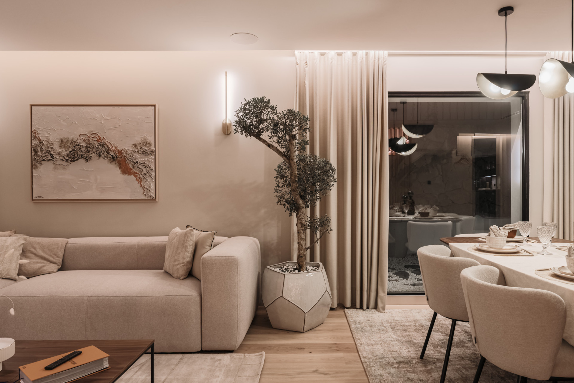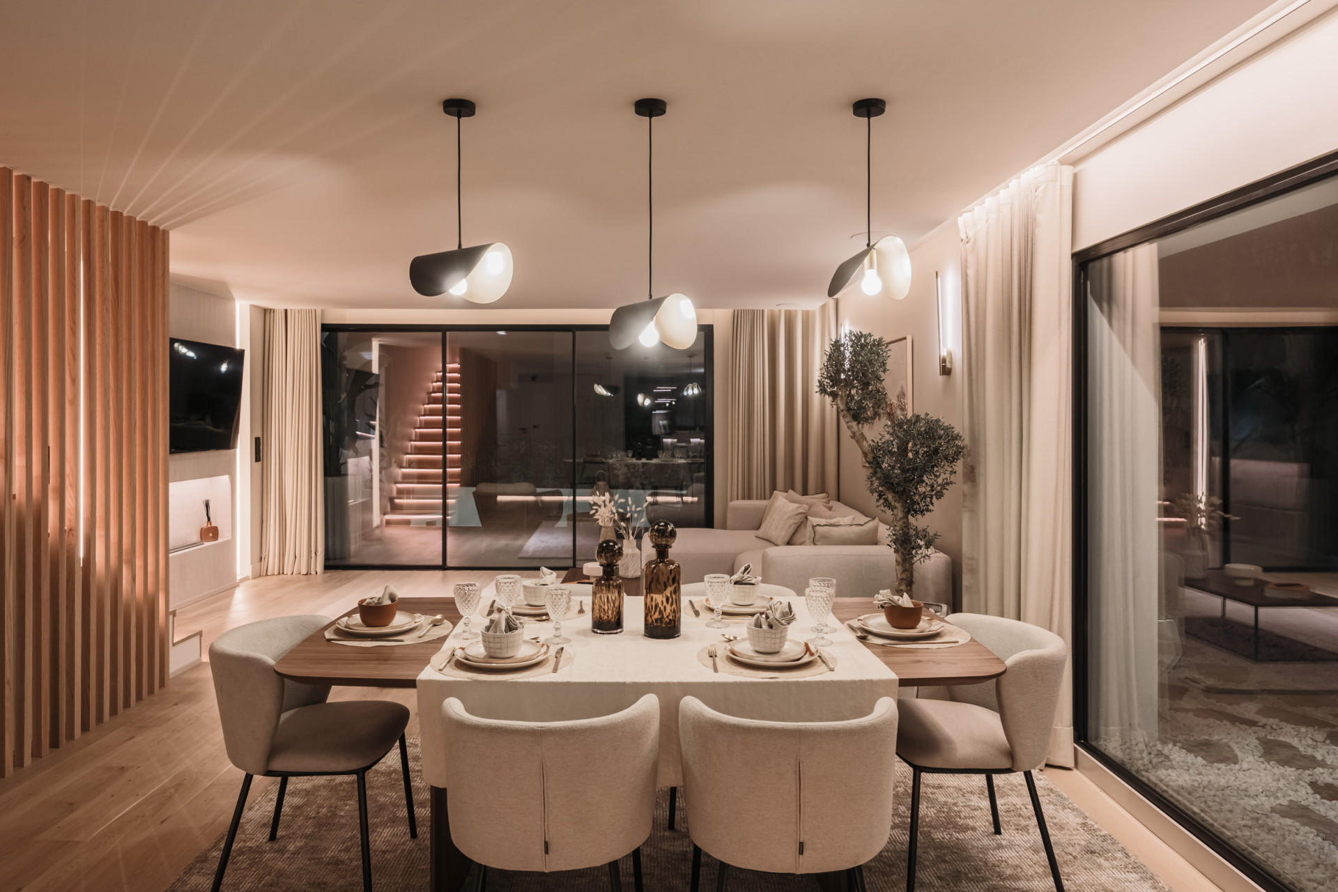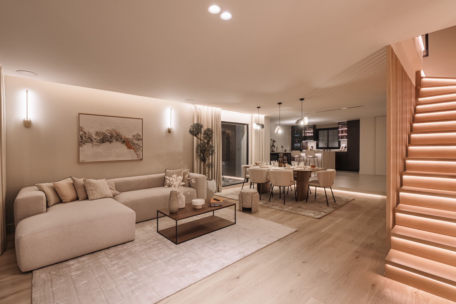 Freuen Sie sich auf offene, lichtdurchflutete Wohnräume. Die hochmoderne Küche, ausgestattet mit erstklassigen Geräten, ist ein Traum für jeden Koch. Die angrenzenden Ess- und Wohnbereiche bieten elegante Räume für Gäste oder intime Familienzusammenkünfte.