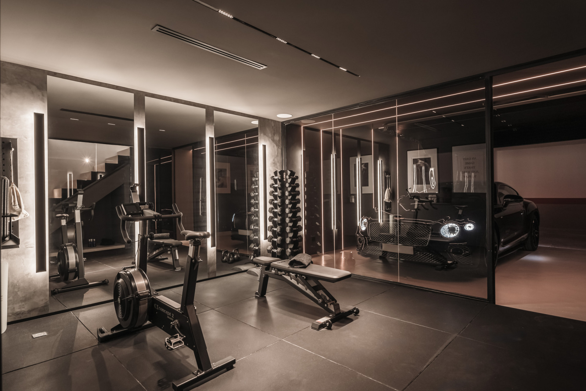 Erleben Sie unvergleichlichen Komfort. Auf dem Grundstück befindet sich ein privater Fitnessraum für Fitnessbegeisterte und ein eigener Kinoraum zur Unterhaltung. Das Untergeschoss bietet außerdem einen privaten Garagenzugang und reichlich Stauraum.
