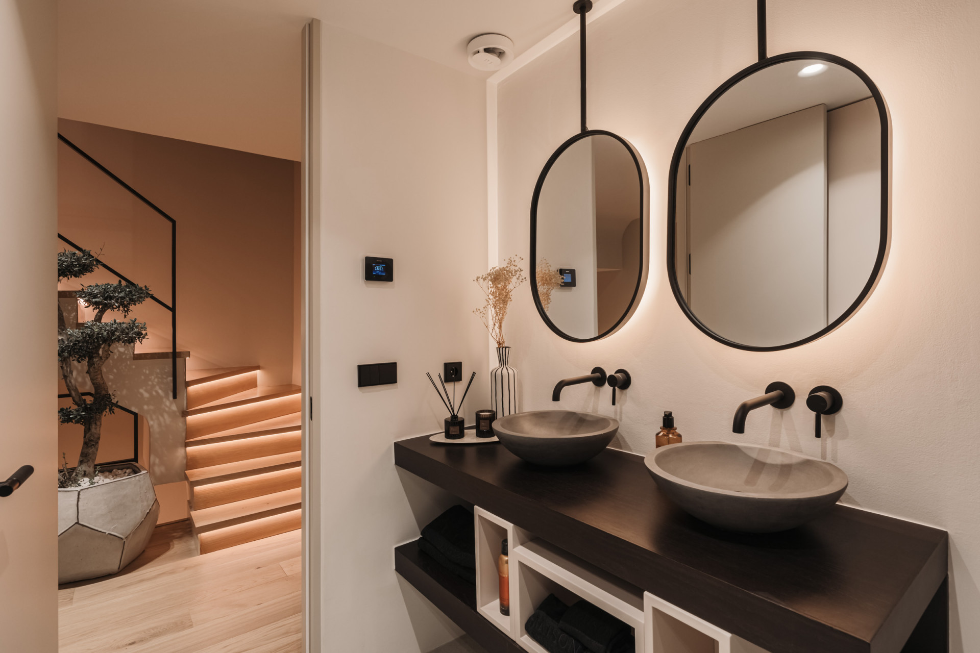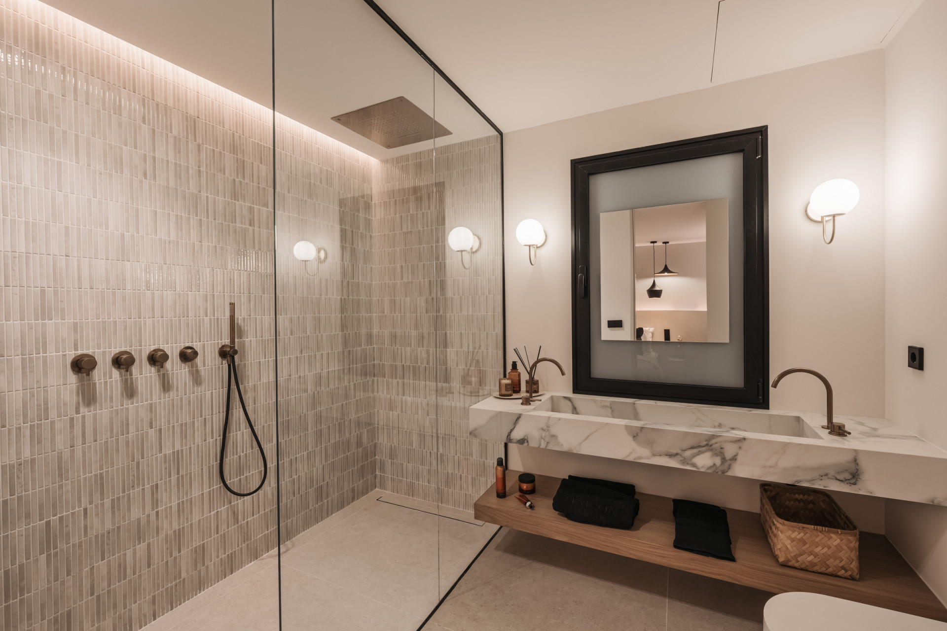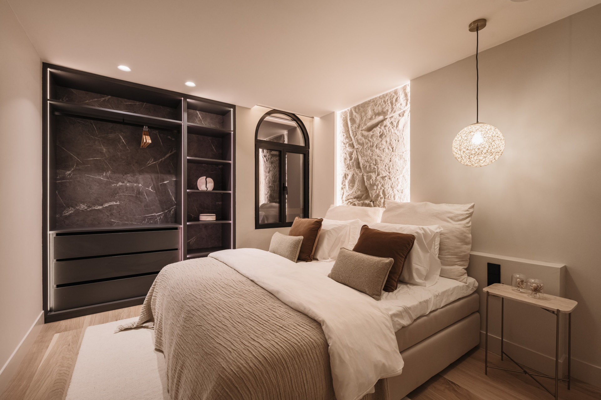 Die Master-Suite ist ein privates Refugium mit einem luxuriösen Bad, einem geräumigen begehbaren Kleiderschrank und einem privaten Balkon mit atemberaubendem Blick auf das Mittelmeer. Zwei weitere Gästeschlafzimmer teilen sich ein stilvolles Bad und Zugang zu einer gemeinsamen Terrasse. Ein viertes Schlafzimmer mit eigenem Bad sorgt für Flexibilität für Familie oder Gäste.