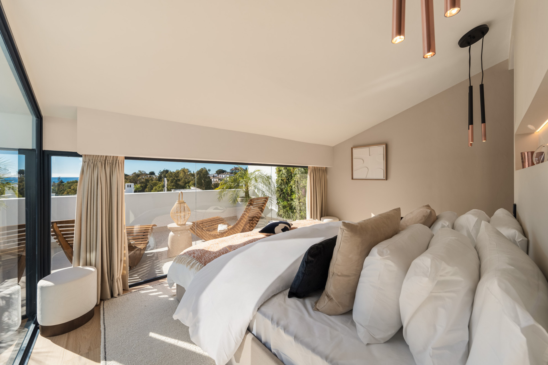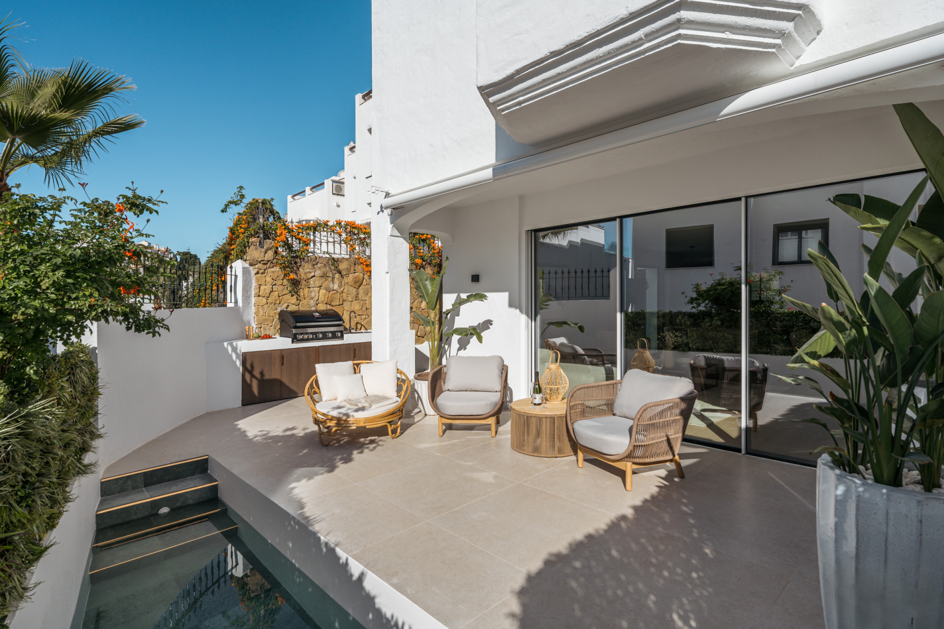 Genießen Sie den Lebensstil im Freien. Entspannen Sie sich auf der privaten Terrasse mit Tauchbecken und genießen Sie das milde Klima von Altos de Puente Romano.