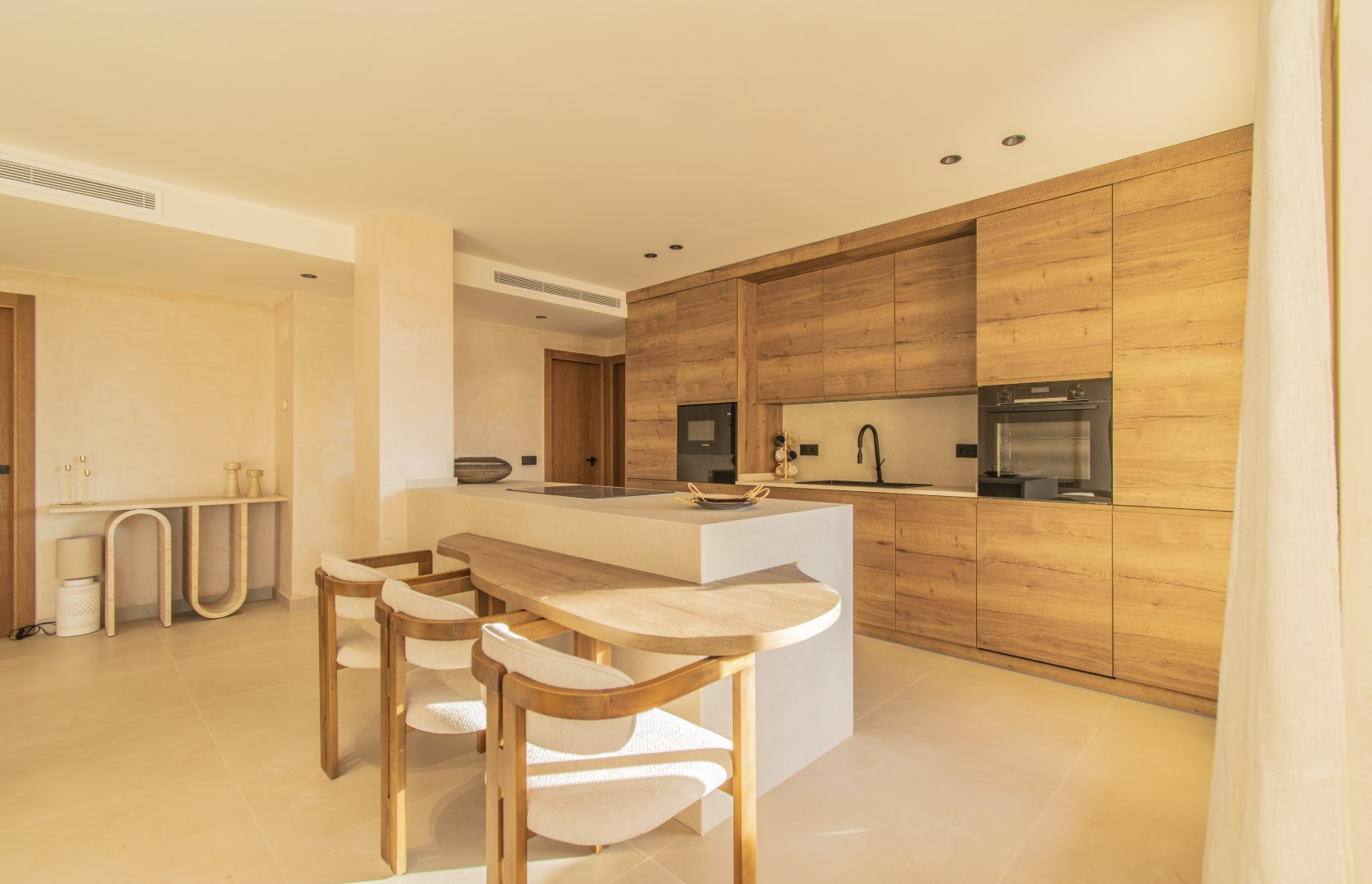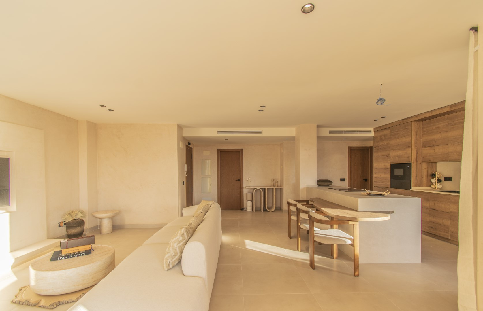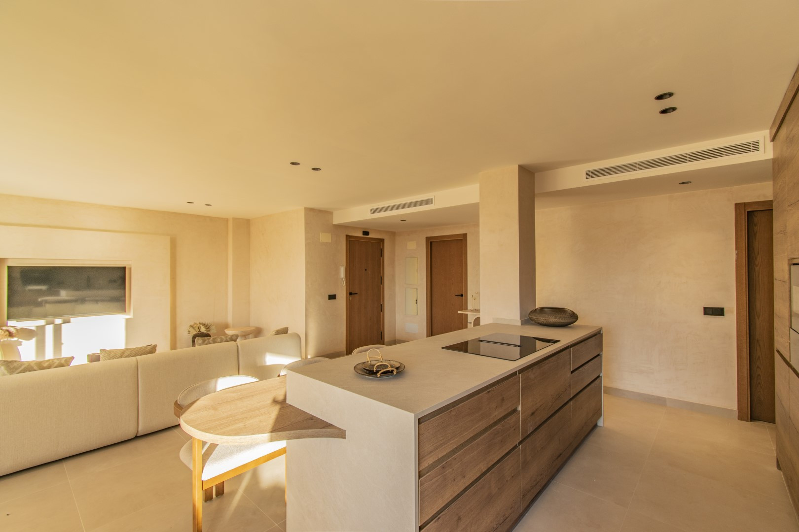 Geräumiges Anwesen mit insgesamt zwei Schlafzimmern, zwei Badezimmern plus Gäste-WC, Wohnzimmer mit einer fantastischen offenen Küche und einer wunderbaren 65m2 großen Terrasse mit schöner Aussicht. Inklusive einer Garage und einem Lagerraum. Gelegen in einer exklusiven Urbanisation mit 24-Stunden-Sicherheitsdienst, Außenpool, SPA-Bereich und wunderschönen Gärten.