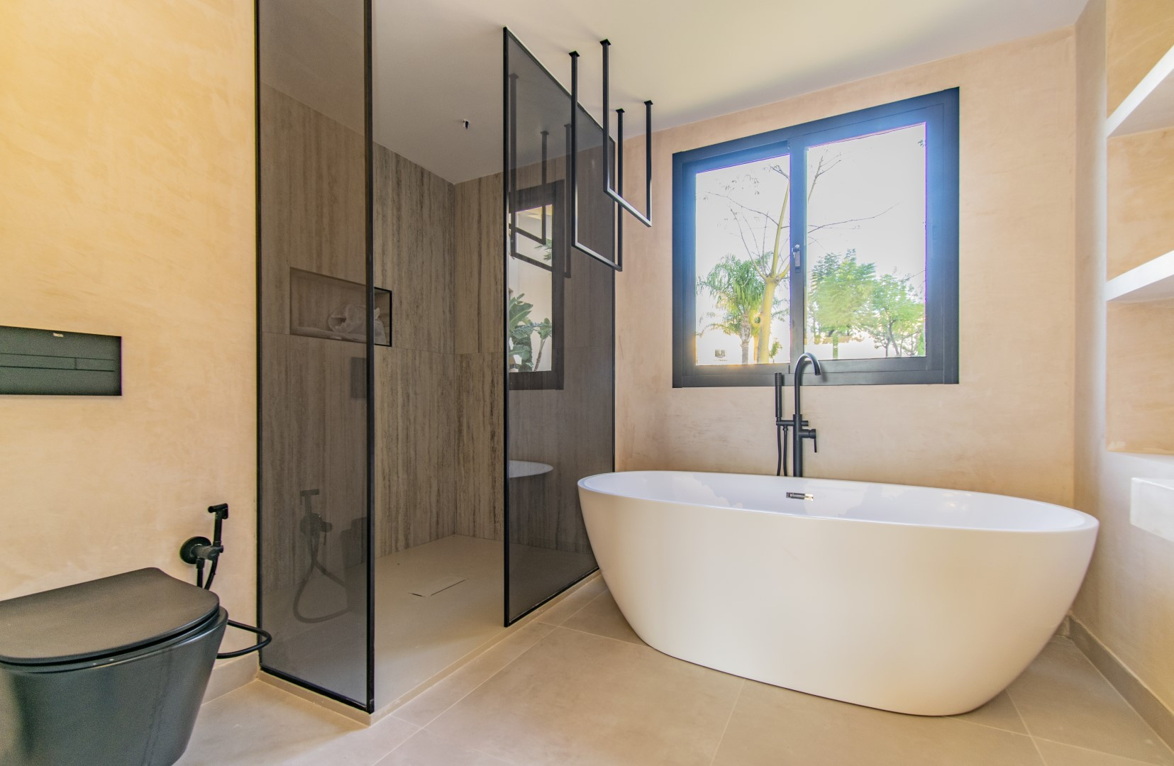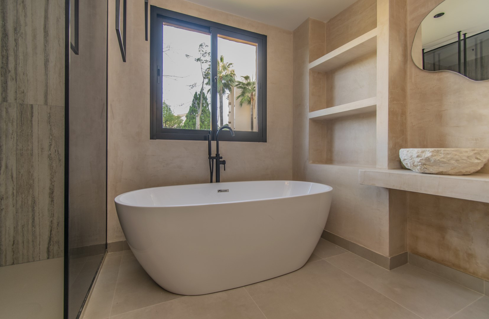 Wunderschönes, komplett renoviertes Anwesen mit einem warmen, zeitgenössischen Stil im unteren Teil von Benahavis, ganz in der Nähe von Guadalmina, neben allen Annehmlichkeiten wie der internationalen Schule, dem Supermarkt, Restaurants und umgeben von den besten Golfplätzen der Region.