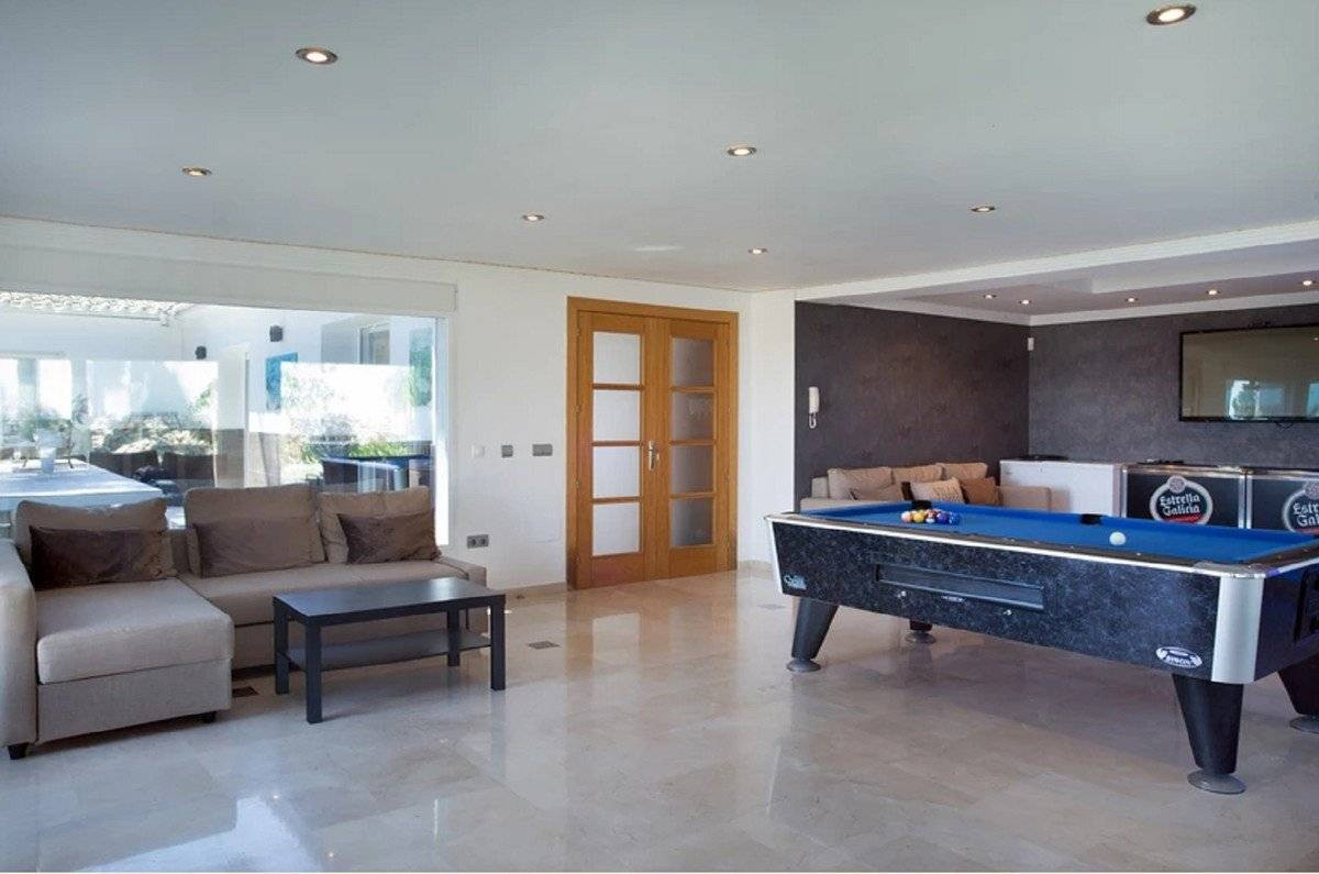 Large, comfortable sofas and satellite TV make the living space a great place to chill out. There is also a fully equipped modern kitchen and dining area, a games room with pool table and a gym is a particular highlight of this property, making it ideal for families.