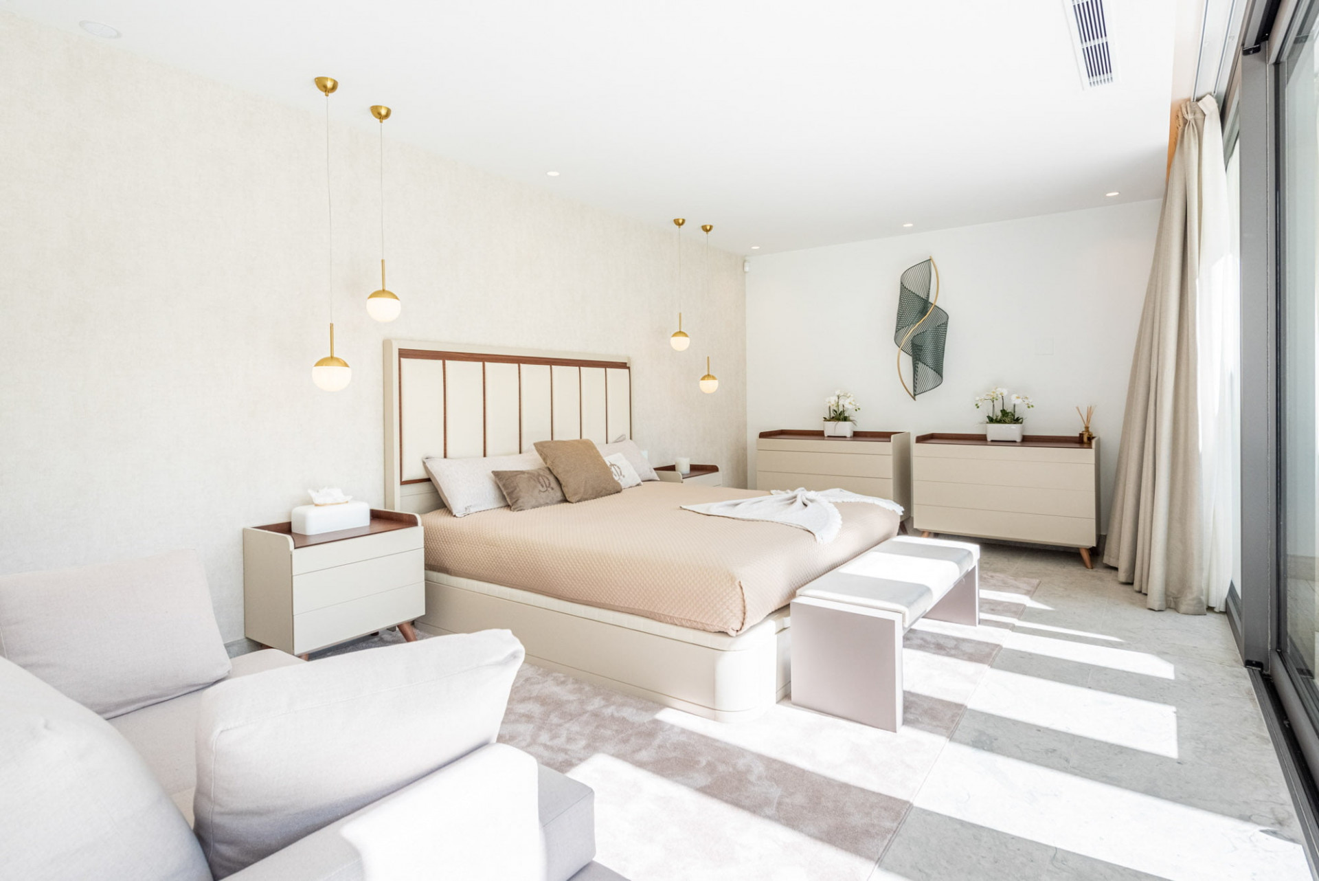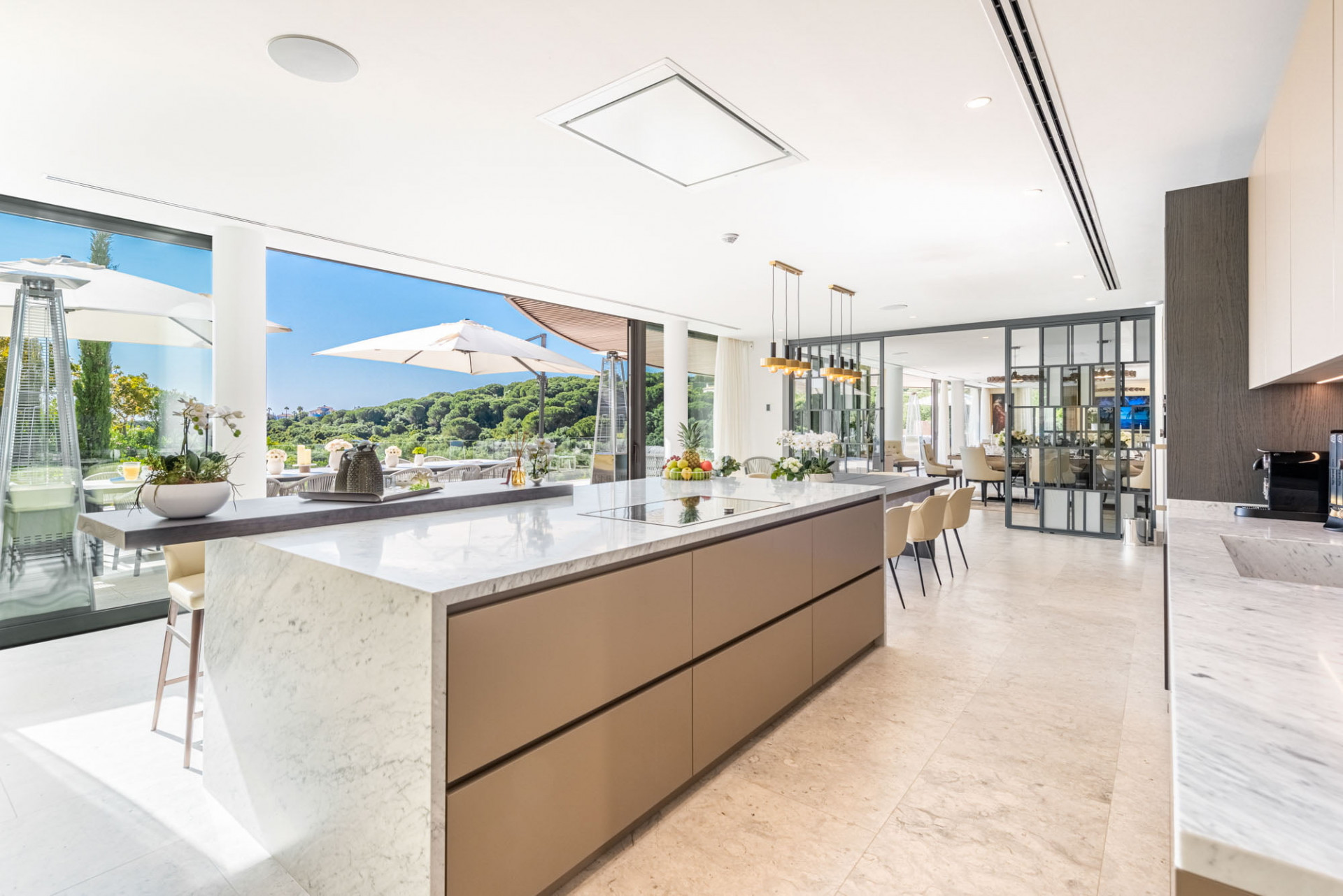 A beautiful, contemporary villa within this private gated community, with views across La Reserva Club to the sea. Arranged on three floors, it has five bedrooms, including a substantial master suite and dramatic internal and external living, dining and entertaining areas.