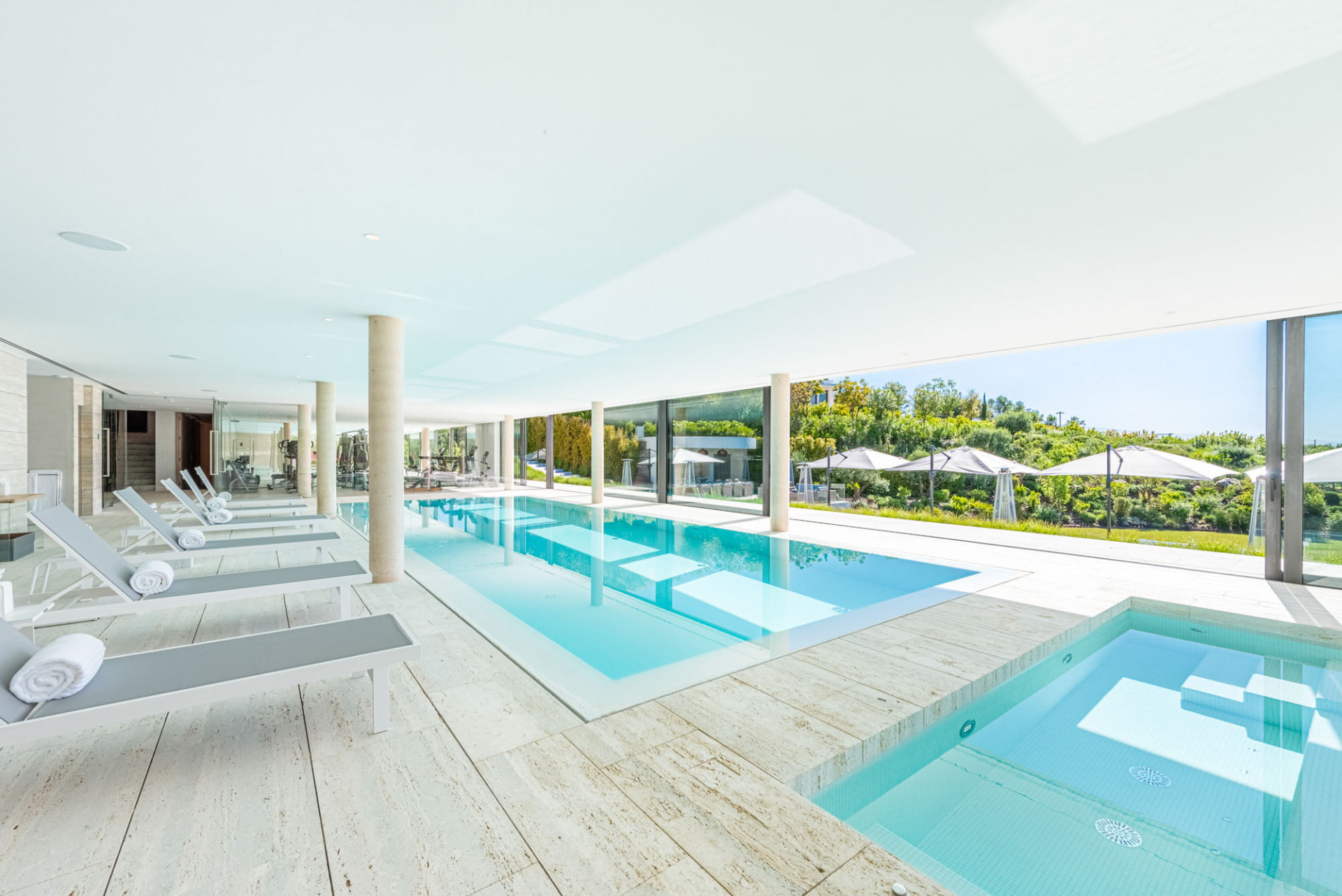 The lifestyle is complemented by indoor and outdoor pools and a gym. The garden is carefully landscaped to deliver privacy and frame the panoramas of Andalucia, the Rock of Gibraltar and the Mediterranean.