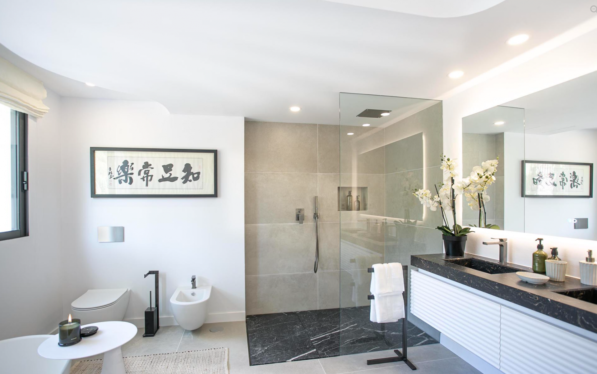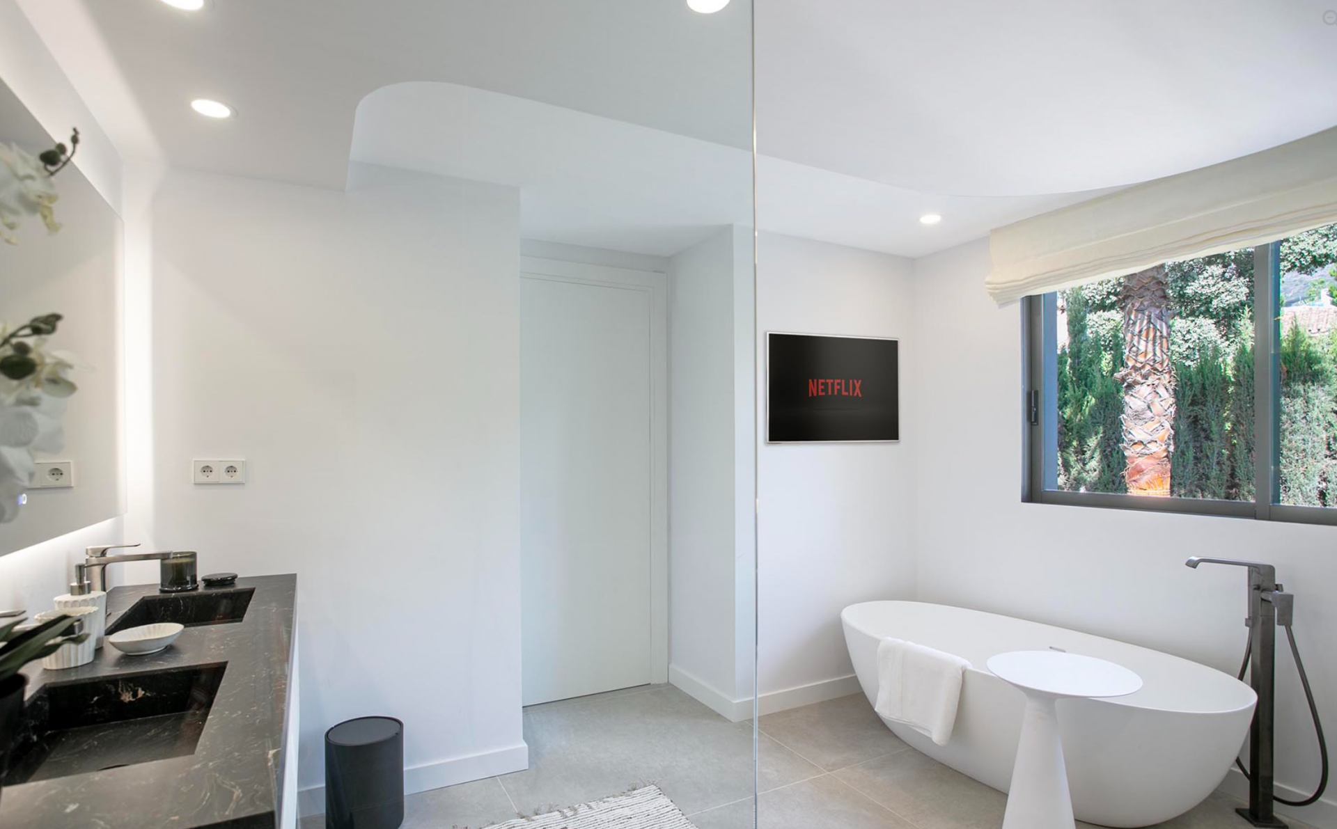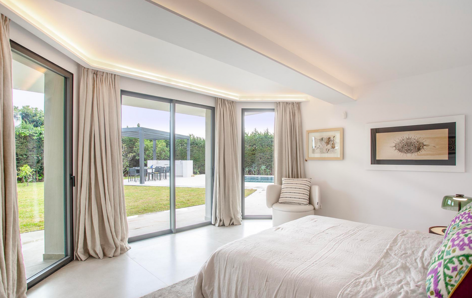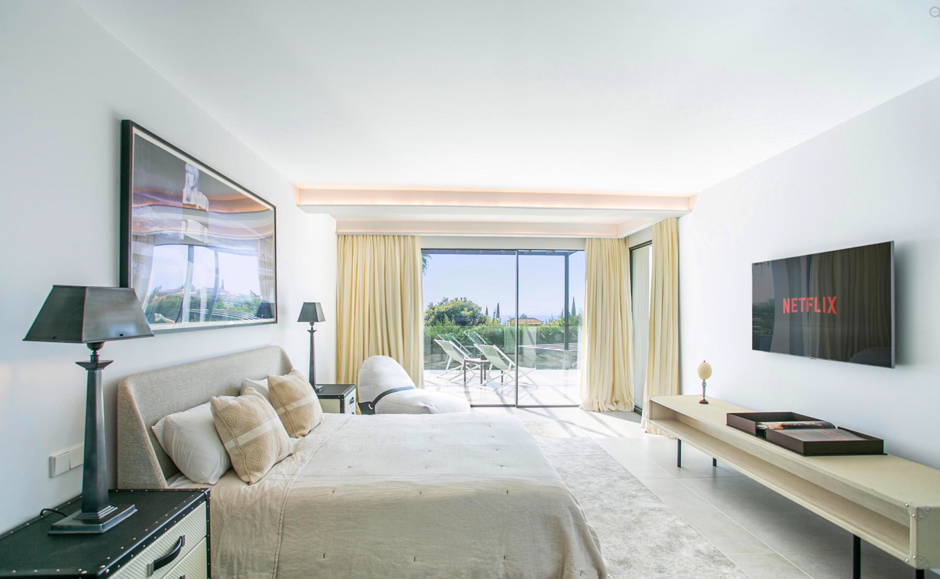 This sublime villa offers panoramic sea views in all directions from the living room and master bedroom and views of the famous "Concha" mountain from the garden.