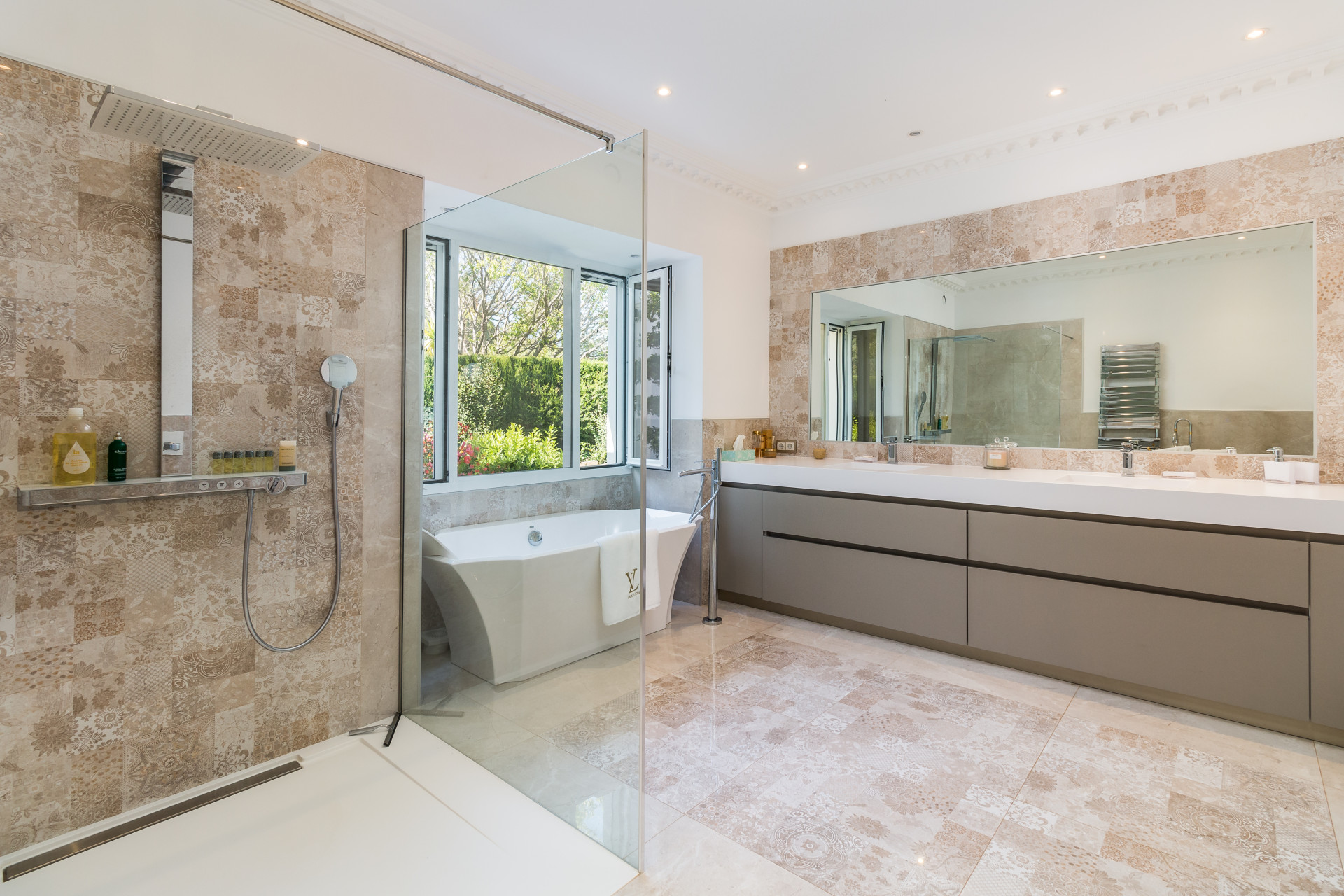 It has 5 bedrooms, 3 bright and spacious living rooms, an office and library, a fully equipped kitchen and a separate flat with private courtyard.