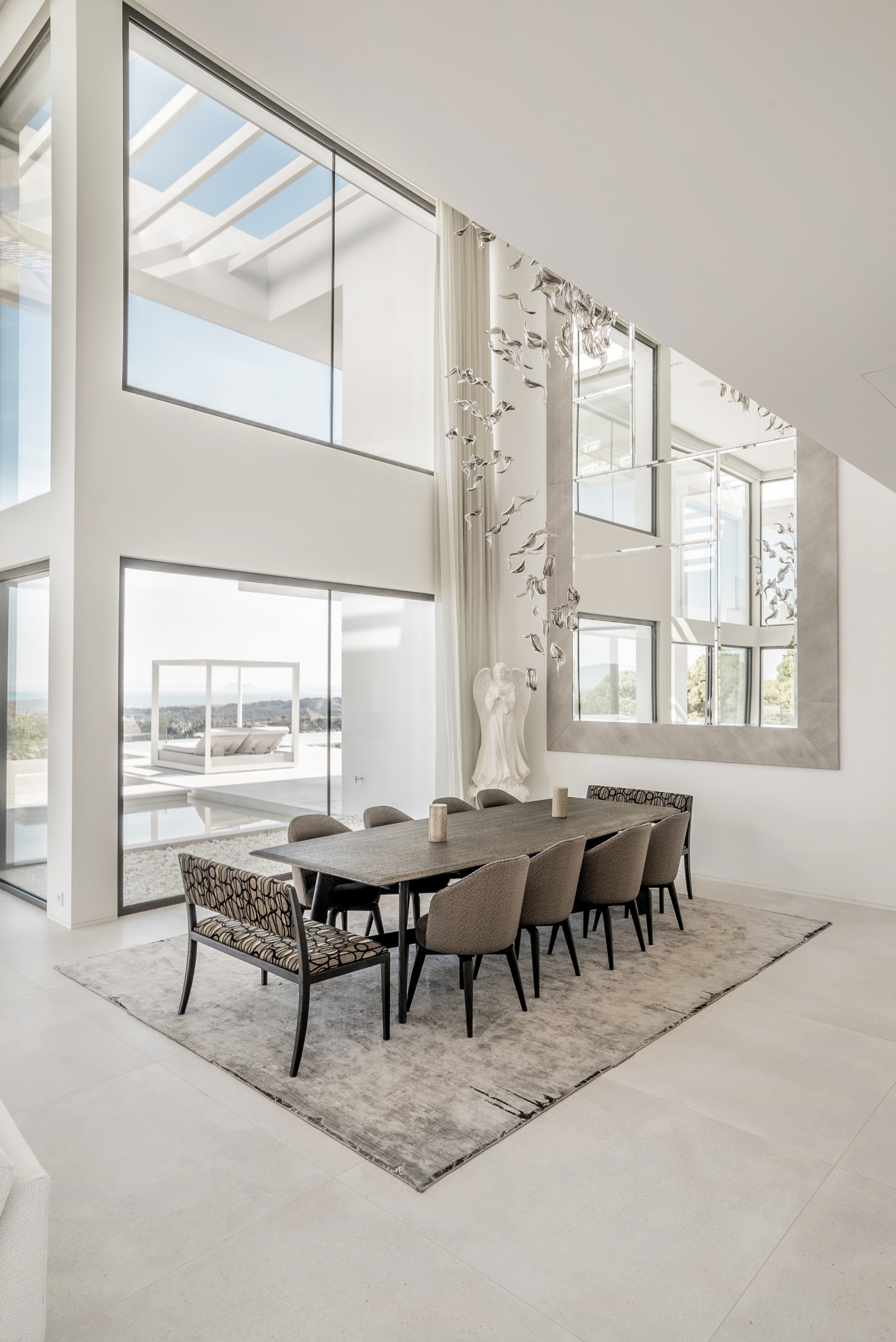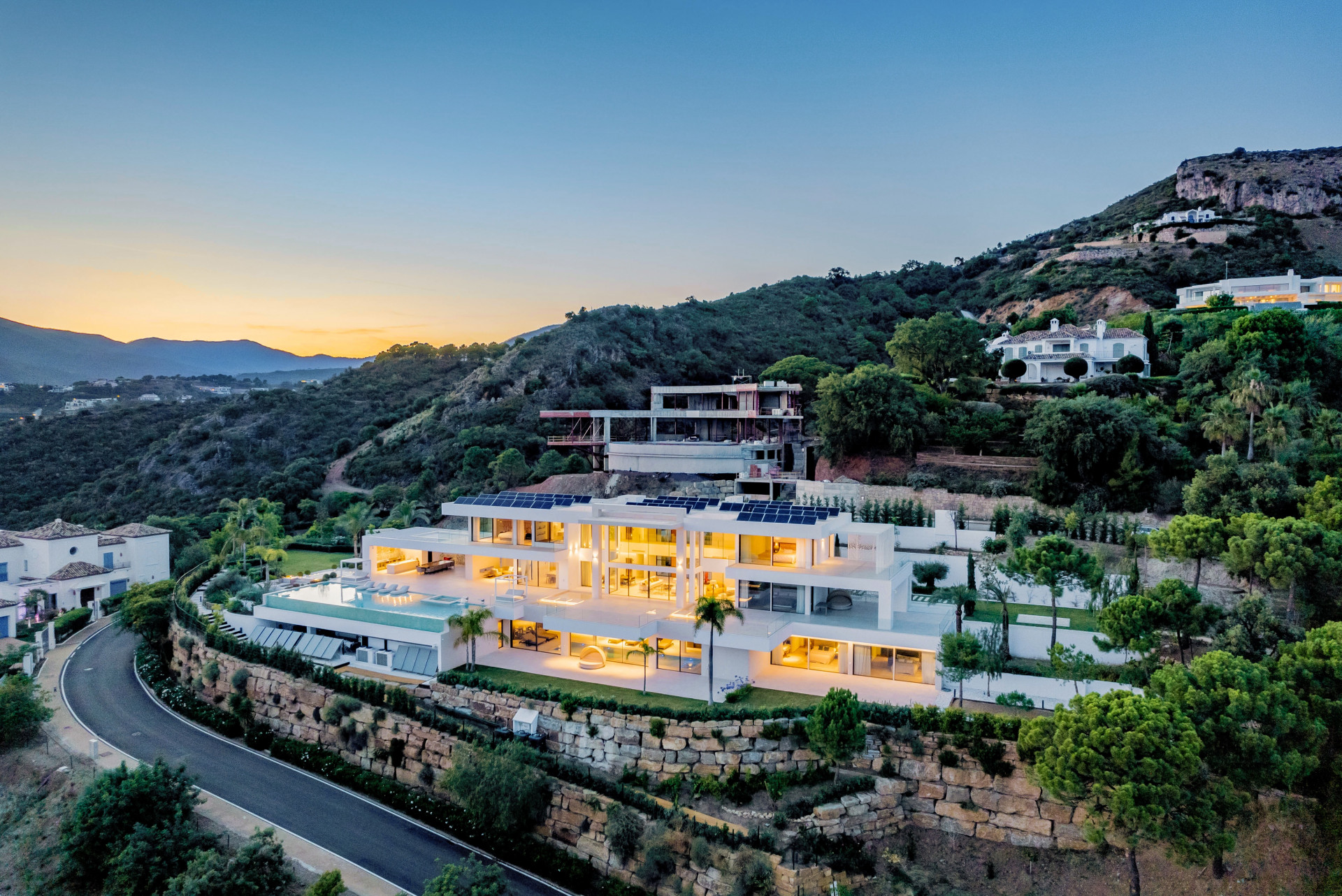 Welcome to La Isabella, the crown jewel of Marbella Club Golf Resort. This luxurious villa offers an unparalleled living experience with its exquisite design, breathtaking views, and unrivaled amenities. With 7 bedrooms, 12 bathrooms, and sprawling across a 4608 m2 plot, La Isabella epitomizes grandeur and opulence. As you step into the living room, you are immediately struck by the grandeur of the space. The soaring ceilings, reaching an impressive height of 8-10 meters, create a sense of openness and airiness. Natural light floods the room from the huge windows that stretch from floor to ceiling, showcasing breathtaking panoramic views of the sea and the surrounding landscape. The living room seamlessly integrates with the terrace space, blurring the boundaries between indoor and outdoor living. The expansive windows not only provide an abundance of natural light but also offer uninterrupted vistas of the sparkling blue sea, inviting you to admire the beauty of nature from the comfort of your own home. The terracespace, accessible through the windows, beckons you to step outside and soak in the refreshing ocean breeze, making it a perfect spot for relaxation, entertaining guests, or enjoying al fresco dining. From the living room, you have easy access to other areas of the house. A sleek and modern kitchen awaits, equipped with state-of-the-art appliances and ample counter space to indulge your culinary endeavors. Adjacent to the kitchen is an office space, providing a quiet and professional environment to attend to work or personal matters. For added convenience and privacy, there is a separate bedroom located off the living area. This secluded retreat offers a cozy sanctuary, perfect for guests or family members seeking solitude. If you wish to explore further, a lift awaits you, ready to transport you to the first floor. As you ascend, anticipation builds for what lies ahead. The first floor is home to two master bedrooms, exuding luxury and comfort. Each master bedroom boasts a spacious walk-in closet, ensuring ample storage for your wardrobe and accessories. The en-suite bathrooms are elegantly designed, featuring high-end fixtures and finishes. Within the master bedrooms, you will also find minibars, offering a touch of indulgence and convenience. Whether you desire a refreshing drink or a late-night snack, the minibars cater to your every need. Furthermore, a dedicated office desk is provided, allowing you to attend to work or personal matters in the comfort of your own private space. The combination of spacious living areas, breathtaking sea views, and well-appointed rooms make this living room a truly extraordinary and luxurious haven, providing both comfort and elegance in a stunning seaside setting. Step inside and immerse yourself in the world of cinematic indulgence. La Isabella features a state-of-the-art home cinema, complete with 14 fully electrically reclining seats, a stunning 4K UHD image, and Dolby Atmos sound, ensuring an immersive entertainment experience. Additionally, a wireless karaoke system with 3 microphones sets the stage for memorable evenings filled with music and laughter. The villa’s indoor pool area is a sanctuary of tranquility, exuding elegance and charm. As night falls, the ceiling comes alive with twinkling stars, creating a celestial ambiance. This area also includes a spa, sauna, steam room, and a massage room, providing the perfect retreat for relaxation and rejuvenation. For the health-conscious, a fully equipped gym awaits, enabling residents to maintain their fitness regimes without leaving the comfort of their own home. Additionally, a separate staff apartment provides accommodation for your dedicated personnel, ensuring seamless service and privacy. The villa is equipped with a lift, effortlessly connecting all levels of the property. This feature adds convenience and accessibility for residents and guests alike. One of the most remarkable features of La Isabella is the awe-inspiring panoramic views it offers. From its elevated position, the villa showcases spectacular vistas of the entire coast, stretching all the way to Gibraltar and Morocco. Whether you’re lounging on one of the several terraces or enjoying a dip in the magnificent infinity swimming pool, the beauty of the surrounding landscape will captivate your senses. 5 of the 7 bedrooms boasts an ensuite bathroom and a private terrace, ensuring that every resident has their own personal retreat. These thoughtfully designed spaces provide comfort and privacy, while also offering breathtaking views of the surroundings. For car enthusiasts, the villa boasts a spacious garage with room for 5 cars, complemented by an additional 3 outside parking spaces. Your vehicles will be housed in a secure environment, providing peace of mind and convenience. The exterior of La Isabella is a true masterpiece, featuring a water fountain in the entrance, an entertainment lounge area with a fireplace, perfect for hosting intimate gatherings or relaxing evenings. The meticulously landscaped gardens create a serene ambience, inviting residents to indulge in outdoor living and embrace the Mediterranean lifestyle. La Isabella is not just a villa; it is a testament to luxury and refinement. With its exceptional amenities, breathtaking views, and impeccable design, this property offers an unparalleled living experience in the esteemed Marbella Club Golf Resort.
