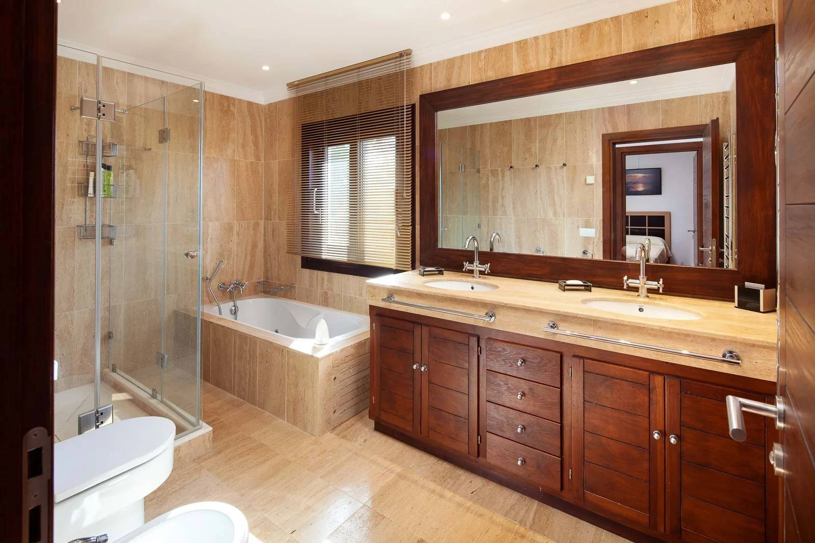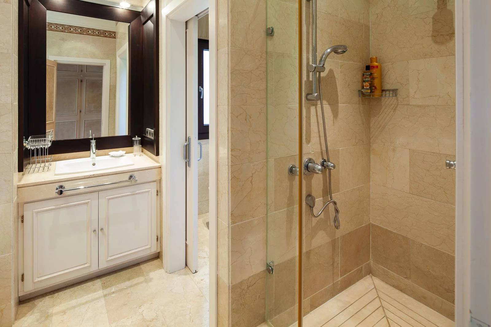 Last but not least, the villa has a garage for four cars. Next to the garage, you will find the staff house that is completely independent and enjoys two bedrooms with living room, kitchen and bathroom.