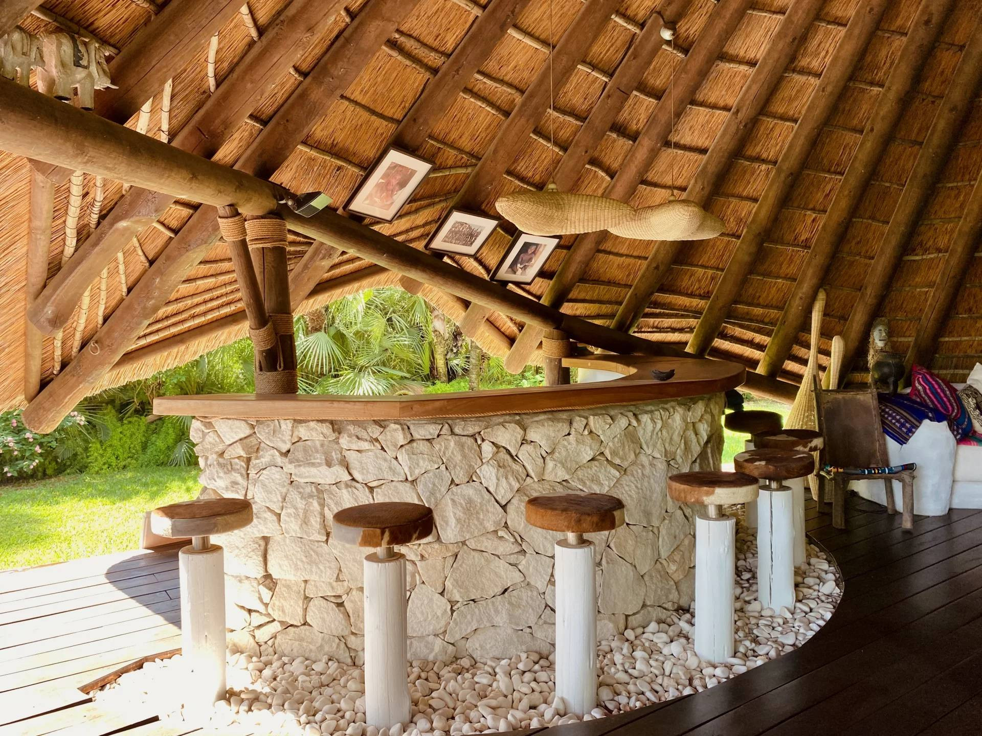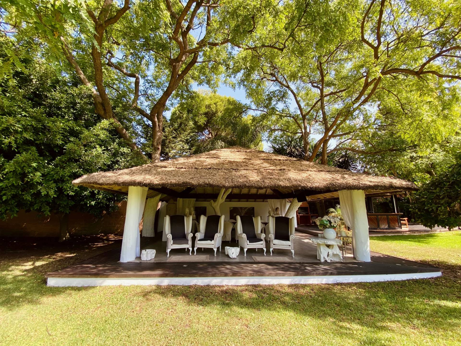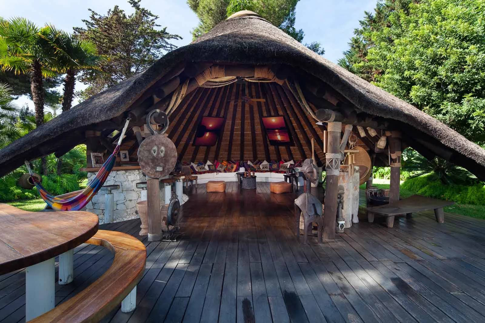 There are two unique outdoor spaces: an African cabin made with imported materials and artisan custom, an exquisite outdoor home designed by renowned European contemporary designer, and a unique BBQ and outdoor bar, making this property an ideal home for families to live and entertain .