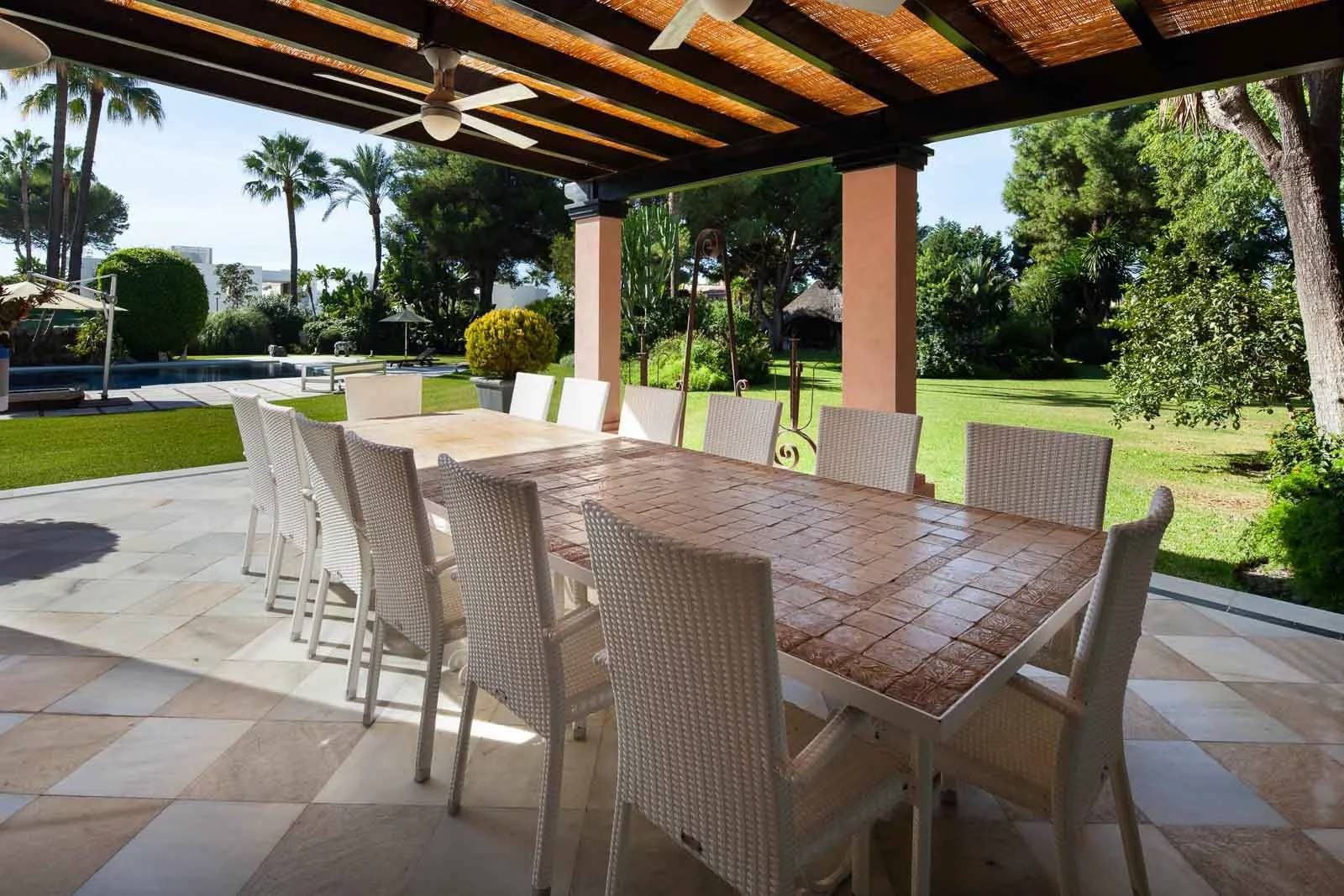 The property is built on a plot of 7.415,04 m2 and has a constructed area of 1.069,57 m2. It has 8 bedrooms and 8 bathrooms and a staff house. It is possible to build an additional house of 500 m2 with a separate entrance on the plot.
