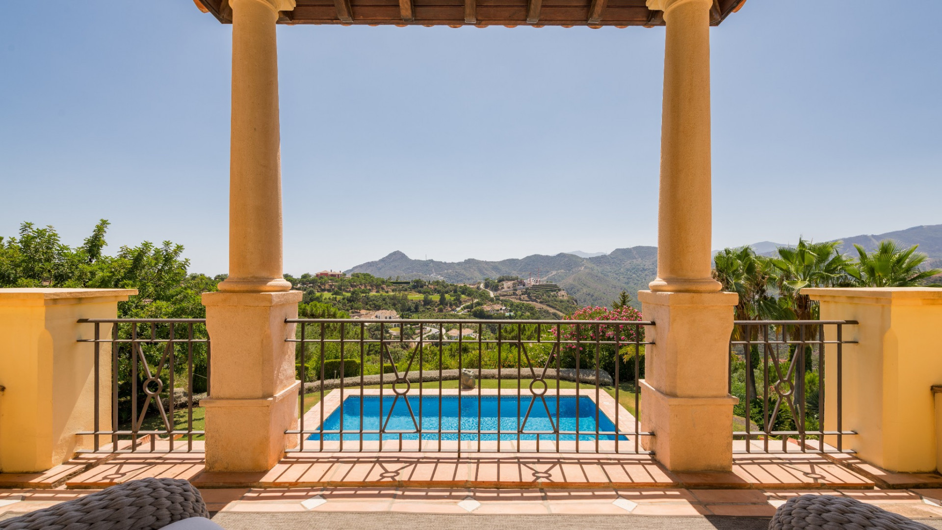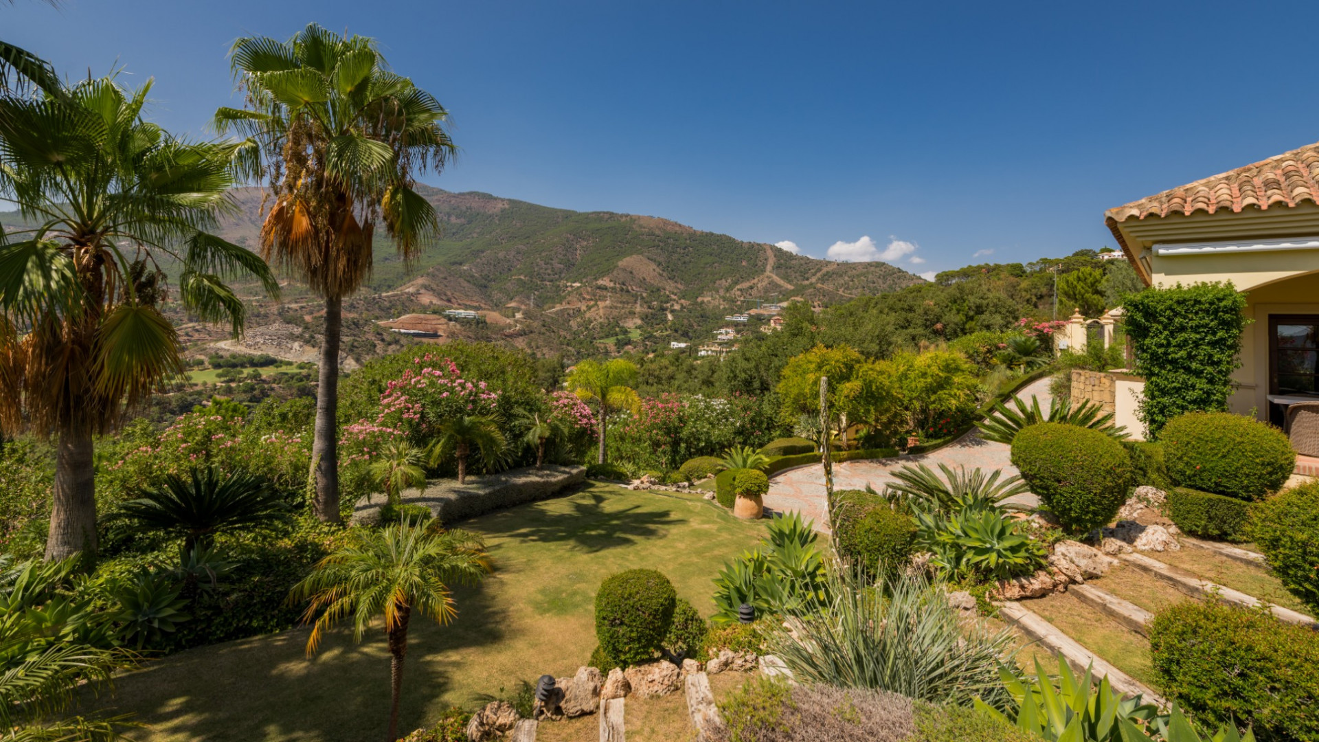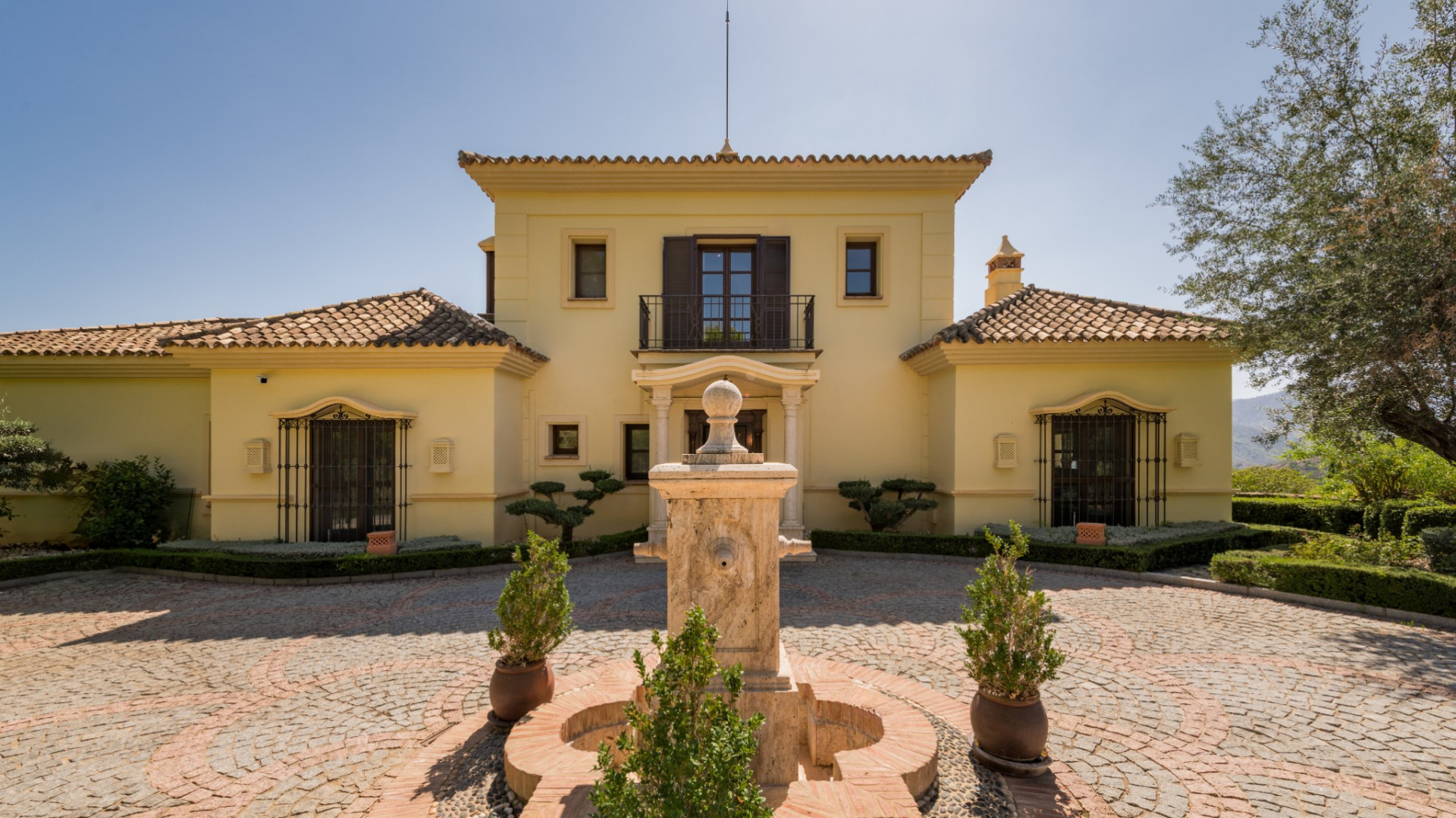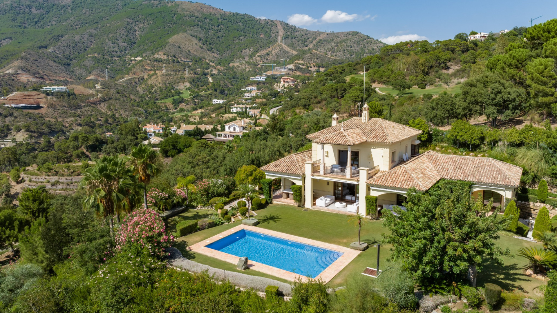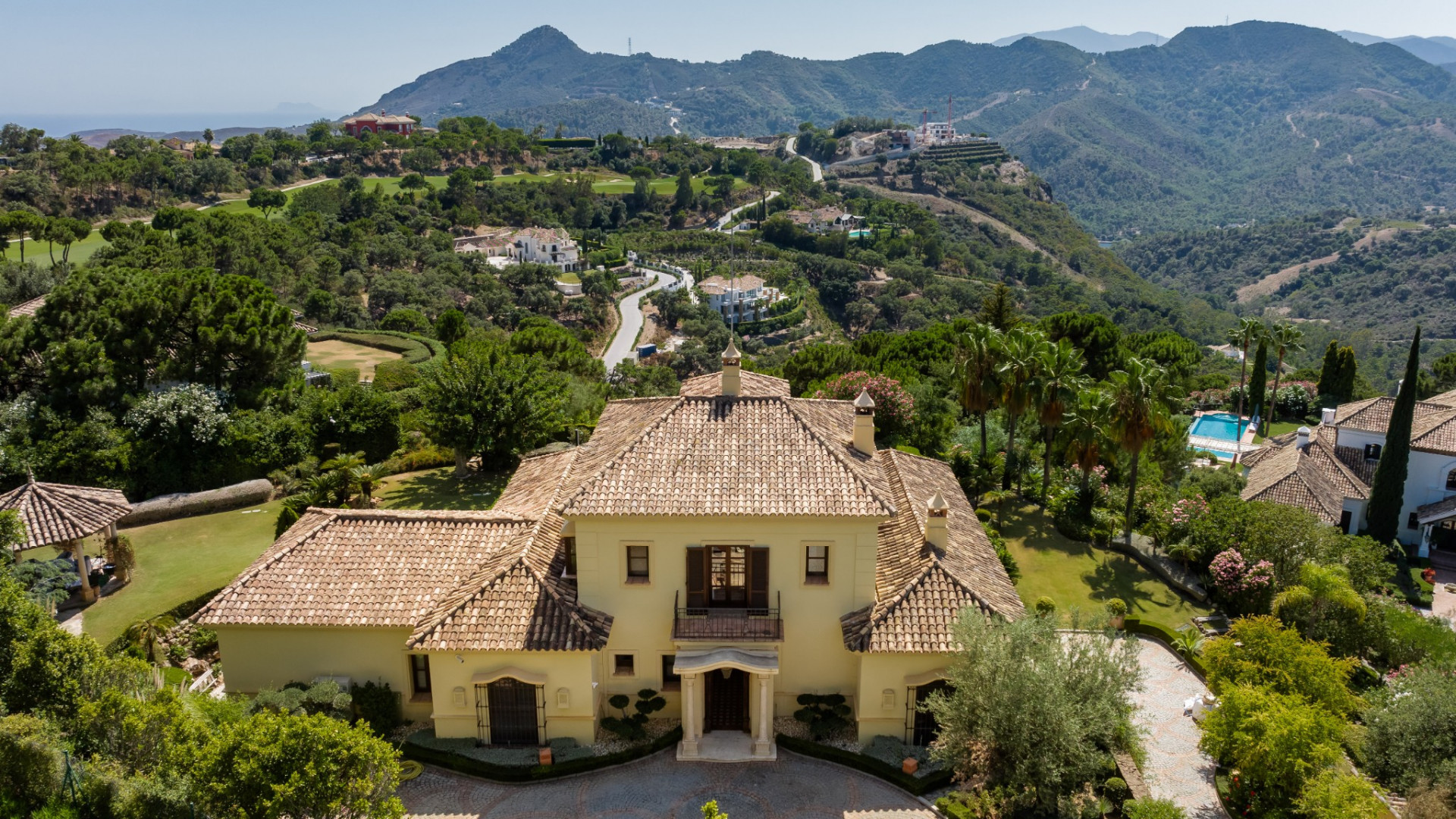 Traditional Andalusian style villa with open mountain views in La Zagaleta golf and country club, ones of Europe’s most exclusive residential complexes. It has 2 gated entrances with 24-hour security, two 18-hole golf courses with club houses, equestrian centre, heliport, racquets club and concierge services for its residents. A former hunting reserve, La Zagaleta spans over 900 hectares maintaining its natural surroundings with golf and sea views. The property is conveniently distributed over two floors plus basement and comprises an entrance hall, a living room with a fireplace leading out to the semi covered terrace with pool and garden views, an adjoining TV room, separate formal dining room with gabled ceilings decorated with wooden beams and a fully fitted kitchen with central island. Two en-suite bedrooms make up this floor, one of them with direct access to the covered terrace and garden. Upper floor is for the exclusive use of master bedroom with a nice dressing area and an spacious bathroom. At the basement there is the staff or guest apartment, this separate space is perfect for accommodating any live-in staff or guests, providing them with their own privacy and convenience. Also, wine cellar, utility room, big storage room, a large multifunctional room (to be converted into cinema room, gymnasium or spa) and spacious garage for 2-3 cars. As we step outside, you’ll be greeted by the enticing poolside area. The shimmering pool is an excellent place to relax and unwind on sunny days, and the gazebo offers the perfect spot for entertaining guests. Whether it’s a casual barbecue or a gathering with friends, the gazebo is equipped with a built-in barbecue, sink and cupboards, making hosting a breeze. The living spaces have been meticulously designed with terracotta floors, giving the home a warm and inviting ambiance. The wooden sliding double glazed windows not only provide excellent insulation but also allow you to enjoy the breathtaking views of the mountains, golf course, and countryside from every corner of the house.