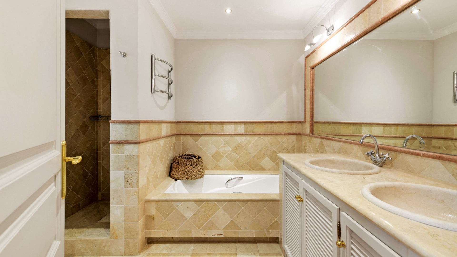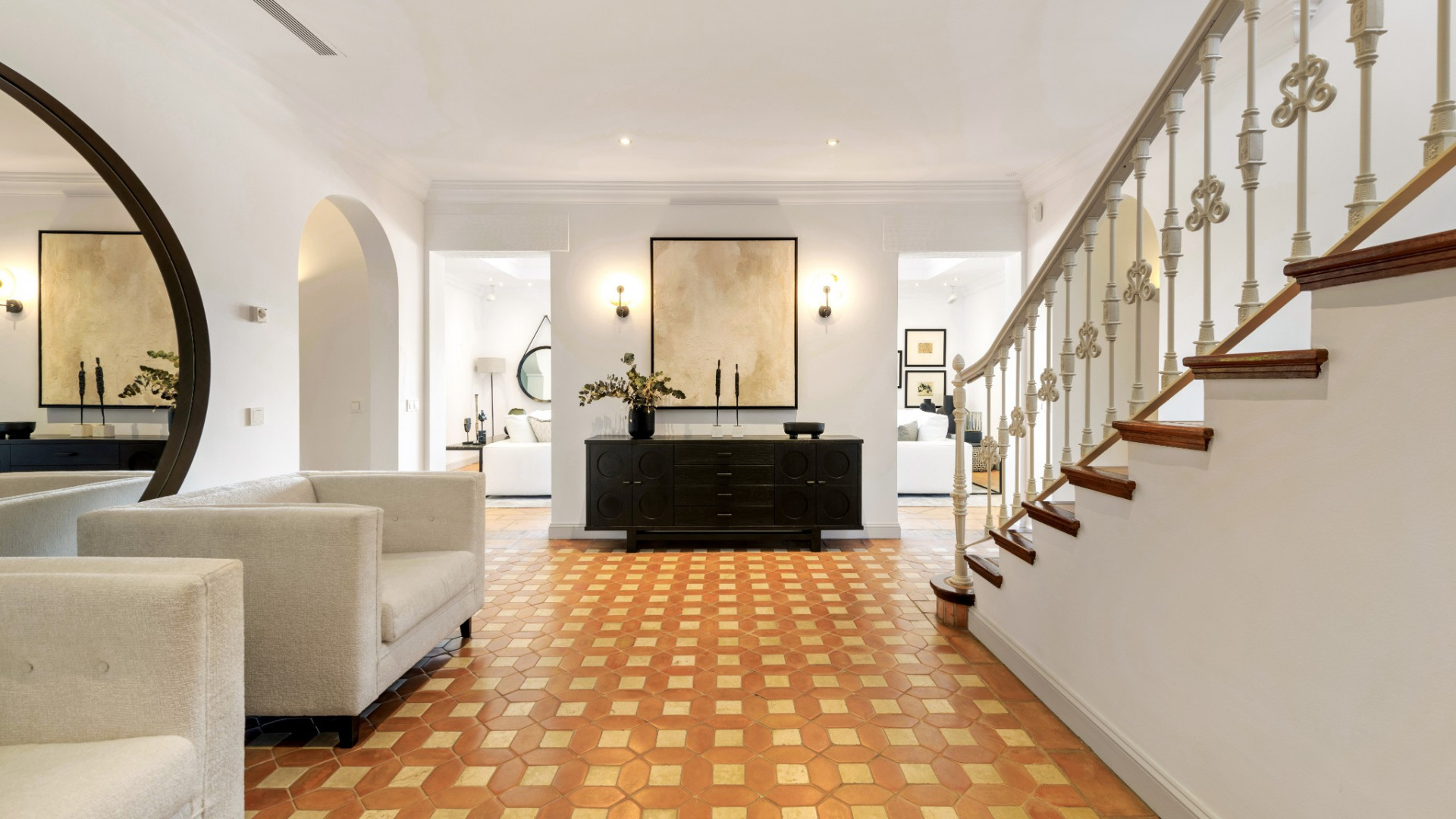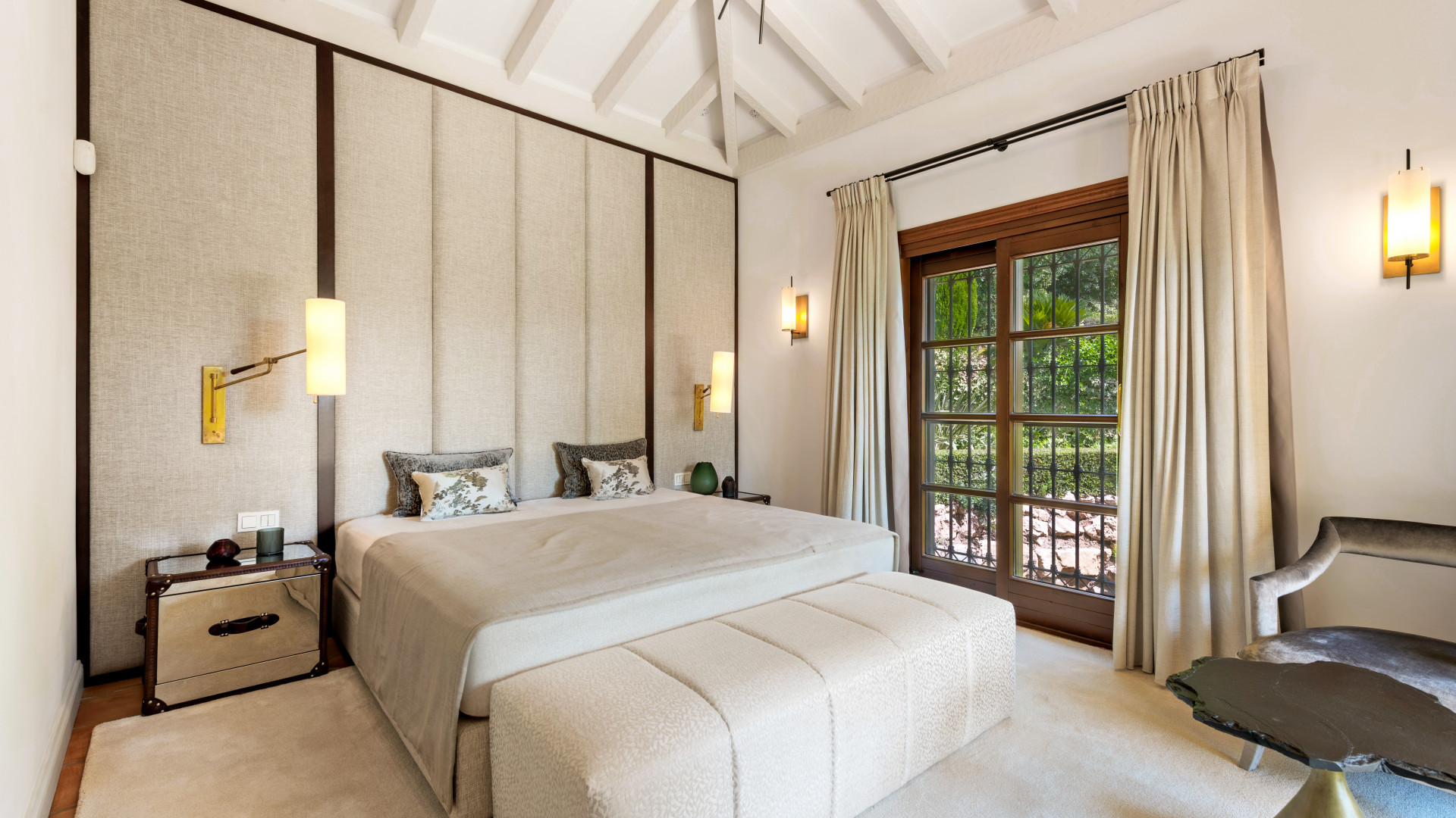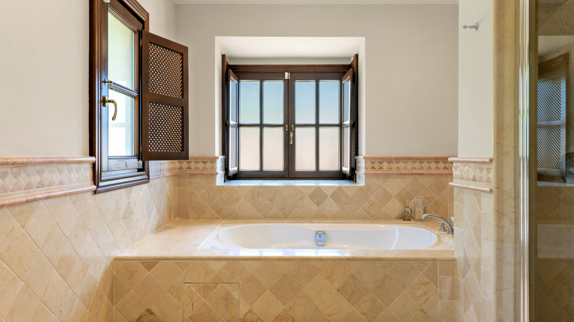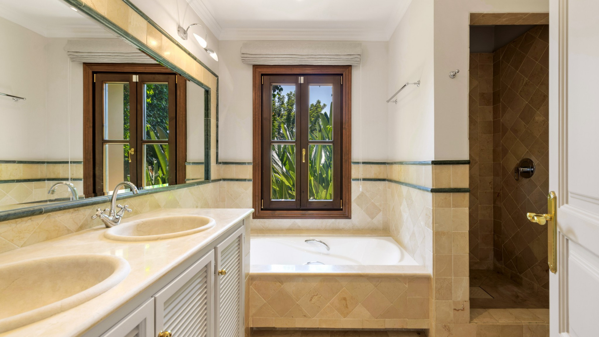 Traditional Andalusian style villa with open mountain views in La Zagaleta golf and country club, ones of Europe’s most exclusive residential complexes. It has 2 gated entrances with 24-hour security, two 18-hole golf courses with club houses, equestrian centre, heliport, racquets club and concierge services for its residents. A former hunting reserve, La Zagaleta spans over 900 hectares maintaining its natural surroundings with golf and sea views. The property is conveniently distributed over two floors plus basement and comprises an entrance hall, a living room with a fireplace leading out to the semi covered terrace with pool and garden views, an adjoining TV room, separate formal dining room with gabled ceilings decorated with wooden beams and a fully fitted kitchen with central island. Two en-suite bedrooms make up this floor, one of them with direct access to the covered terrace and garden. Upper floor is for the exclusive use of master bedroom with a nice dressing area and an spacious bathroom. At the basement there is the staff or guest apartment, this separate space is perfect for accommodating any live-in staff or guests, providing them with their own privacy and convenience. Also, wine cellar, utility room, big storage room, a large multifunctional room (to be converted into cinema room, gymnasium or spa) and spacious garage for 2-3 cars. As we step outside, you’ll be greeted by the enticing poolside area. The shimmering pool is an excellent place to relax and unwind on sunny days, and the gazebo offers the perfect spot for entertaining guests. Whether it’s a casual barbecue or a gathering with friends, the gazebo is equipped with a built-in barbecue, sink and cupboards, making hosting a breeze. The living spaces have been meticulously designed with terracotta floors, giving the home a warm and inviting ambiance. The wooden sliding double glazed windows not only provide excellent insulation but also allow you to enjoy the breathtaking views of the mountains, golf course, and countryside from every corner of the house.