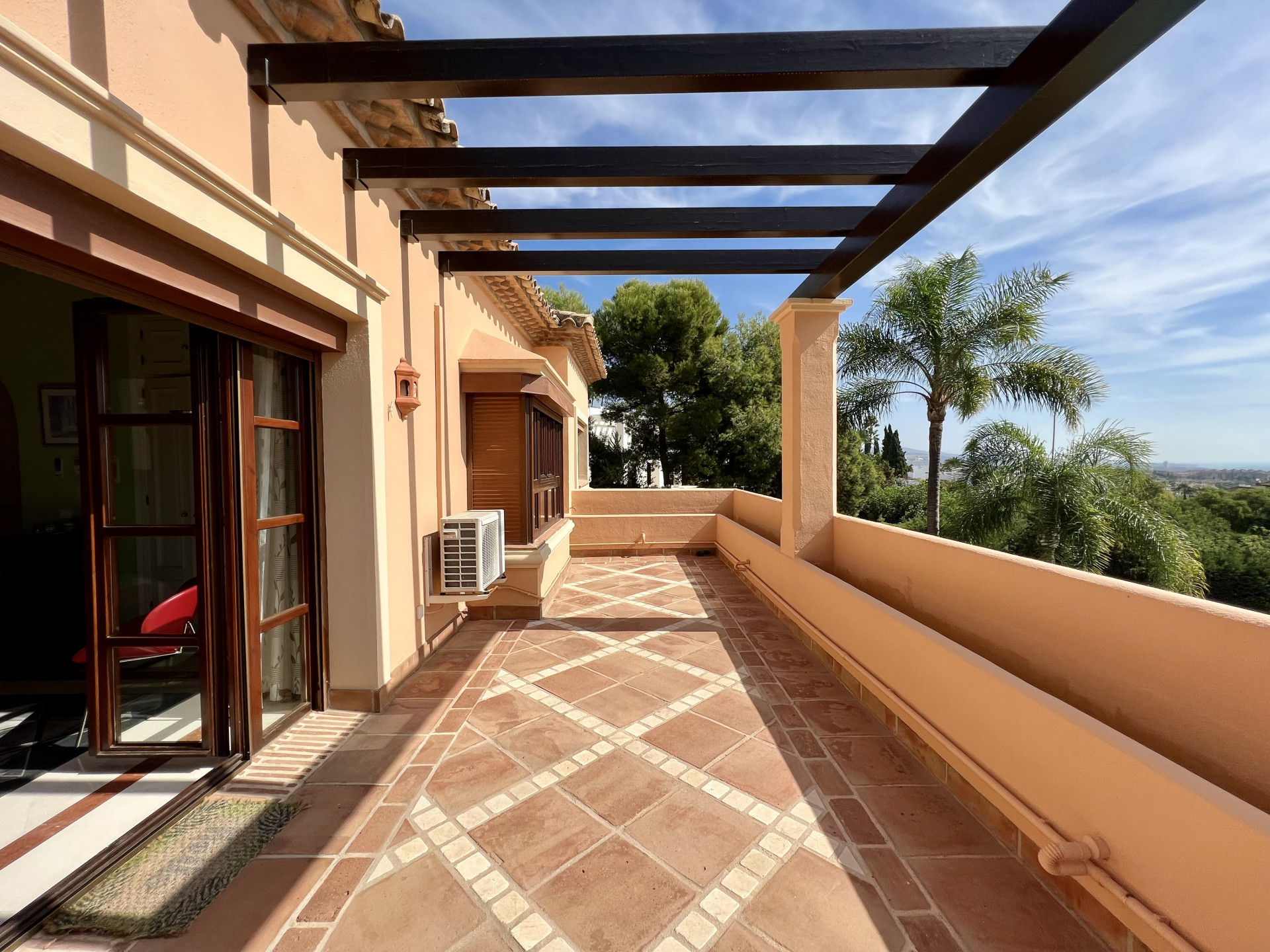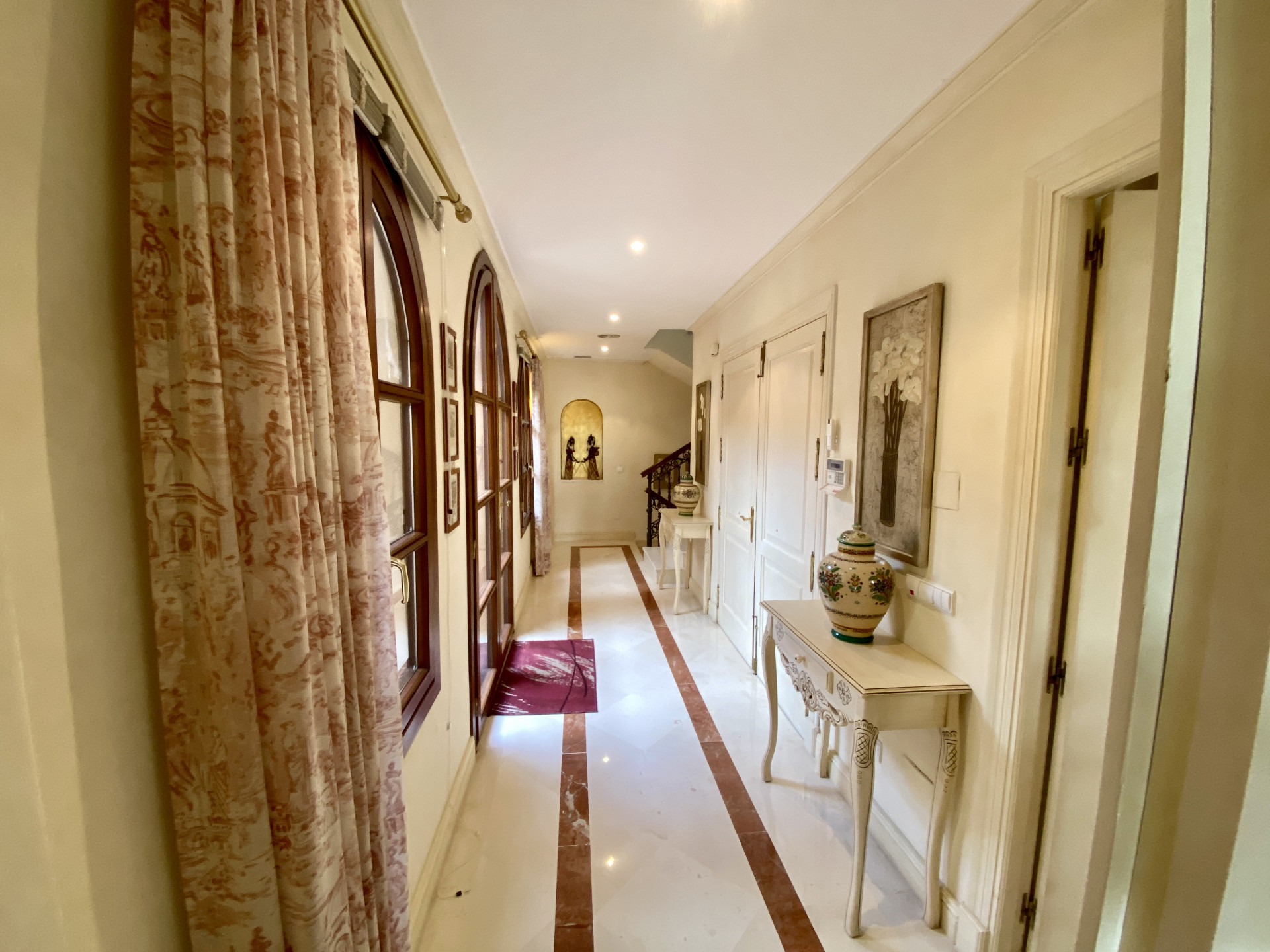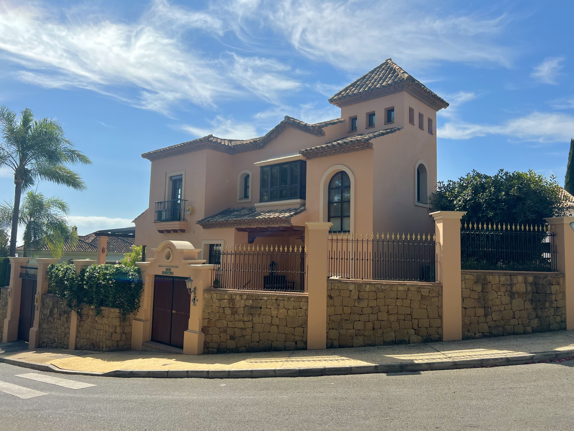 The villa, located in the prestigious Sierra Blanca in Marbella, stands out for its timeless Andalusian architecture. Situated in the Altos Reales B Urbanization, a private complex with 24-hour security, the residence offers luxury and exclusivity. The ground floor features a spacious living room, fully equipped kitchen, and terrace with views of the garden and pool. On the first floor, the master bedroom has access to a private terrace with sea views, accompanied by a luxurious en-suite bathroom. The basement houses parking, a laundry room, and a spa area. Outdoor areas include a well-maintained garden, private pool, barbecue area, and a charming patio. The property, fully enclosed with three entrances, ensures security and privacy. With a blend of Andalusian charm and modern amenities, the villa offers a privileged lifestyle.