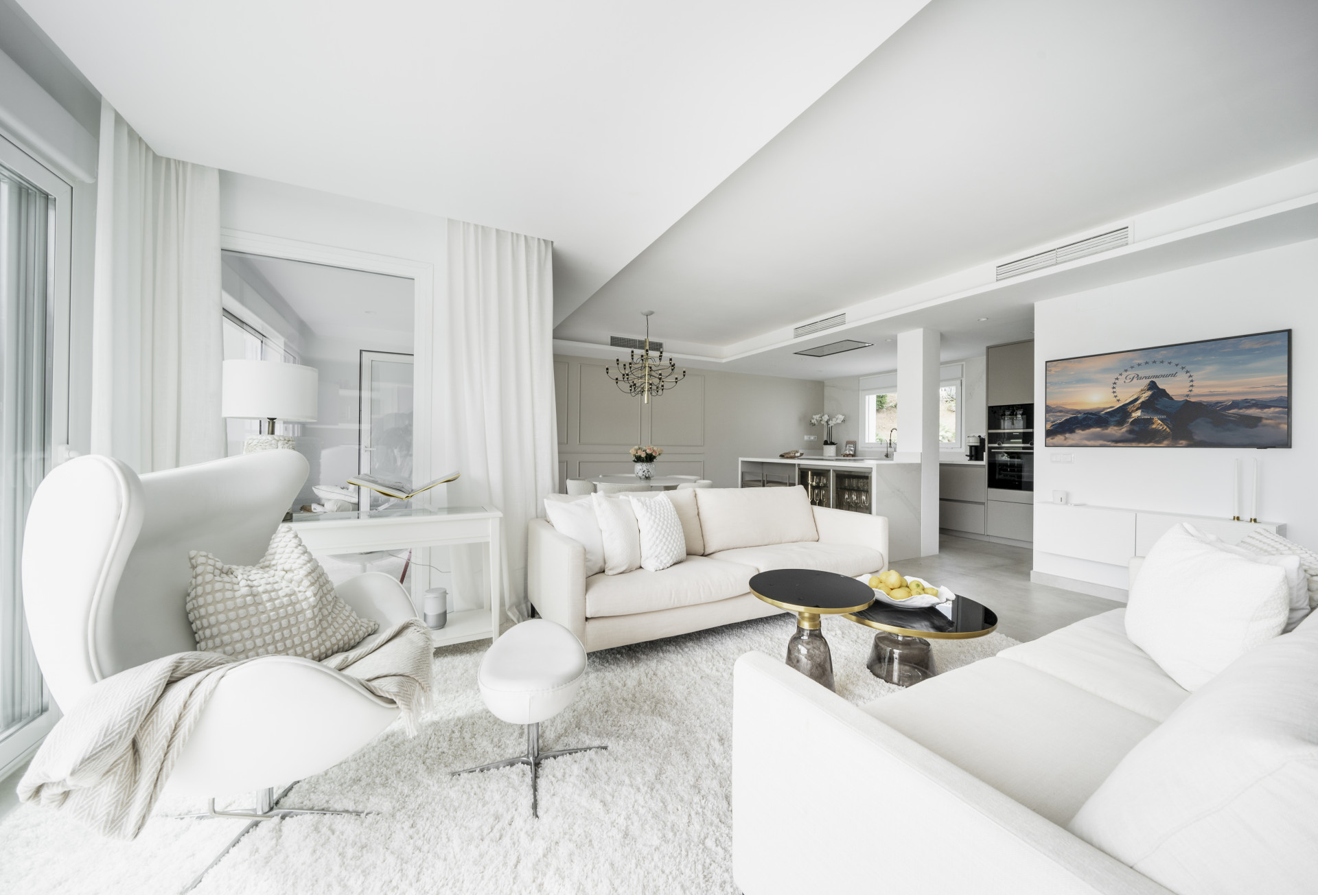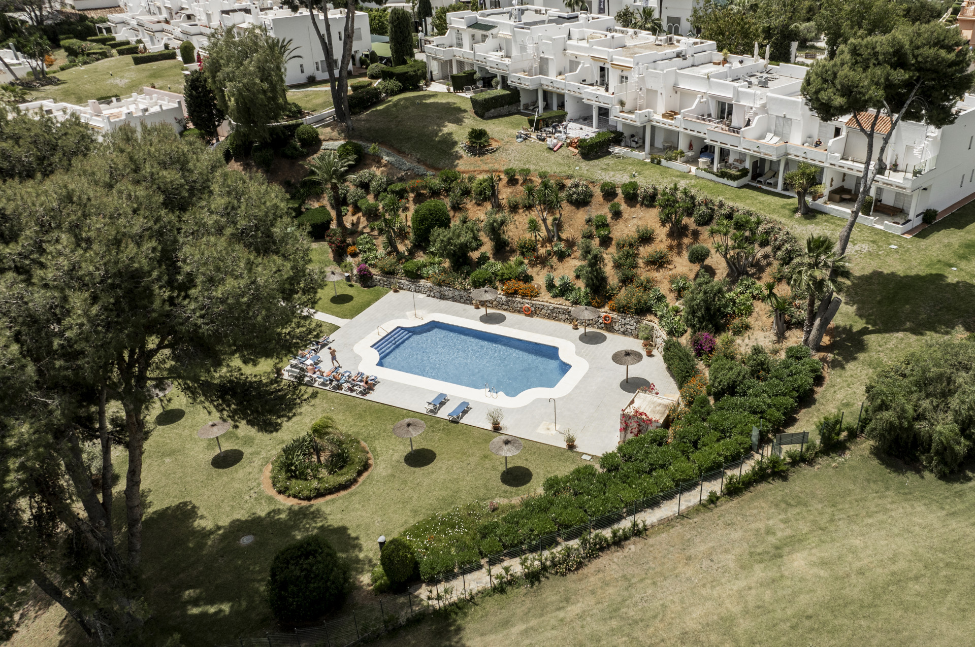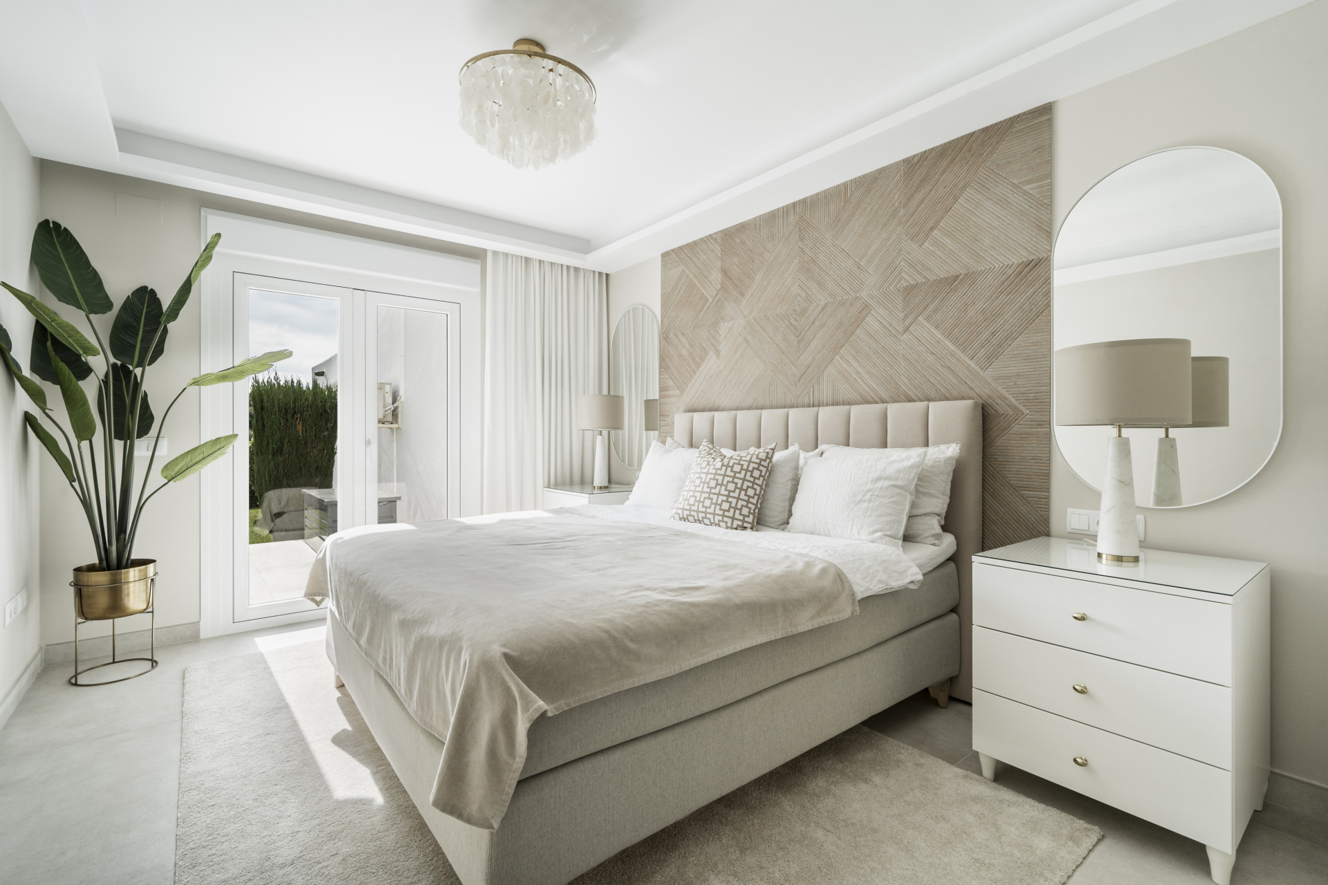 The beauty of simplicity shines through in Azahara II a retreat nestled in the neighborhood of Nueva Andalucía. This haven embodies the essence of Leonardo Da Vincis timeless words. Designed for living it offers space, for both indoor and outdoor enjoyment. Step outside to find a terrace with a covered gallery for hosting unforgettable al fresco barbecues while enjoying views of the golf course. A cozy living area by the lawn beckons relaxation while a sun deck provides the spot for soaking up the Mediterranean sun. The residence boasts lines and large windows that frame captivating views of Nueva Andalucía showcasing La Concha and Aloha Golfs frontlines. Neutral. Premium materials like marble and wood exude luxury throughout the home. The open layout seamlessly integrates the kitchen with a living and dining area. With 3 bedrooms, 3 bathrooms and an exclusive guest house featuring its kitchen, living space and bathroom Azahara II is ideal for gatherings or private getaways. The communal pool against a backdrop of mountains offers a setting, for relaxation.