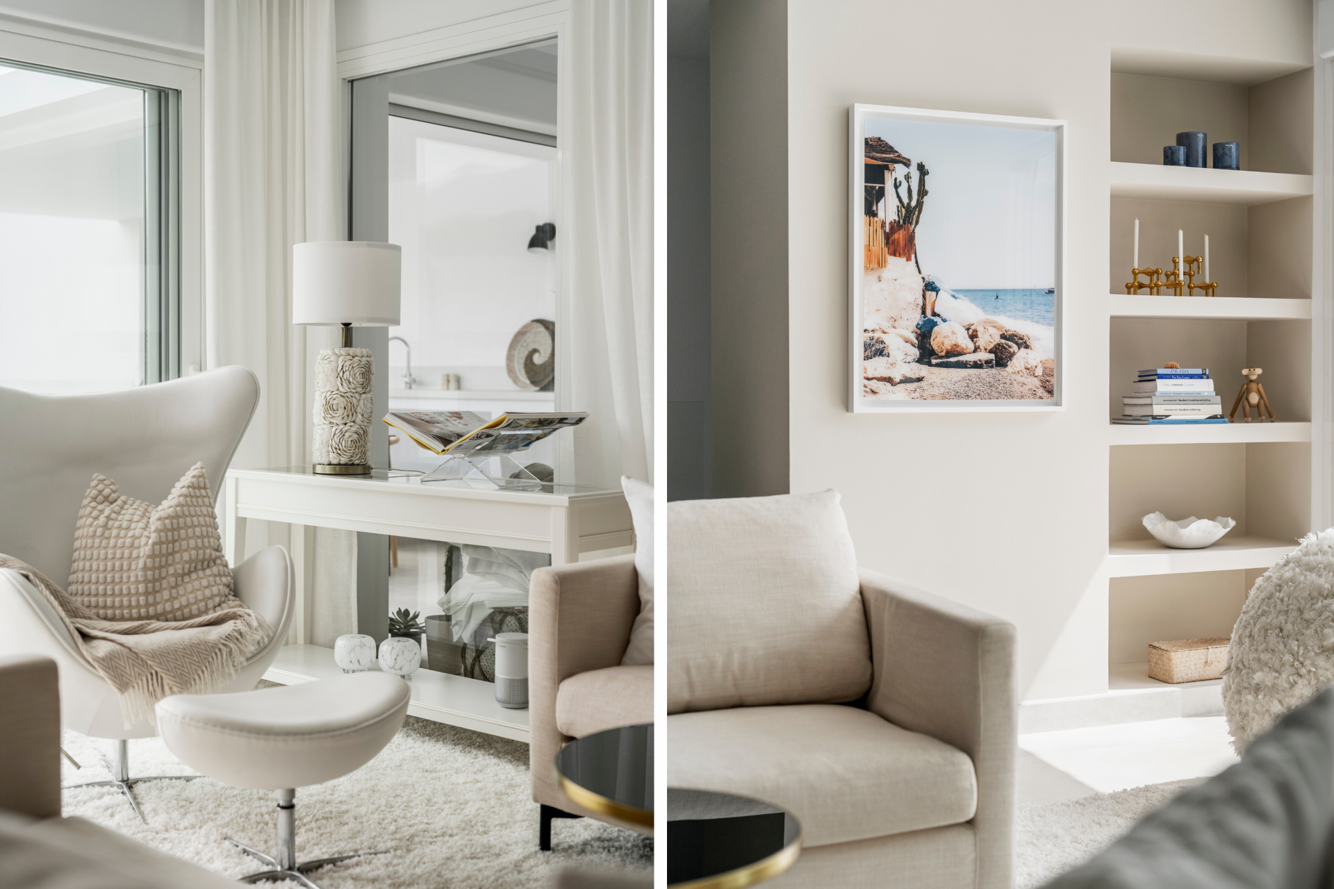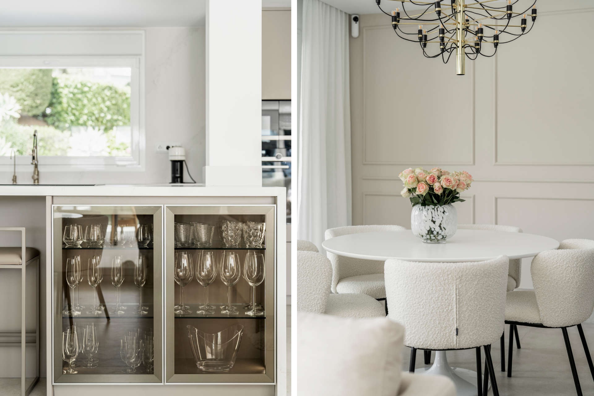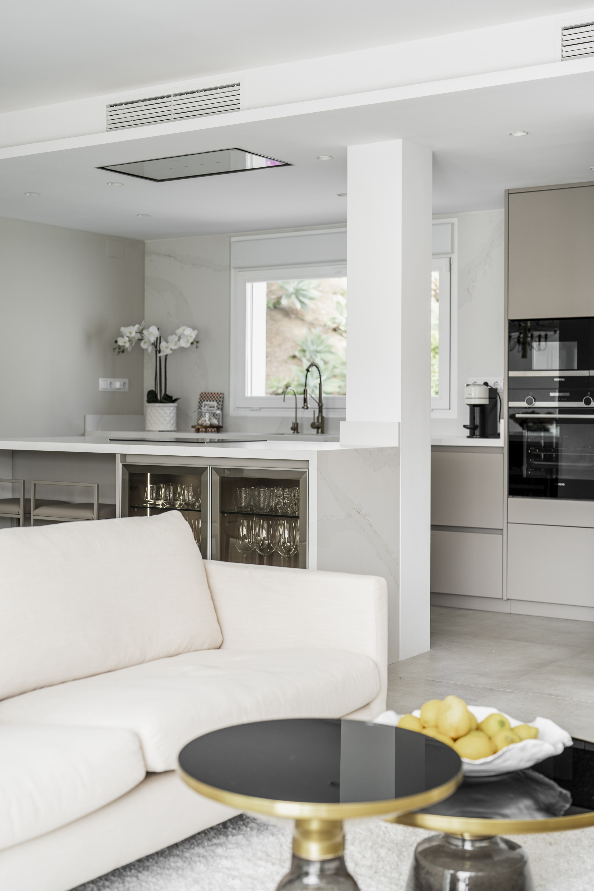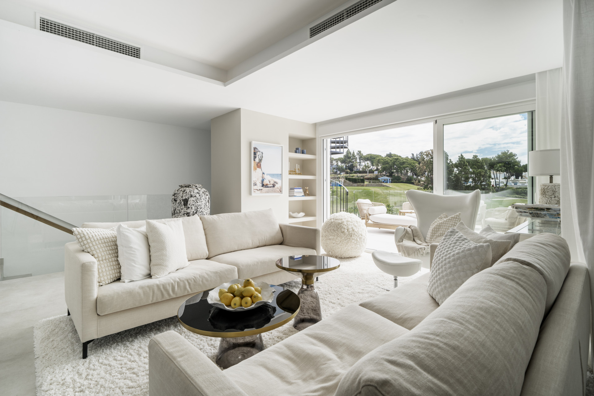 The beauty of simplicity shines through in Azahara II a retreat nestled in the neighborhood of Nueva Andalucía. This haven embodies the essence of Leonardo Da Vincis timeless words. Designed for living it offers space, for both indoor and outdoor enjoyment. Step outside to find a terrace with a covered gallery for hosting unforgettable al fresco barbecues while enjoying views of the golf course. A cozy living area by the lawn beckons relaxation while a sun deck provides the spot for soaking up the Mediterranean sun. The residence boasts lines and large windows that frame captivating views of Nueva Andalucía showcasing La Concha and Aloha Golfs frontlines. Neutral. Premium materials like marble and wood exude luxury throughout the home. The open layout seamlessly integrates the kitchen with a living and dining area. With 3 bedrooms, 3 bathrooms and an exclusive guest house featuring its kitchen, living space and bathroom Azahara II is ideal for gatherings or private getaways. The communal pool against a backdrop of mountains offers a setting, for relaxation.