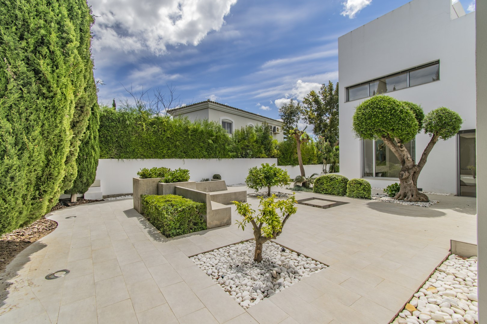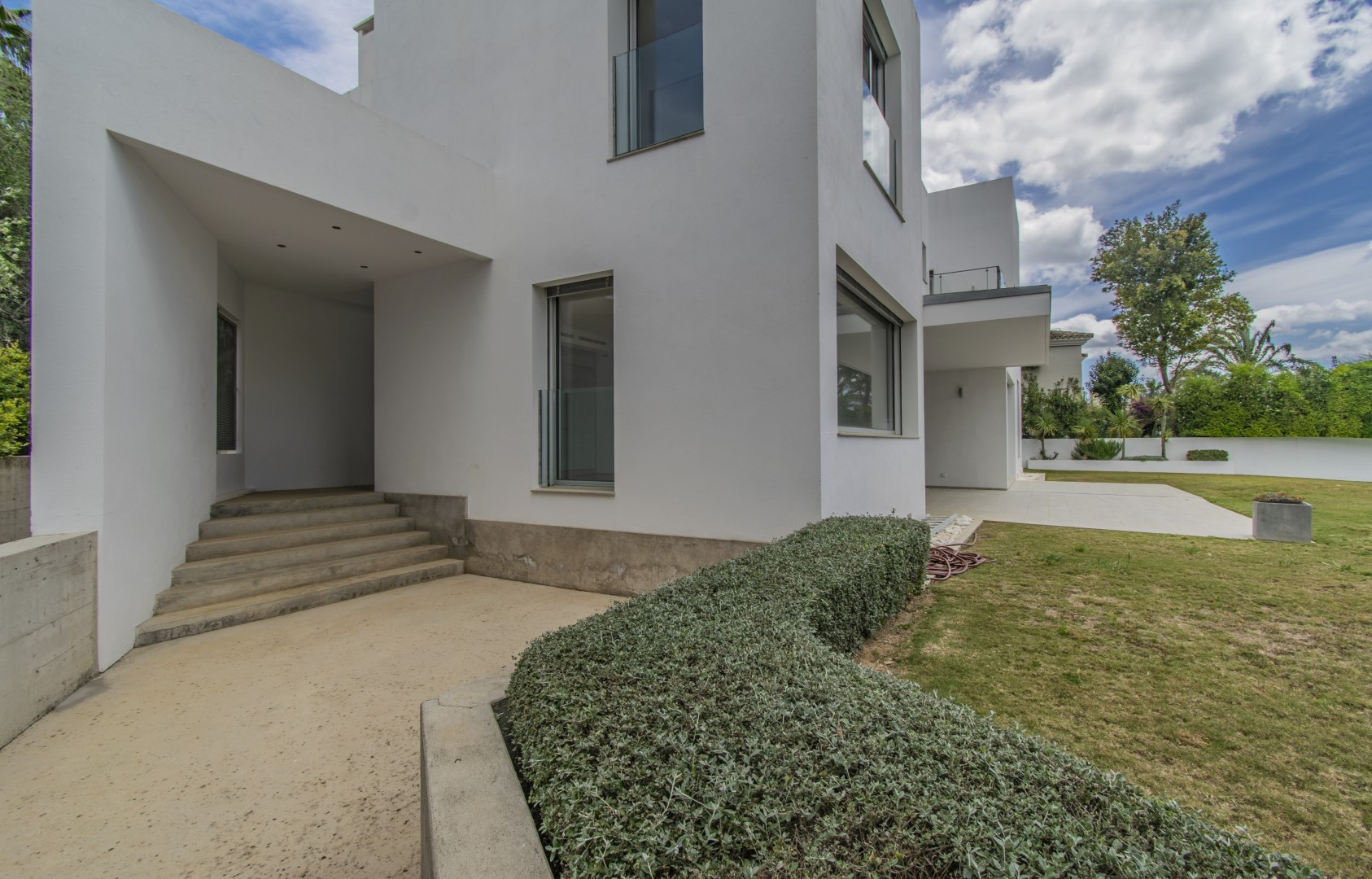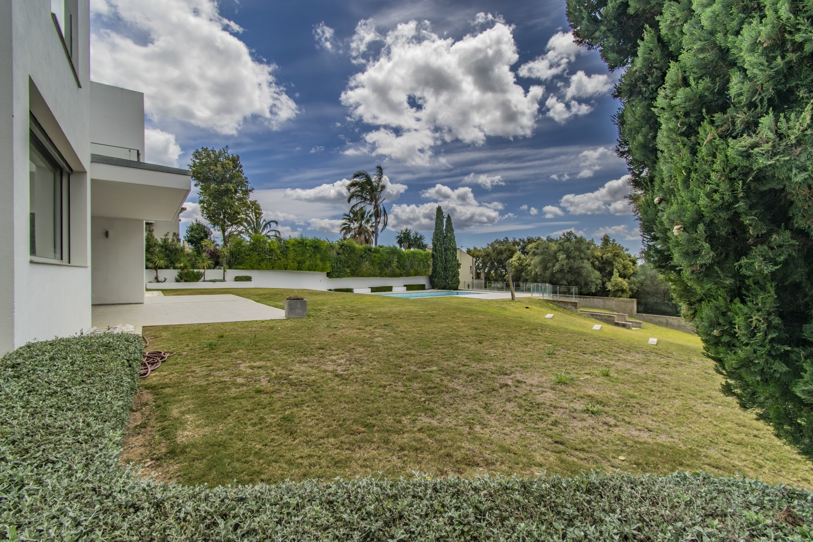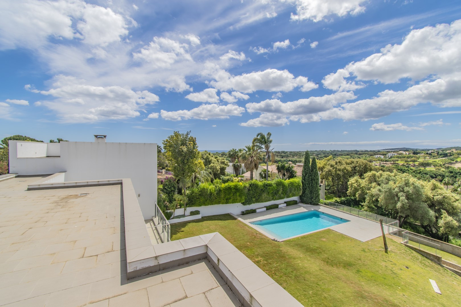 Elegant contemporary style villa, located in the exclusive area of Sotogrande, in a quiet area next to the golf courses just a few minutes drive from the port, the beach and all services.