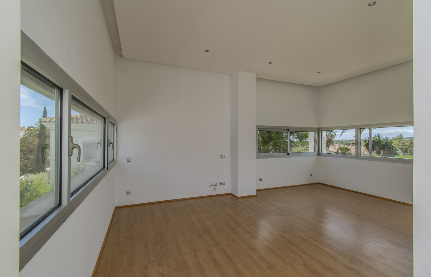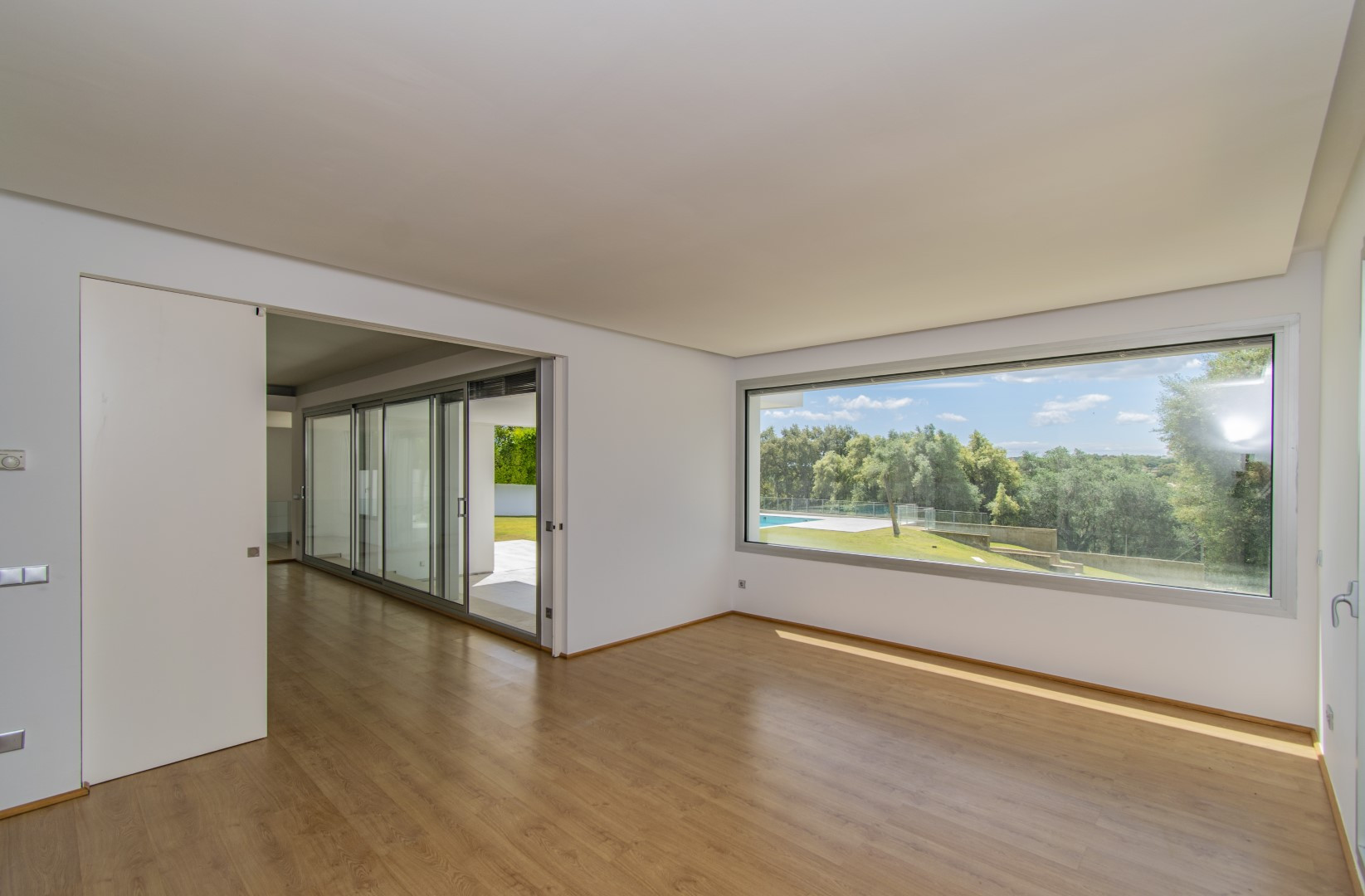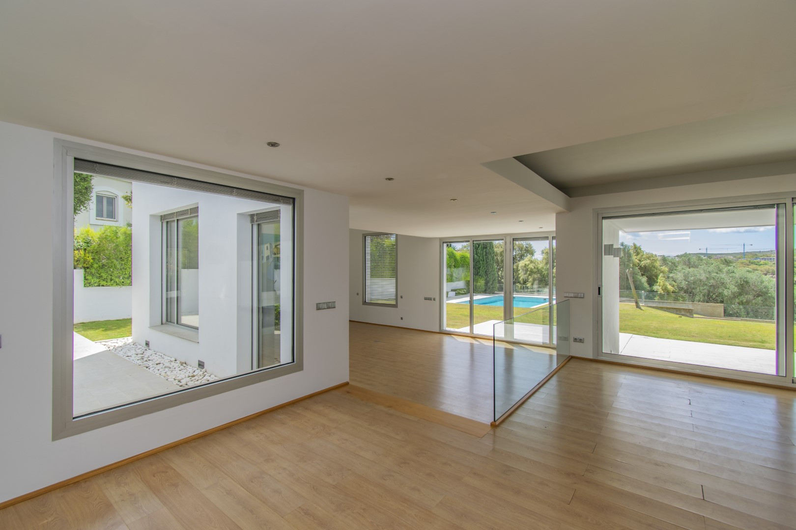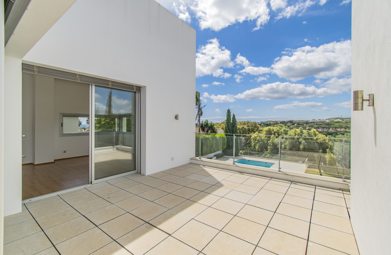 Elegant contemporary style villa, located in the exclusive area of Sotogrande, in a quiet area next to the golf courses just a few minutes drive from the port, the beach and all services.
