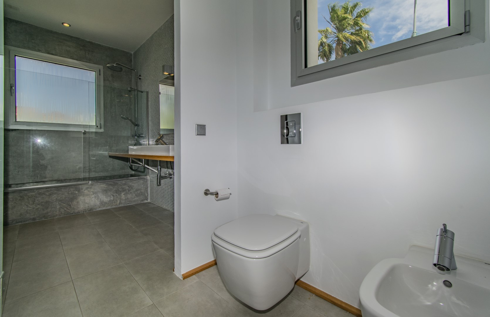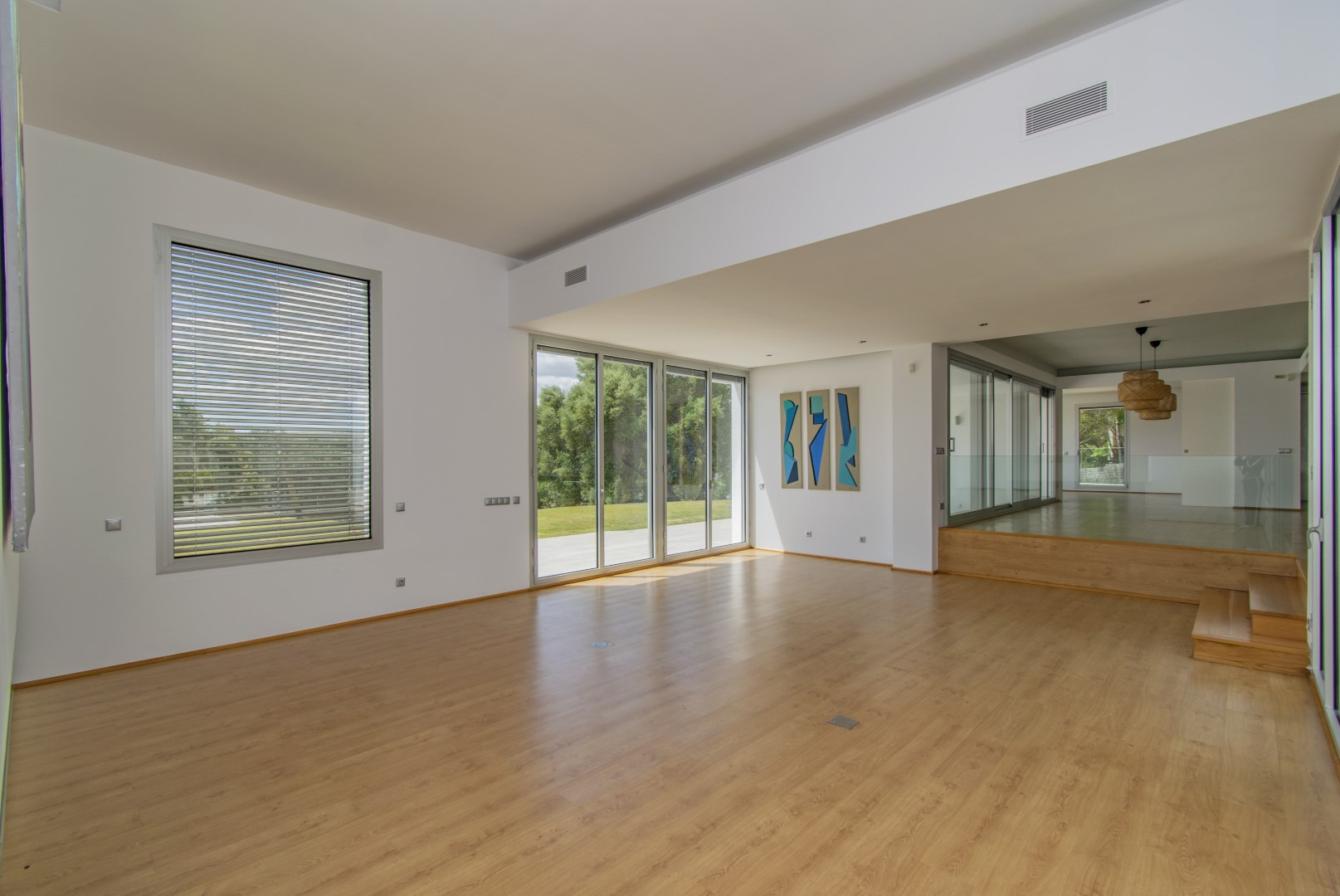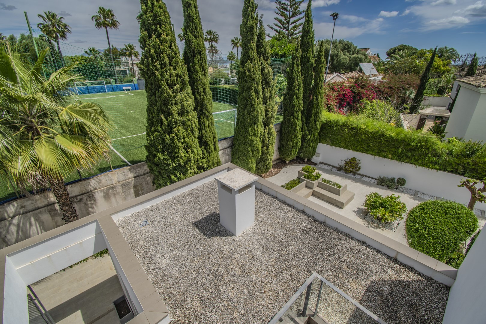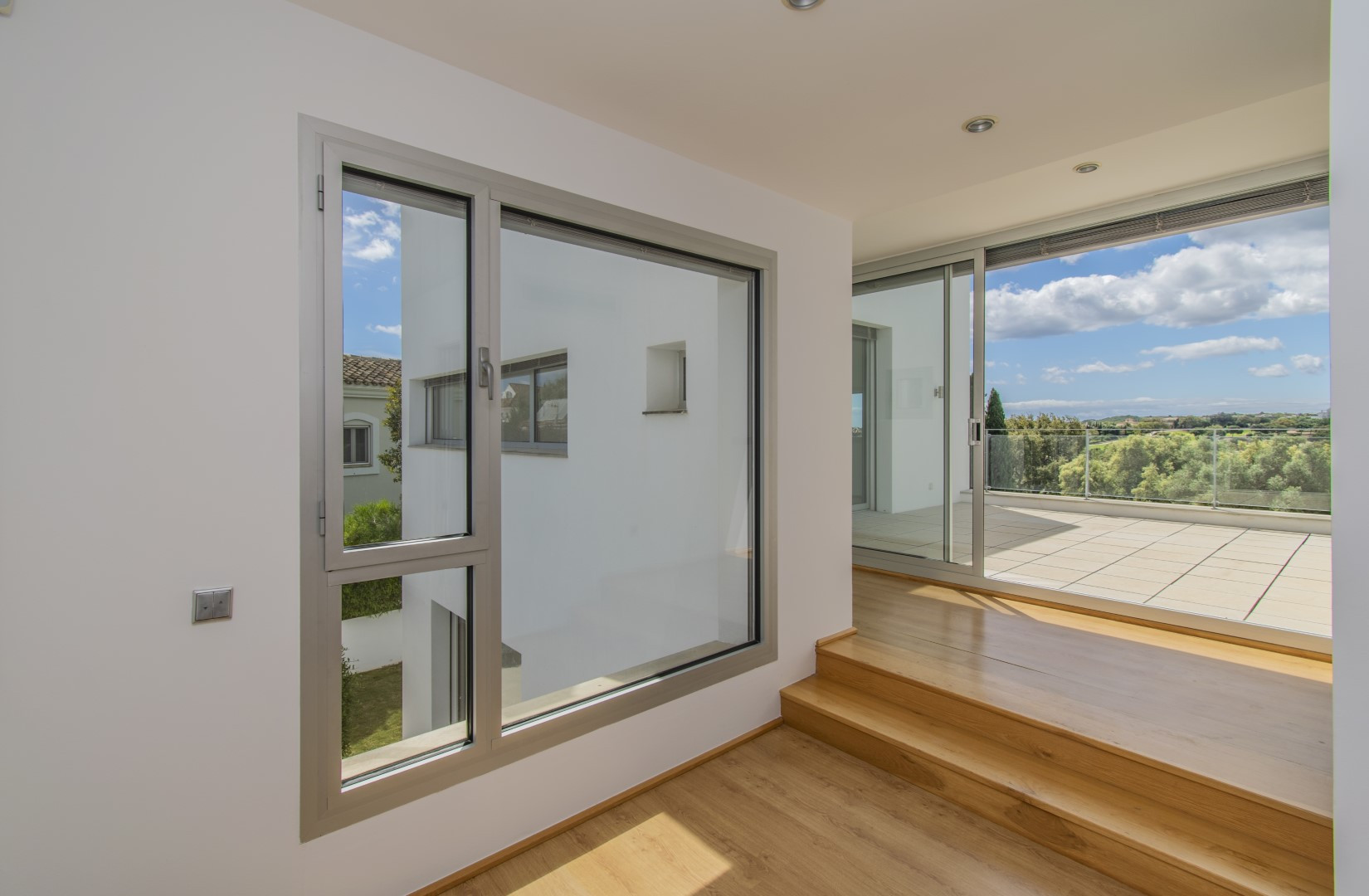 Elegant contemporary style villa, located in the exclusive area of Sotogrande, in a quiet area next to the golf courses just a few minutes drive from the port, the beach and all services.