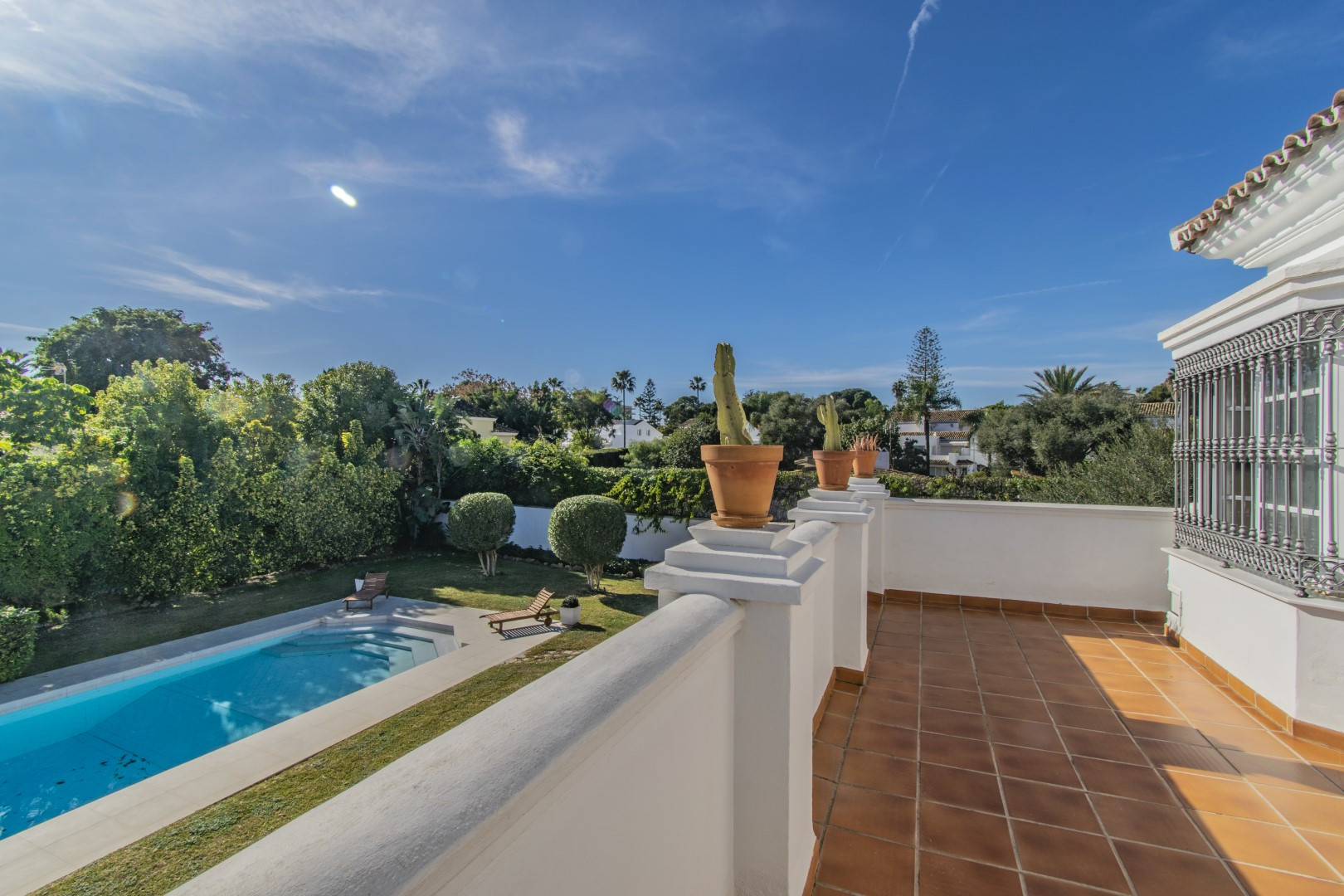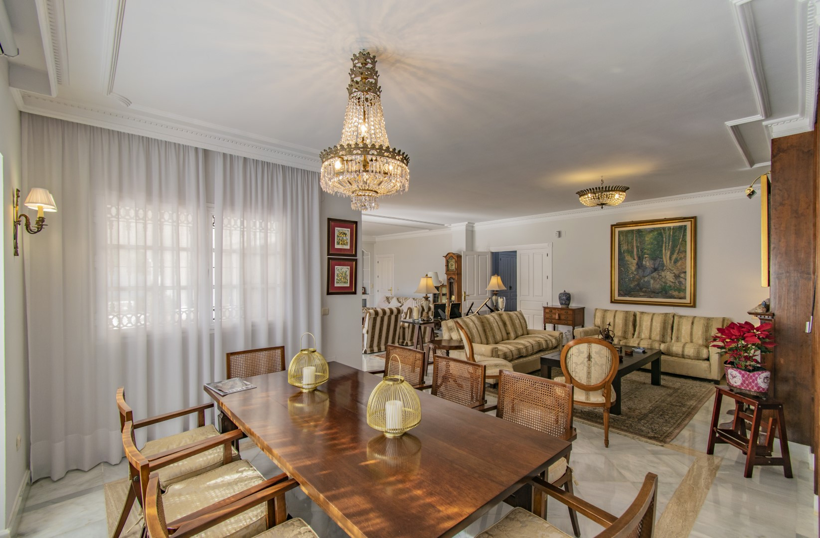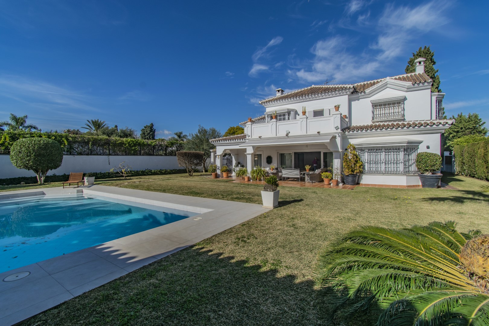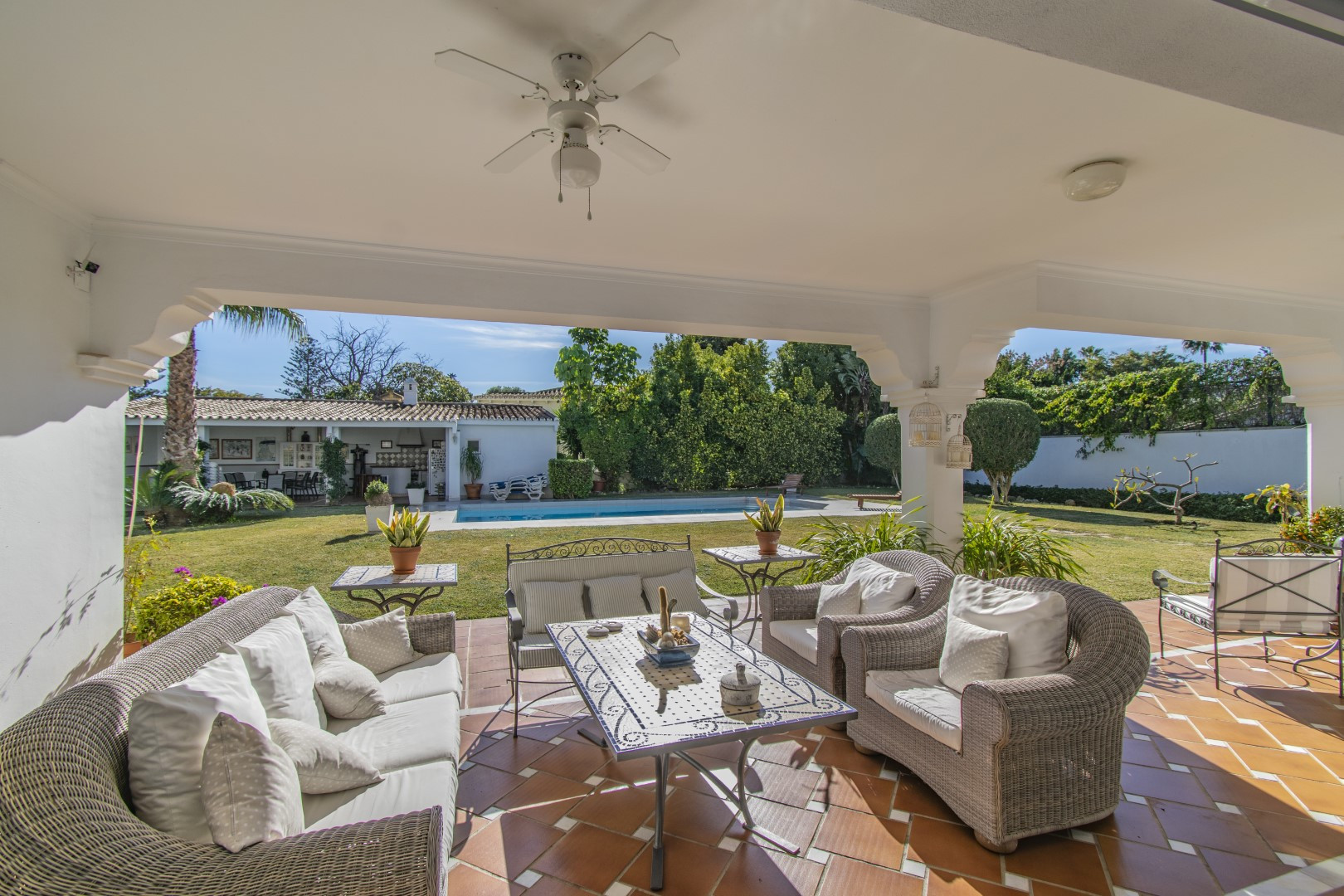 Fantastic villa, with an elegant Mediterranean style, located in the Guadalmina Baja area, less than 1km from the beach, very close to all kinds of services such as schools, restaurants, sports centers, pharmacies