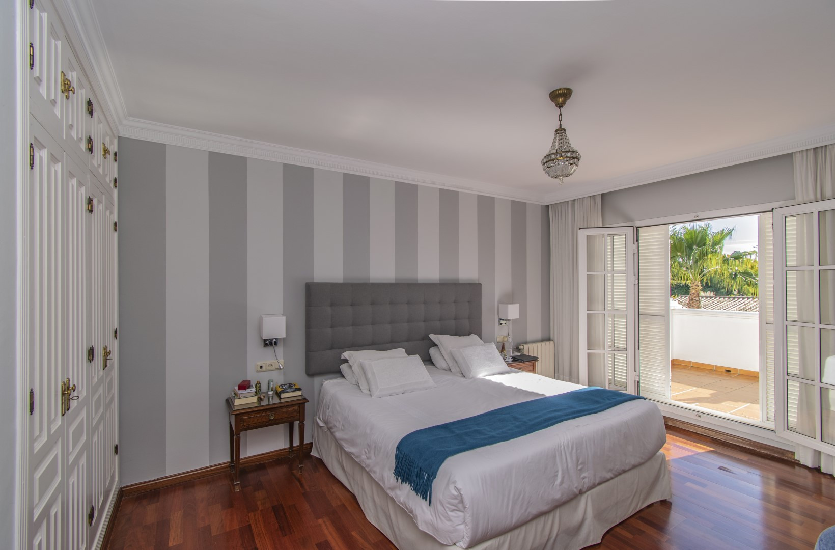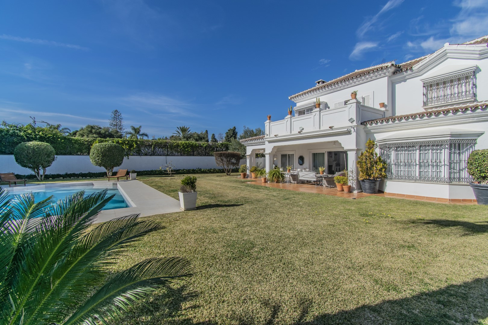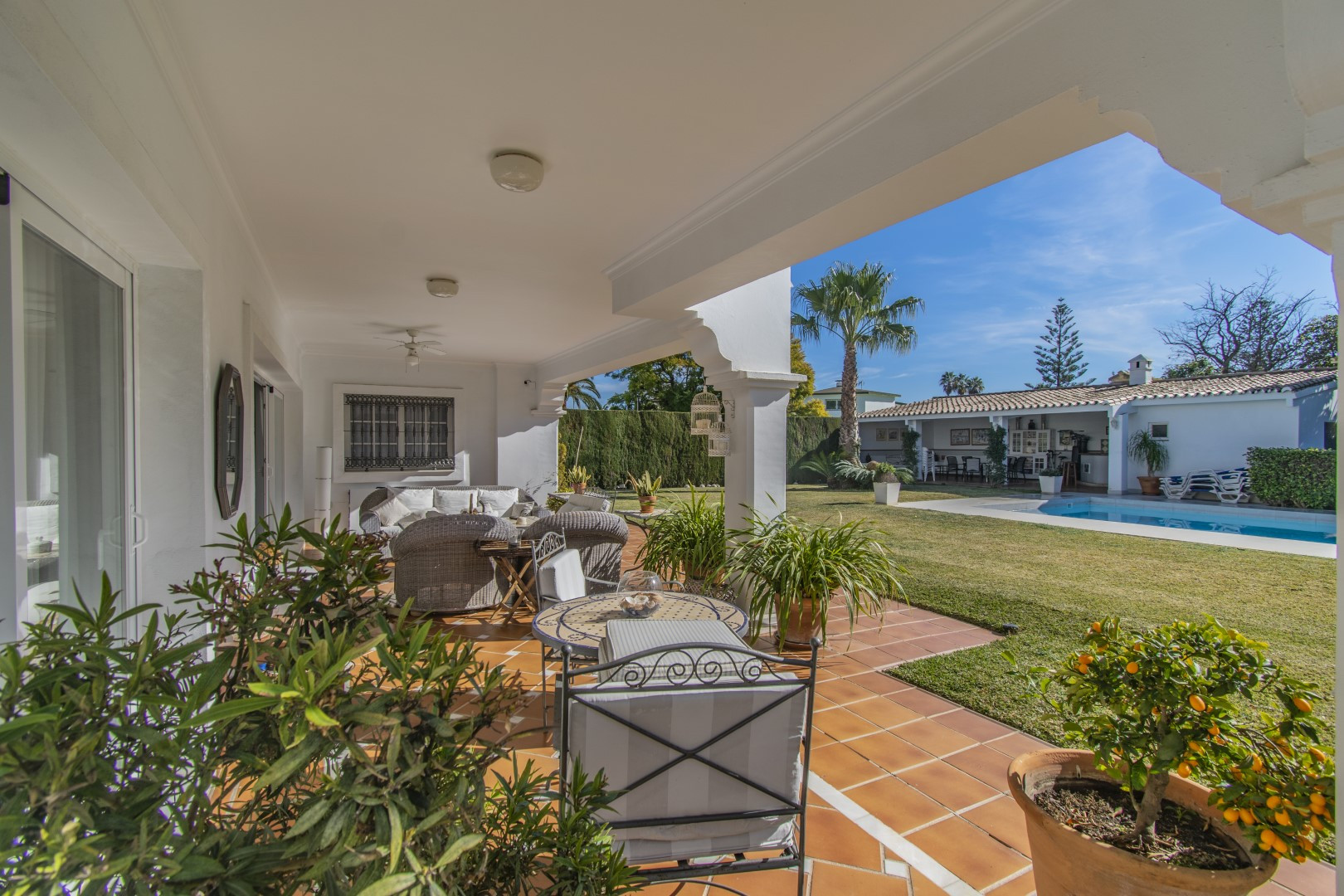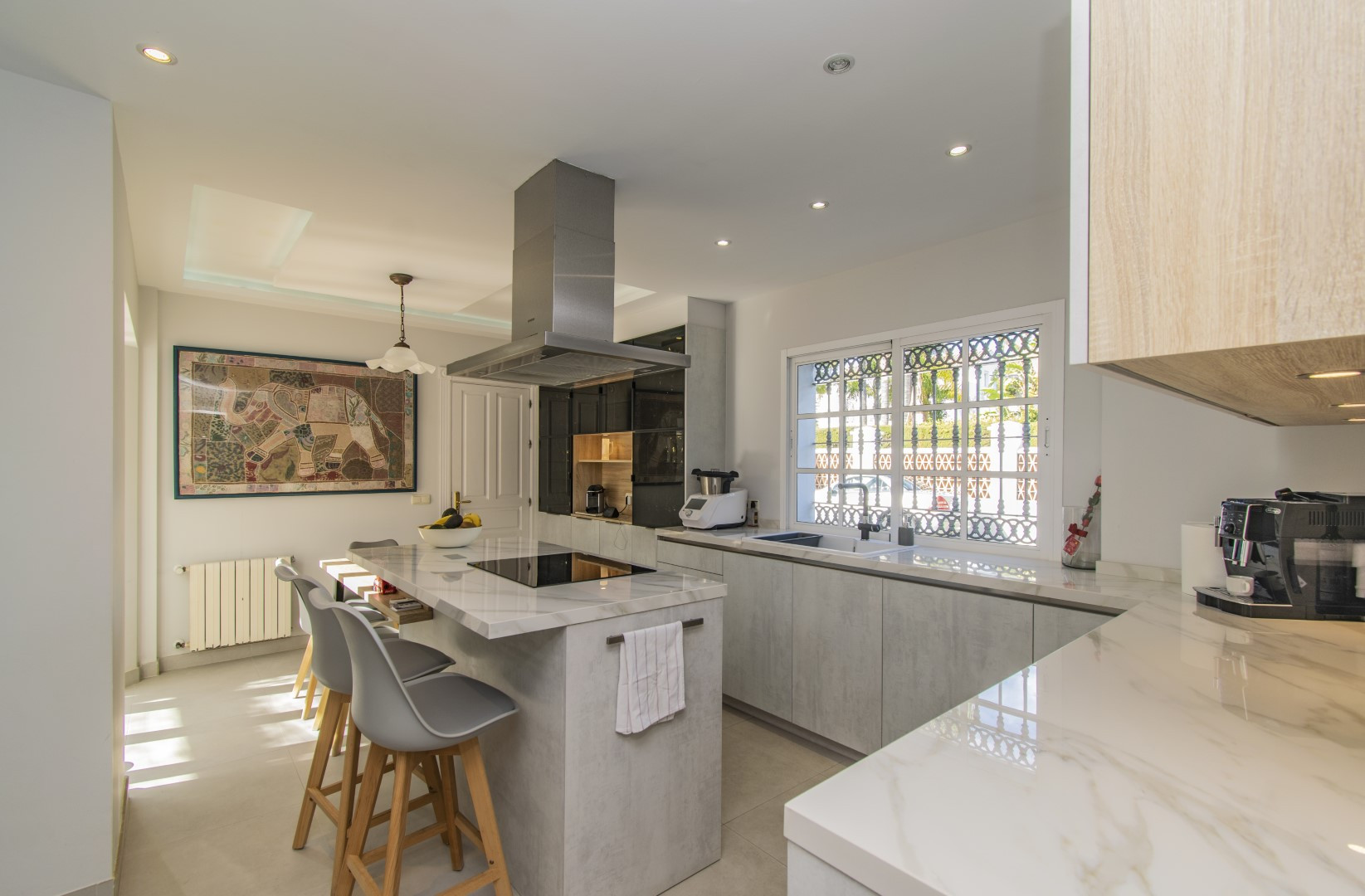Fantastic villa, with an elegant Mediterranean style, located in the Guadalmina Baja area, less than 1km from the beach, very close to all kinds of services such as schools, restaurants, sports centers, pharmacies