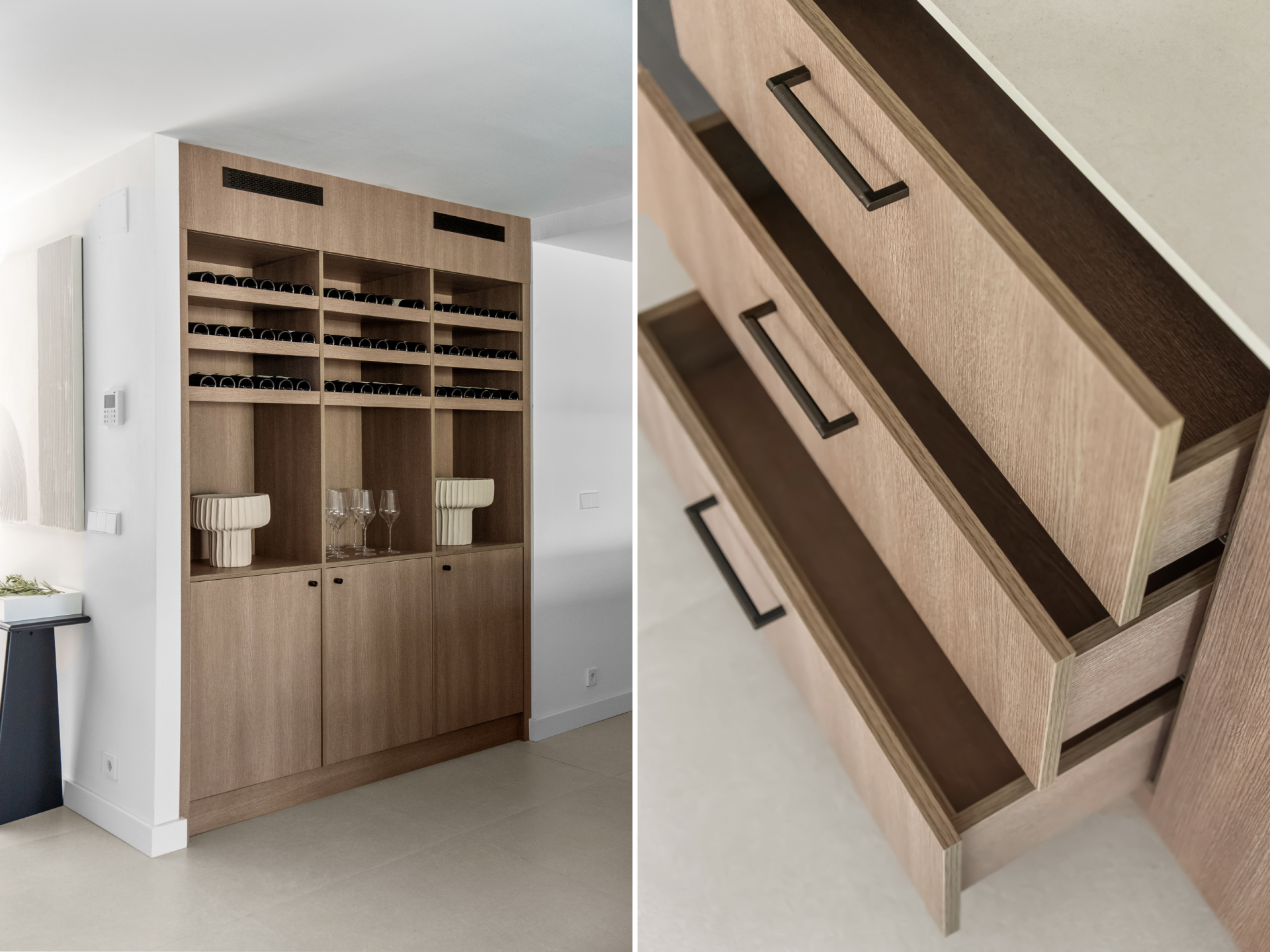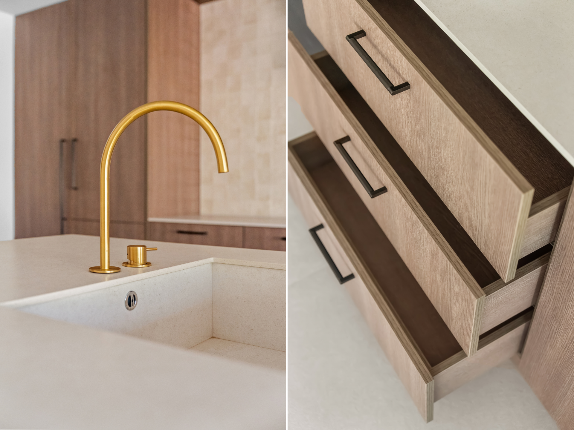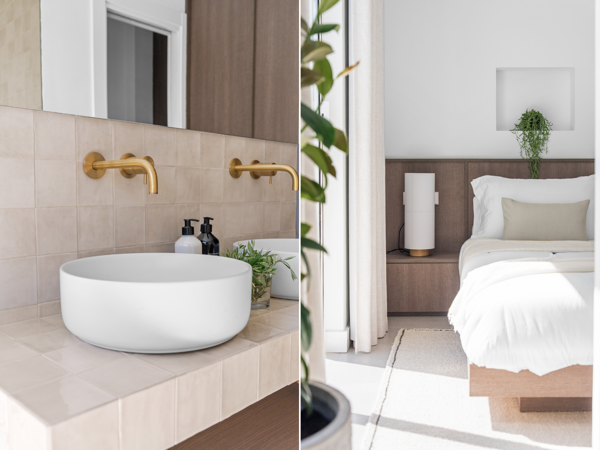 Step inside and feel the elegant harmony of earthy tones, matte black accents, and rich smoked oak wood. The sophisticated design is elevated by gold touches and unique zellige tiles, creating a refined, one-of-a-kind feel.