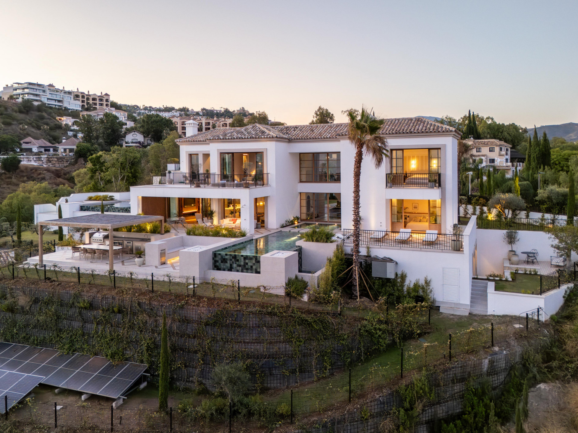 Nestled within the prestigious double-gated community of The Hills in La Quinta, Benahavís, Villa Cina offers an unparalleled blend of luxury and natural beauty. This exceptional five-bedroom residence is set against the stunning backdrop of the Andalusian mountains, providing both complete privacy and panoramic views of the sea and protected landscapes.