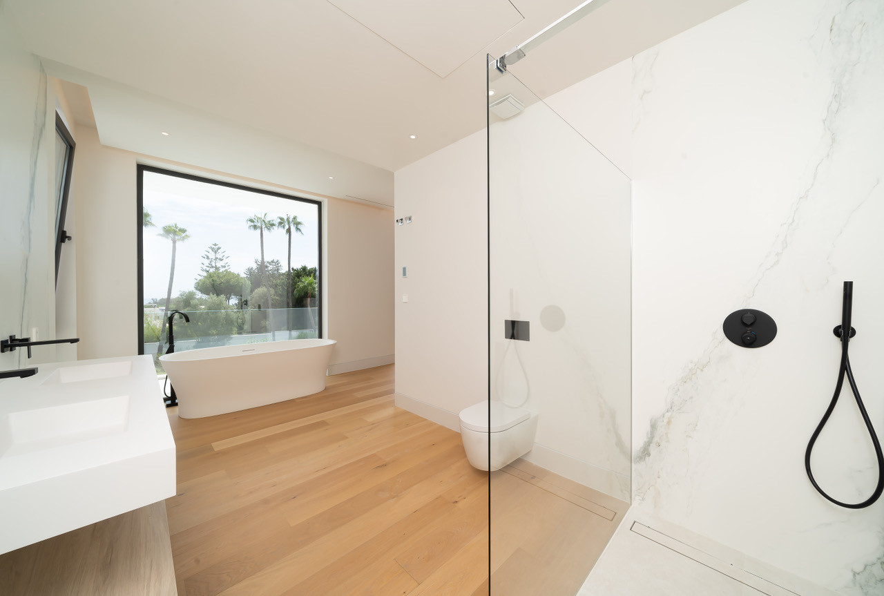 Présentant cette belle villa de style contemporain située à côté du Golf Club El Paraiso, dans un quartier résidentiel confortable et calme, avec orientation sud et construite sur un grand terrain plat de 2 100 m2. Villa Miura est proche de toutes sortes de services et commodités, à distance de marche. Le terrain de golf et les plages sont à courte distance. Villa Miura définit des finitions de luxe telles que le chauffage au sol, l’aerothermie, le système domotique et les jardins paysagers avec une superbe zone de détente avec une cheminée centrale à côté de la grande piscine. En entrant dans la villa Miura, vous verrez instantanément la grandeur des hauts plafonds et un grand plan ouvert salon/salle à manger et cuisine tout en menant sur les grands sols pour manger al fresco. Sur le niveau principal, il y a 3 chambres et 2 bains plus une toilette invitée. Au premier étage, vous rencontrerez l’immense chambre principale avec une belle salle de bain ouverte, un dressing très spécieux et une terrasse privée. Le sous-sol de 96 m2 comprend un parking privé pour 2 voitures et un grand espace qui peut être transformé en de nombreuses chambres pour divertir / salle de réunion / salle de jeux, cave à vin etc. Villa Miura a tellement à offrir pour ceux qui aiment être près de jamais, mais en même temps ont une totale intimité dans un quartier calme. Récemment ouvert est un nouveau club de tennis et paddle… c’est la maison familiale parfaite sur la Costa del Sol !