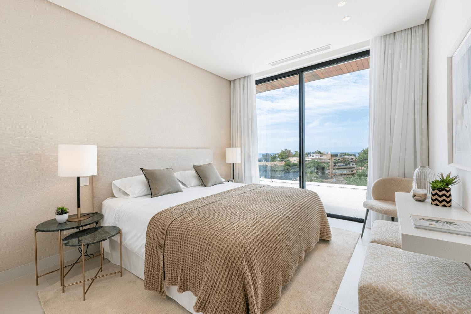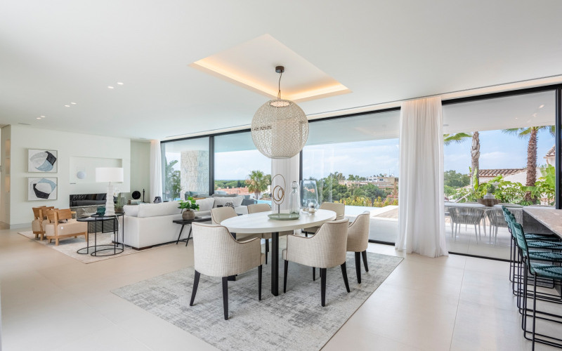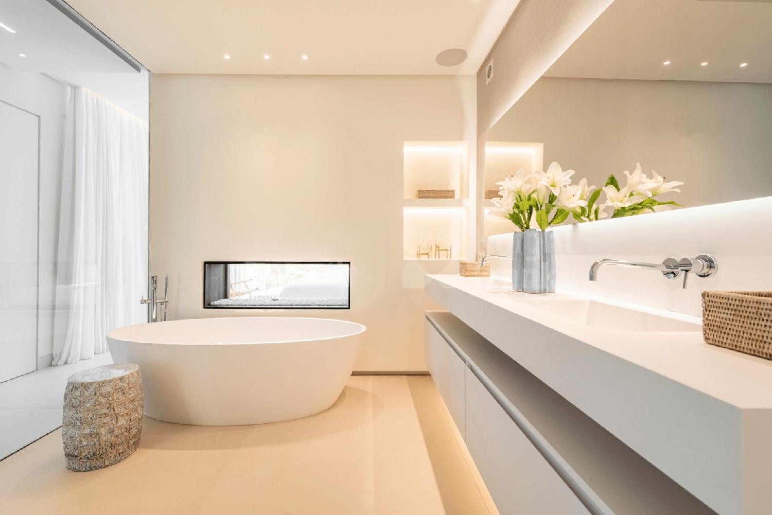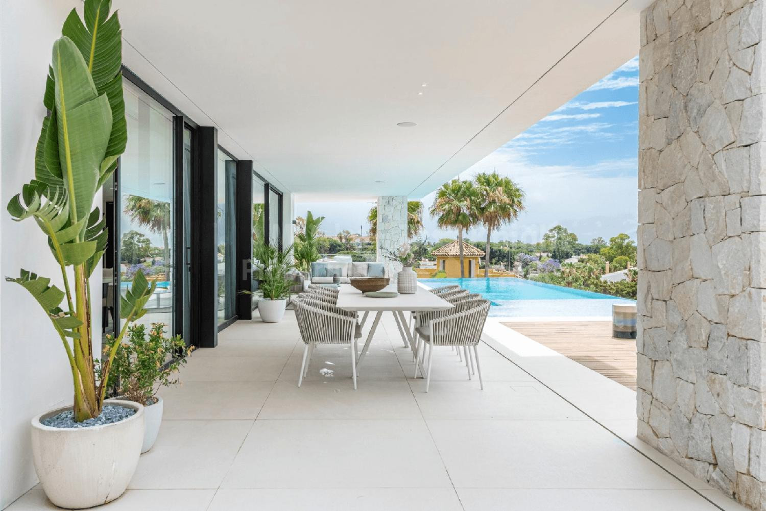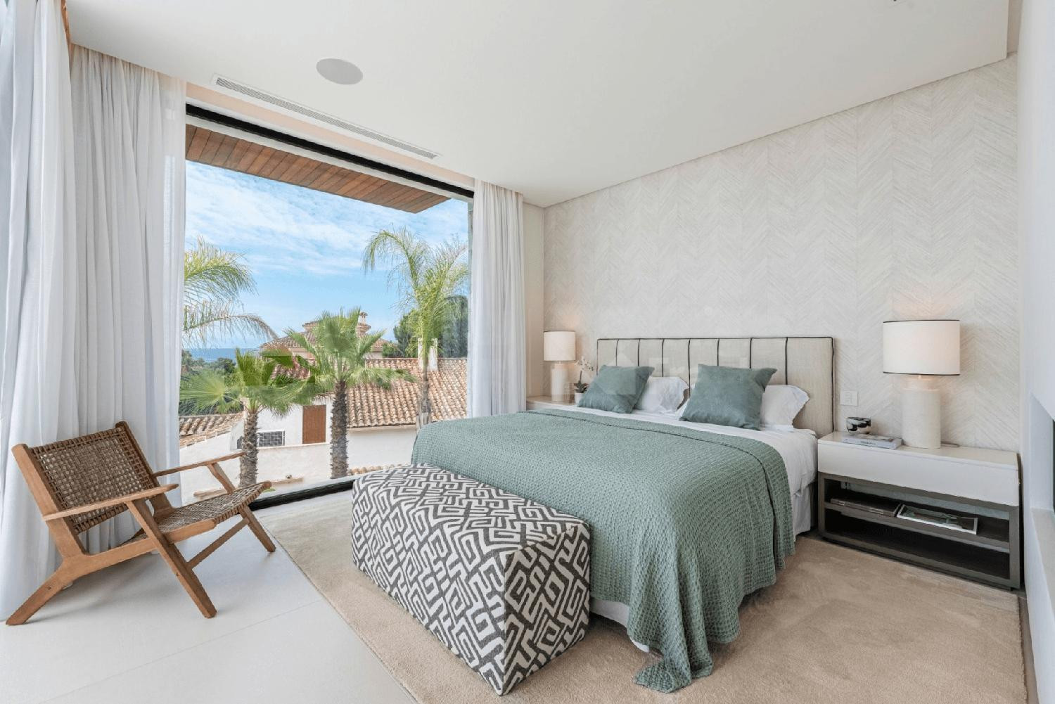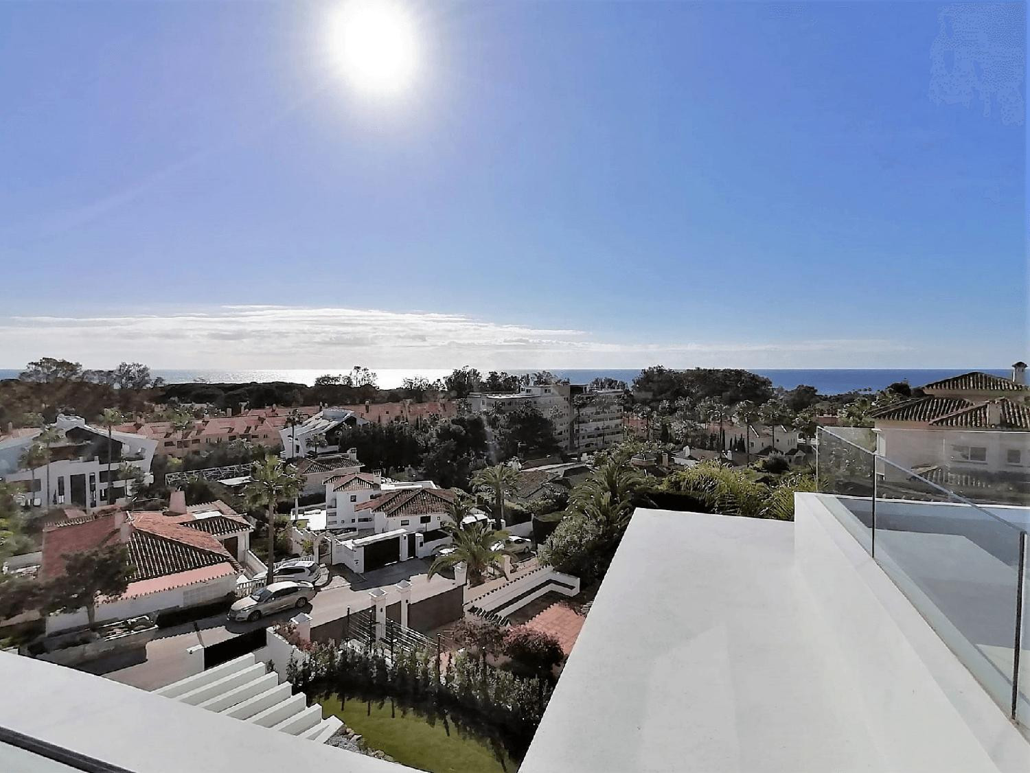 Conçue par l’architecte Carlos Lamas, cette villa dispose d’espaces de vie confortables répartis sur quatre niveaux, dont un sous-sol et une terrasse sur le toit. Le niveau principal comprend une salle de bain pour les invités, un espace combiné salon/salle à manger avec une cuisine ouverte équipée d’appareils Gaggenau haut de gamme et d’un îlot central. Le salon donne sur une terrasse couverte avec une piscine qui permet de prendre des bains de soleil, de manger en plein air et de se réunir. L’étage abrite trois chambres à coucher, chacune ayant accès à un balcon offrant une vue captivante sur la mer.