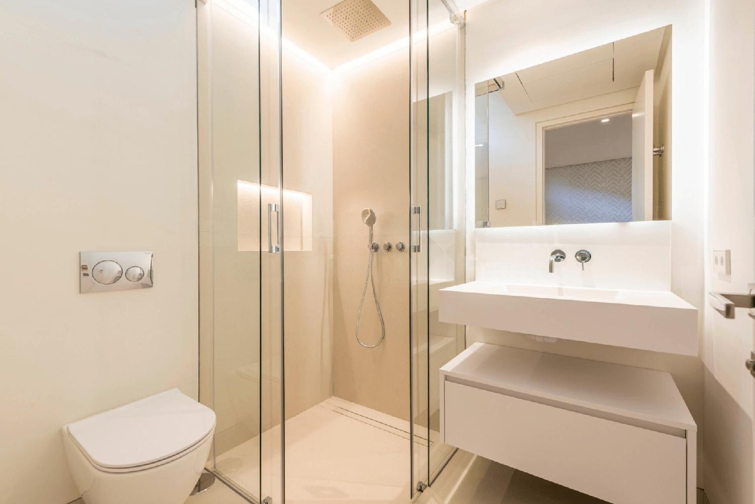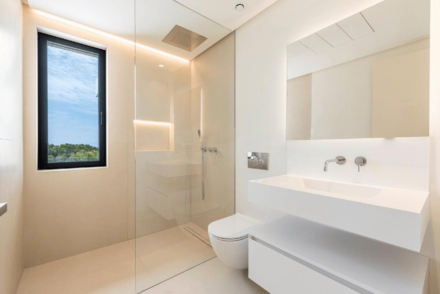 La chambre principale dispose d’une cheminée, d’une baignoire et d’une douche. Le sous-sol comprend deux chambres, un salon avec bar, une buanderie et des toilettes pour les invités. Le solarium offre des vues sur la mer, une grande pièce, pour une personnalisation future afin de répondre aux besoins de l’acheteur. En outre, la maison comprend une cage d’ascenseur qui va du sous-sol à l’étage.