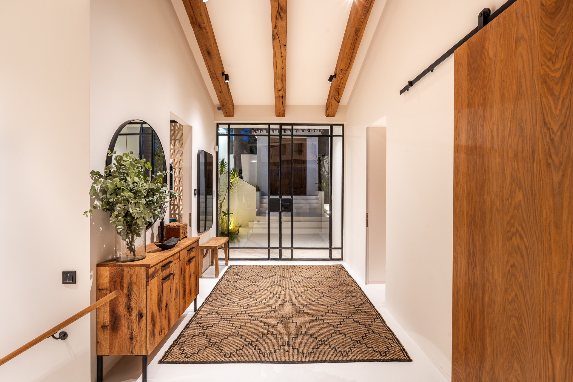 Cette superbe villa de golf, située à Nueva Andalucía, offre des vues sur les montagnes et un environnement verdoyant qui captivent le regard dans tous les coins de la maison. Les fenêtres se fondent parfaitement dans les murs pour fusionner les espaces intérieurs et extérieurs et offrir une expérience de vie harmonieuse, immergée dans la beauté de la nature. Les principaux éléments extérieurs comprennent une piscine à débordement idéale pour faire trempette et une terrasse solarium en bois qui s’étend jusqu’à la terrasse pour des moments de détente au soleil. Une vaste pergola dotée d’une cuisine et d’un barbecue ajoute au charme de l’espace. En outre, un jacuzzi permet de se détendre sous le ciel nocturne. Un salon secondaire se connecte parfaitement au jardin, offrant un lieu de retraite au milieu de la nature.