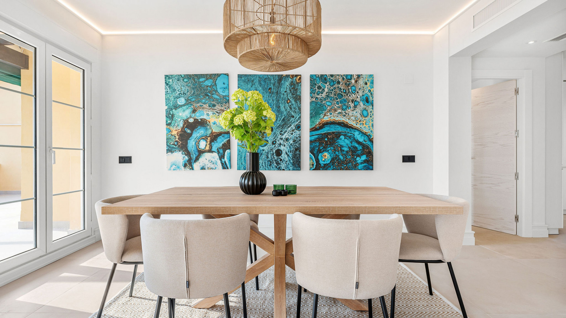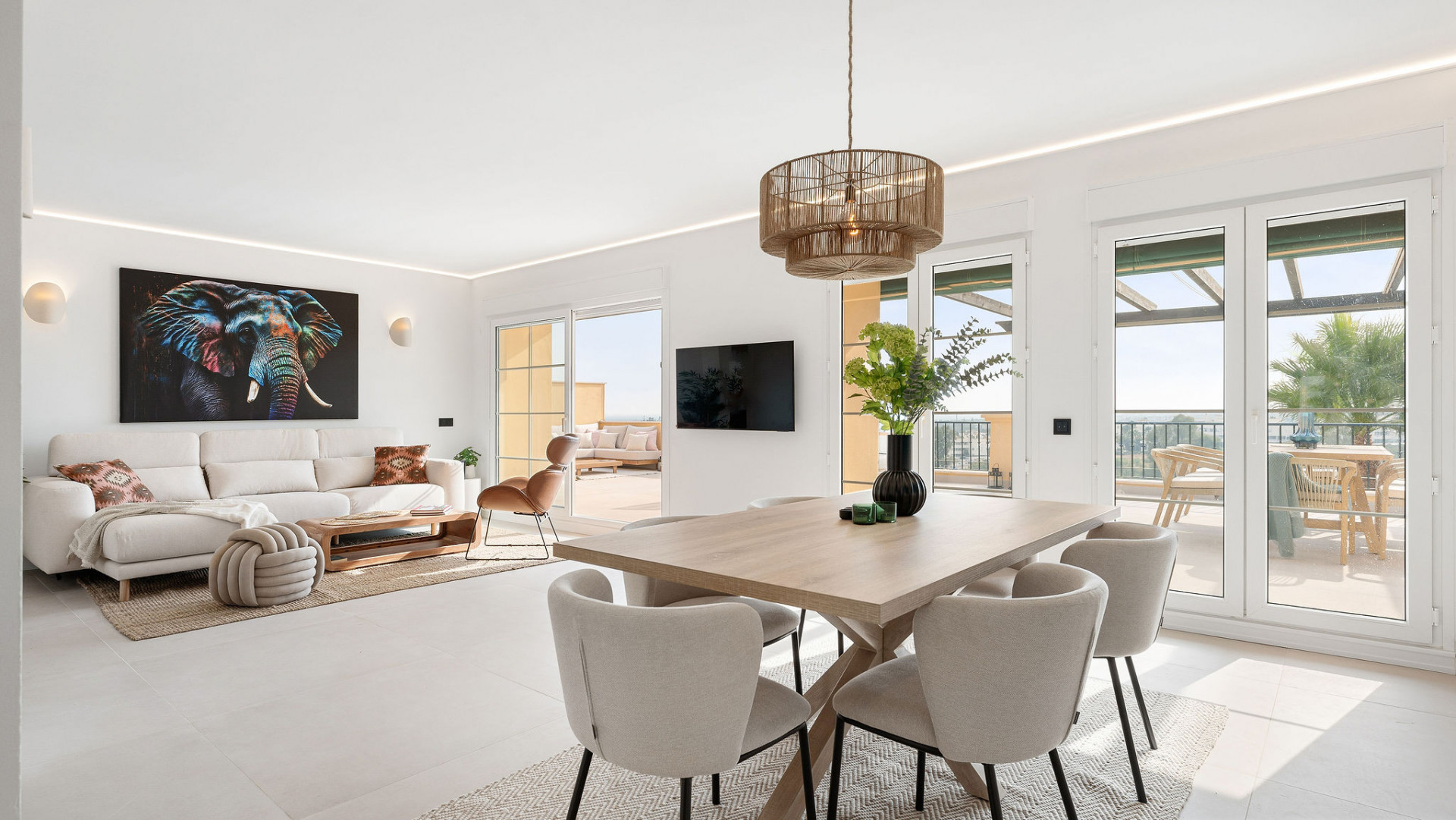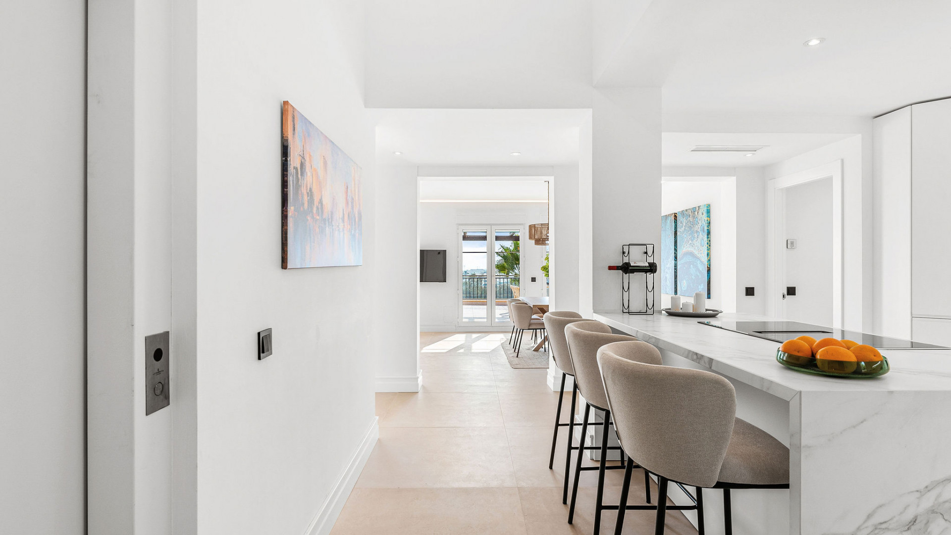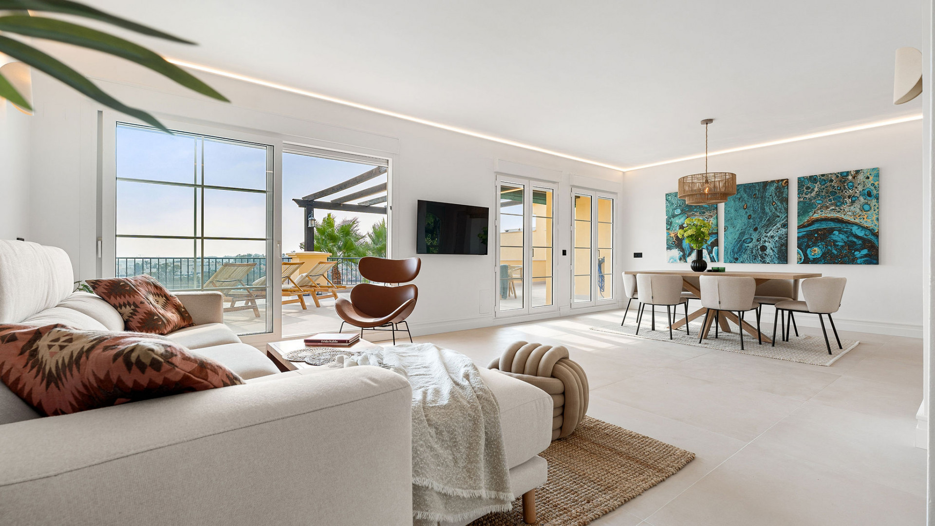 Ce penthouse récemment rénové offre une excellente opportunité d’investissement grâce à sa situation privilégiée et à ses caractéristiques luxueuses. La spacieuse terrasse orientée sud-ouest offre une vue imprenable sur la mer jusqu’à l’Afrique et Gibraltar, et l’intérieur est aménagé selon des normes scandinaves modernes. Avec trois chambres à coucher (dont une accessible aux personnes handicapées), deux salles de bains, des toilettes pour les invités et un accès par ascenseur depuis votre garage privé, ce penthouse est parfait pour une vie à plein temps ou pour une location de vacances. Situé à quelques pas de la plage et de Puerto Banús, et à une courte distance en voiture des nombreux terrains de golf de Nueva Andalucia, cette propriété ne manquera pas de prendre de la valeur avec le temps.